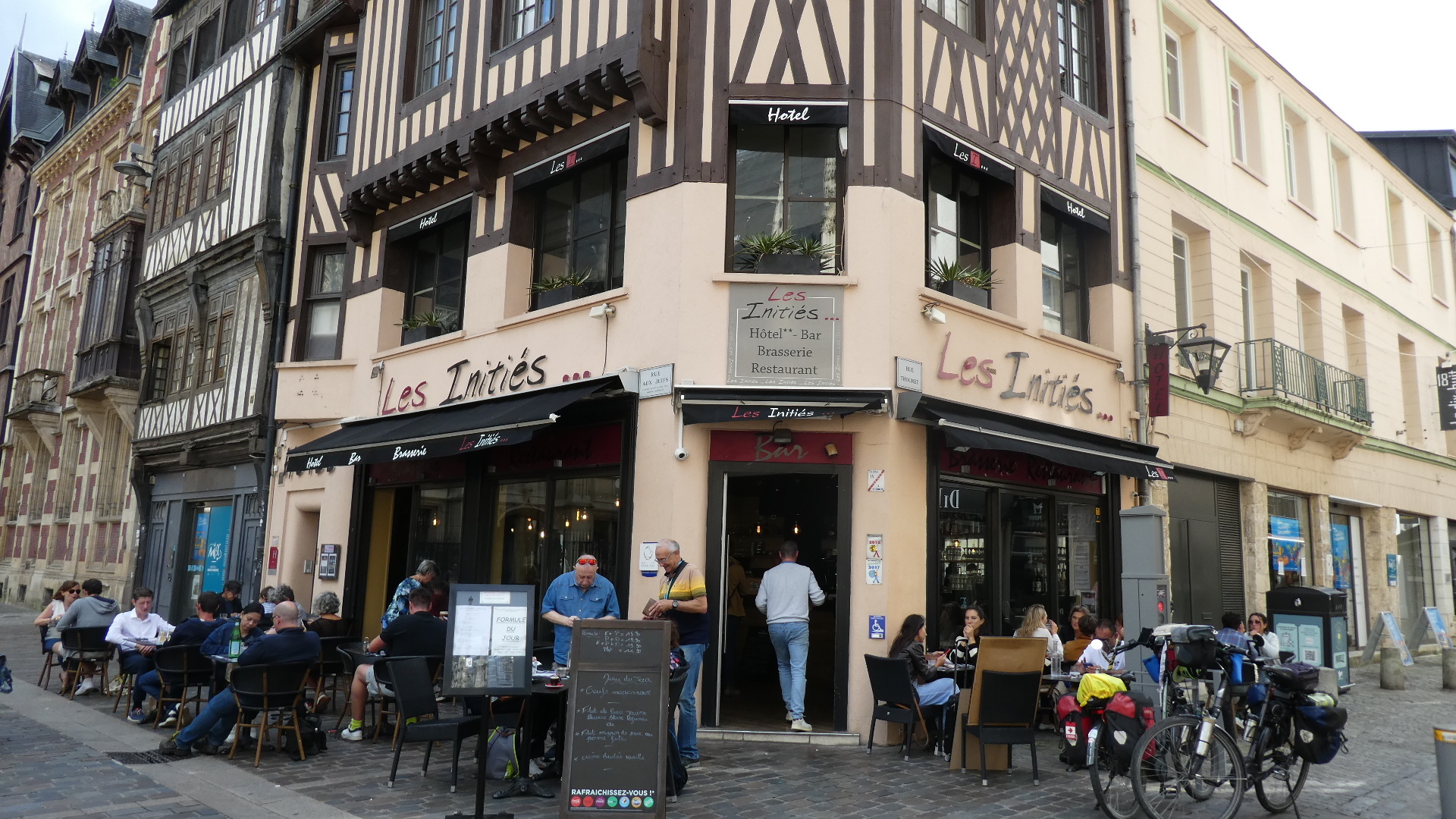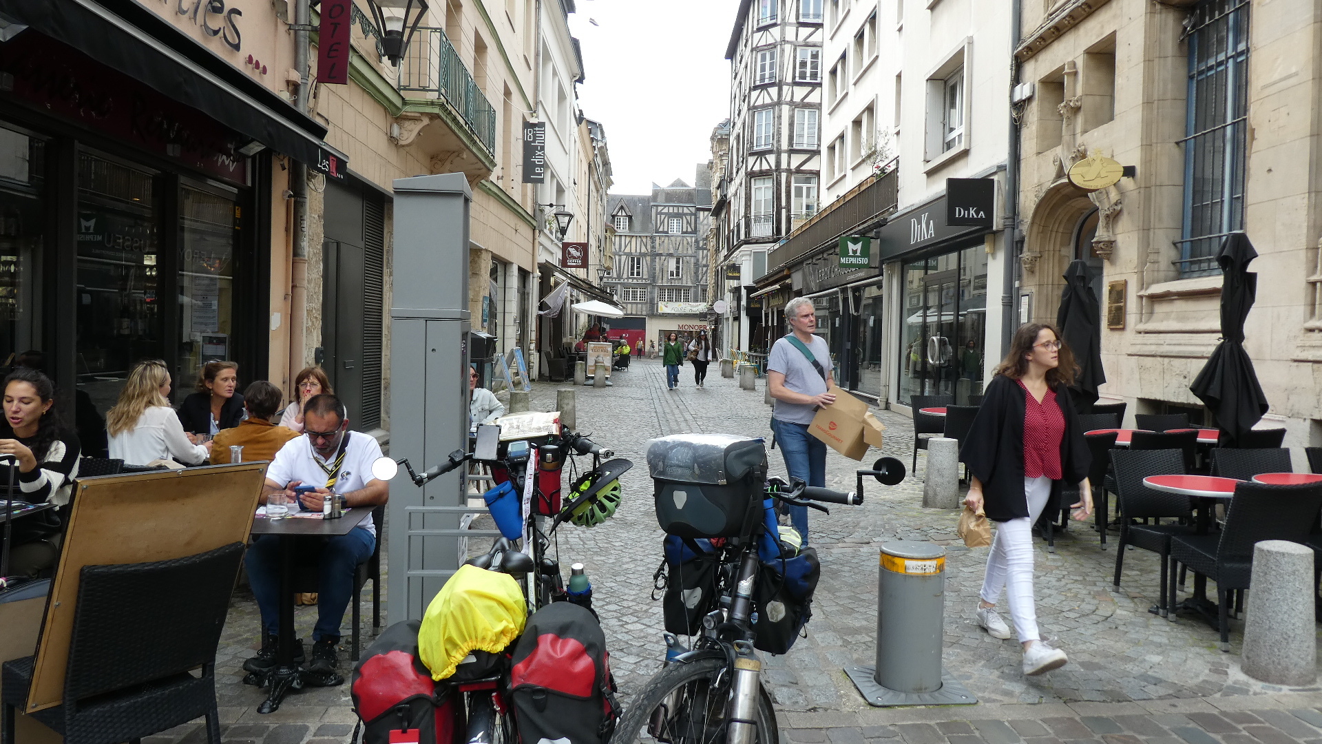Soon we were back outside in the central square. The Cafe du Commerce was there, with its whole patio space available for illegal bike stopping! How petty I am!