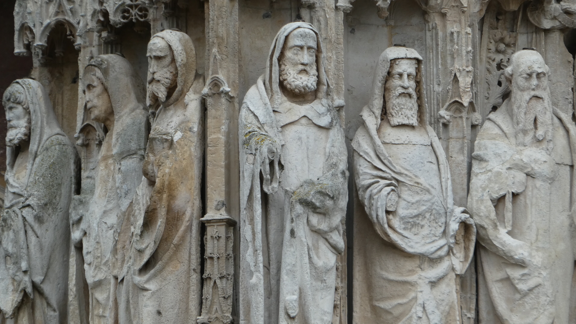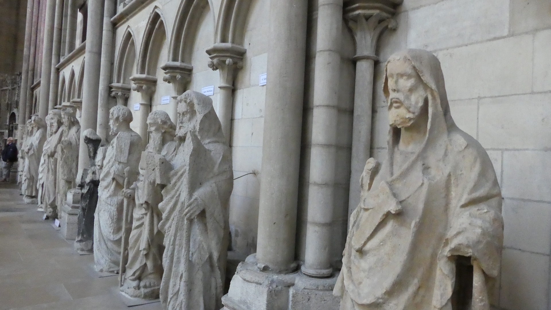 The cathedral also has more great stuff to look at. There is a long row of greater than life size carved figures of saints and prophets. There is no information on where these came from, but all are weathered. They must have been rescued from somewhere.
