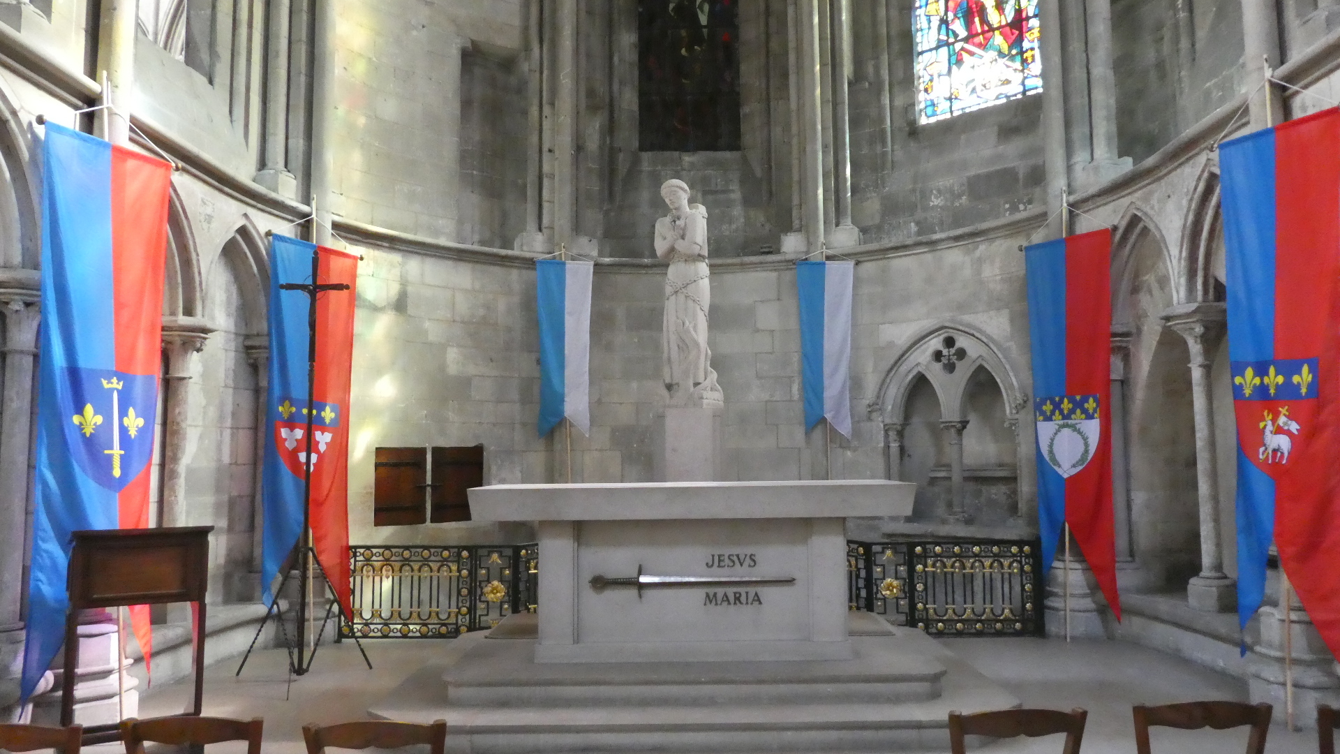 A big feature here is the chapel for Joan of Arc, who of course after having been burned as a heretic is now a saint.