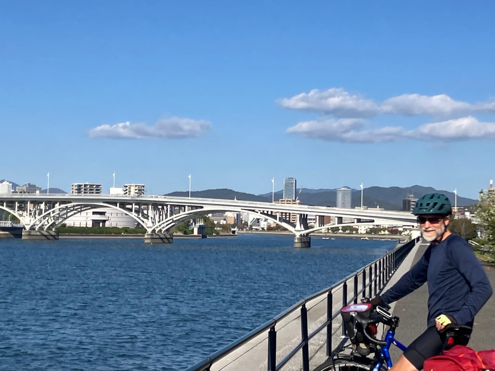 The ferry terminal in Hiroshima is almost downtown, so after a brief tour of the industrial port side streets we found ourselves on a riverside cycle path taking us directly into the city.