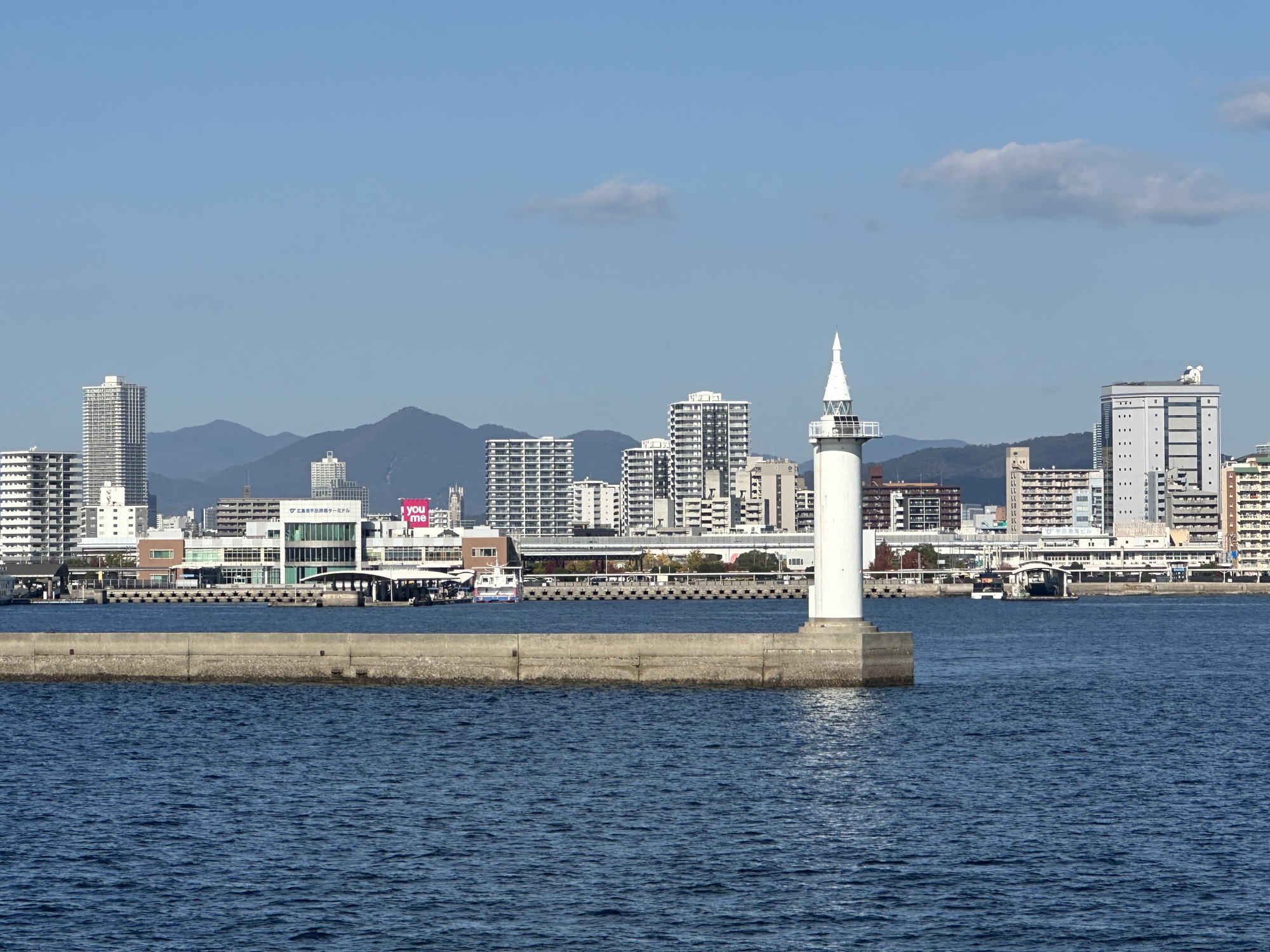 As we got closer, Hiroshima spread across the horizon, filled with towers and highrises all glowing white in the sun.
