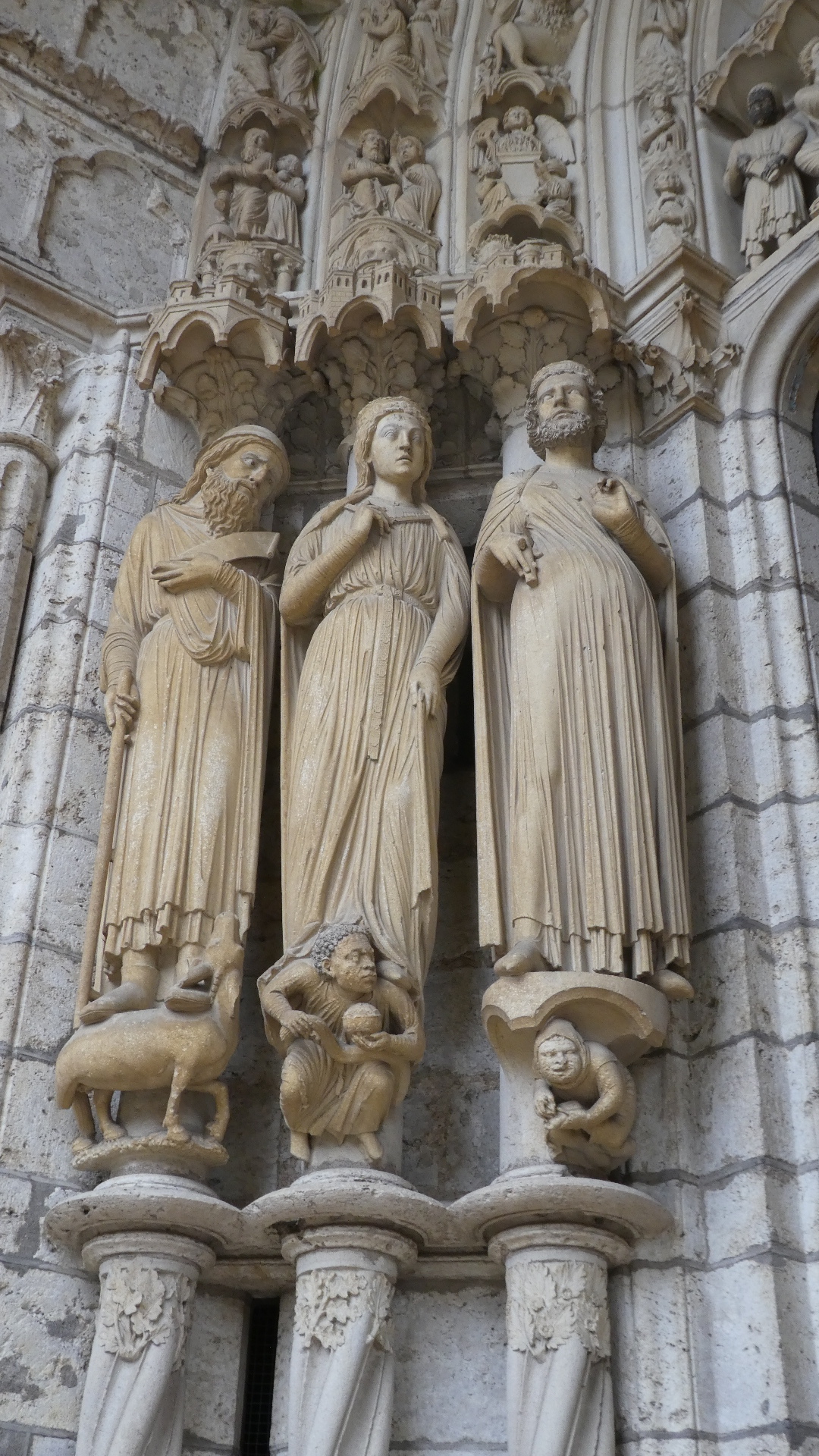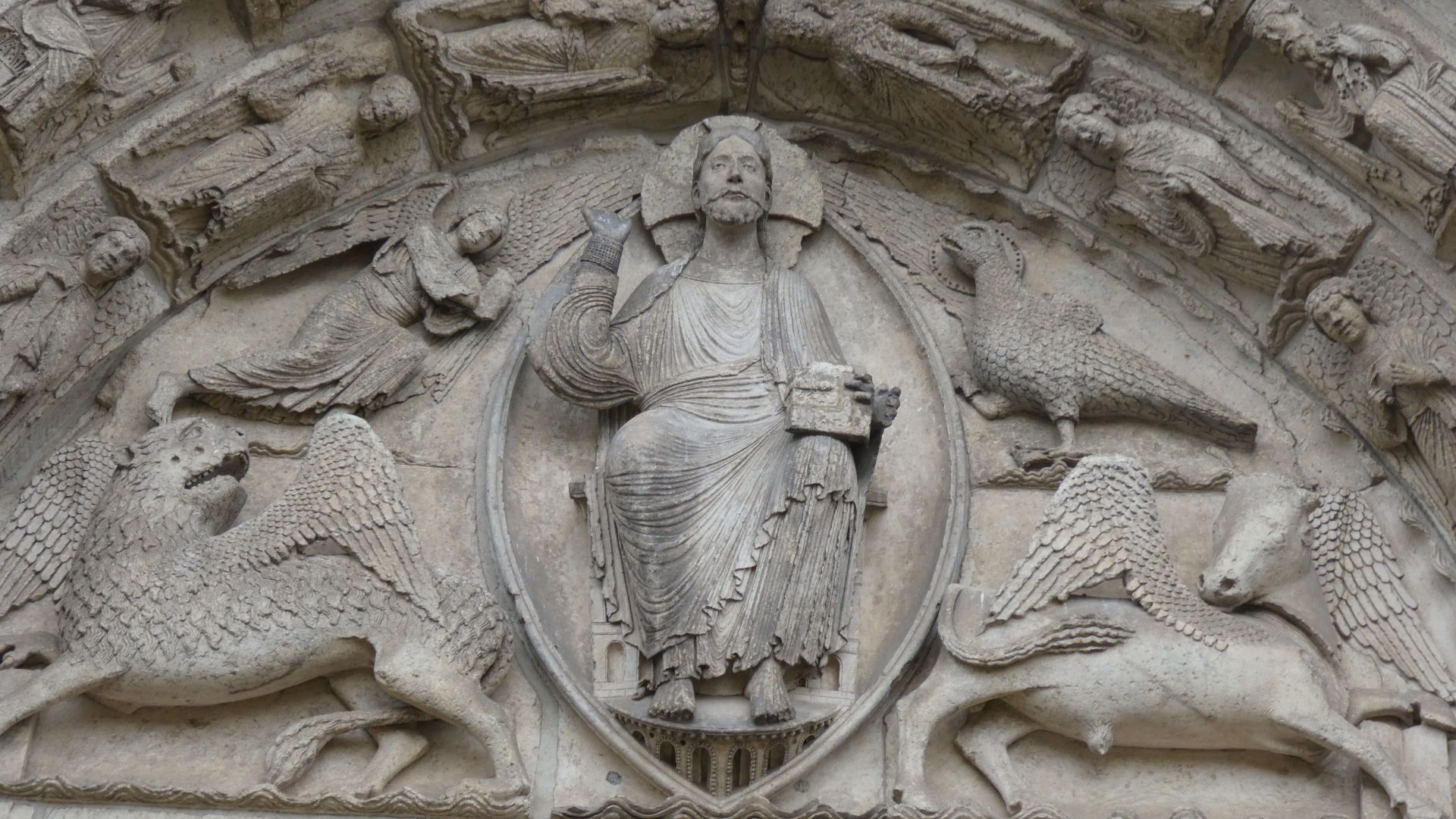 Outside the front of the cathedral we had a further look at the carving, such as the Jesus, animals, and angels above the door.