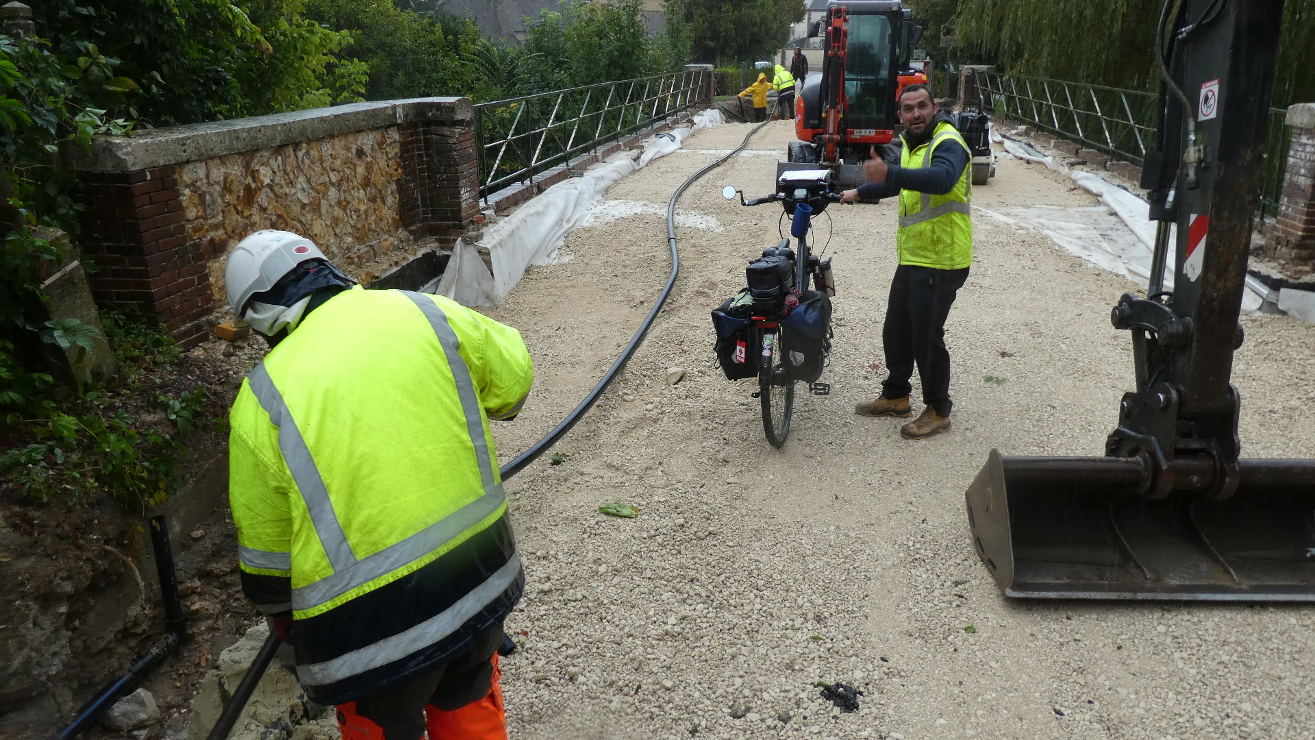 The grey haired man looking on above is our "foreman". We were really impressed by his non-officious approach to helping us on our way. Naturally the episode ended with a lot of thank yous and hand shakes.