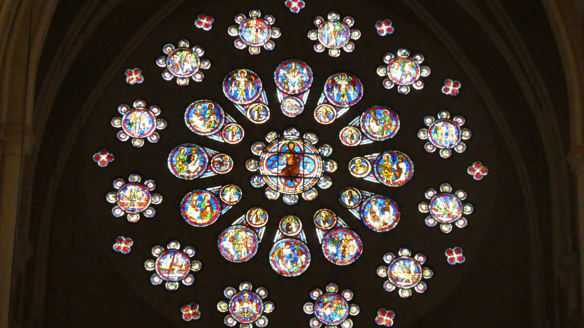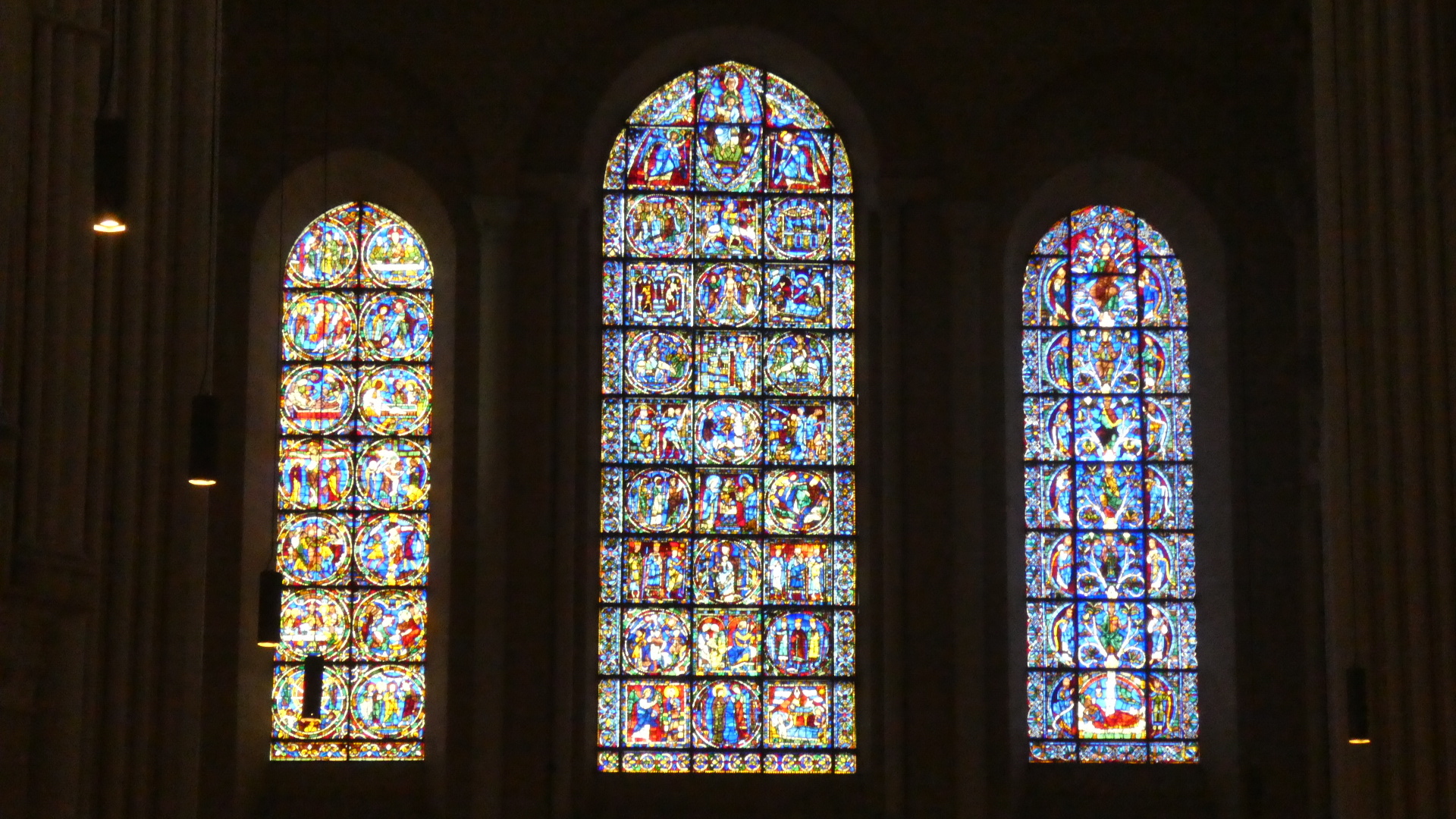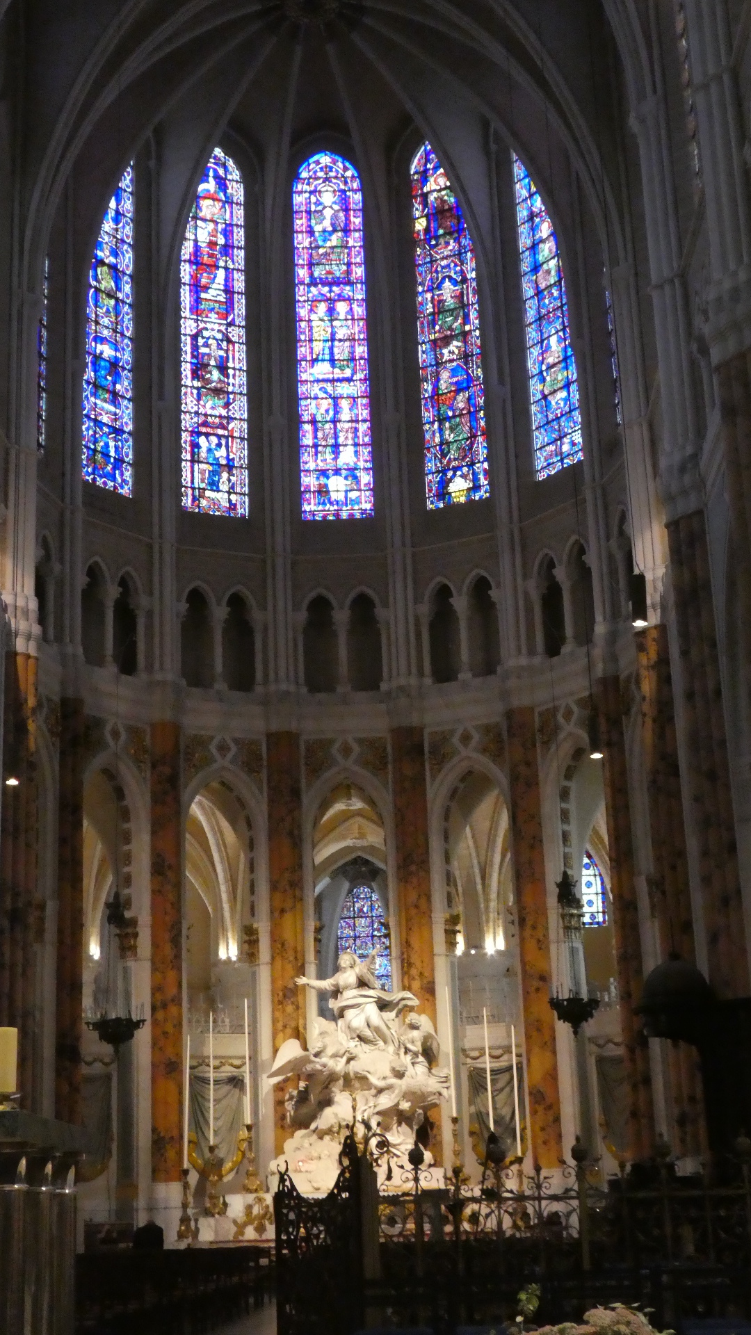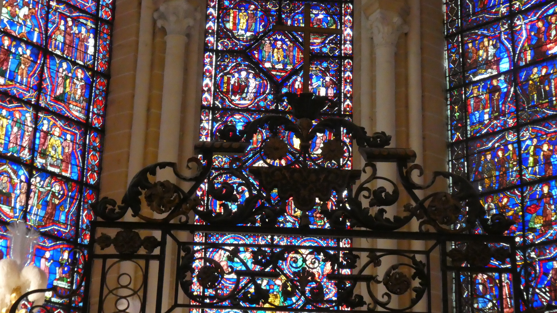 Beyond the choir screen, the stained glass of this cathedral was dramatically impressive.
