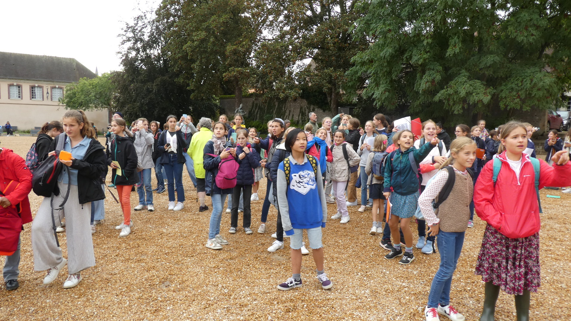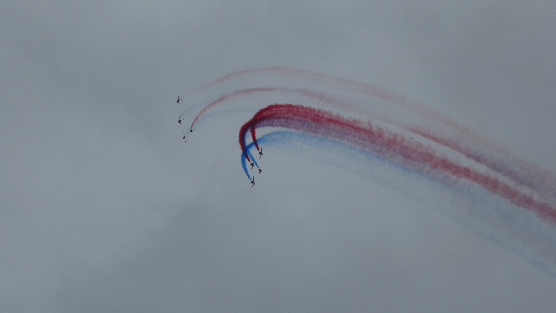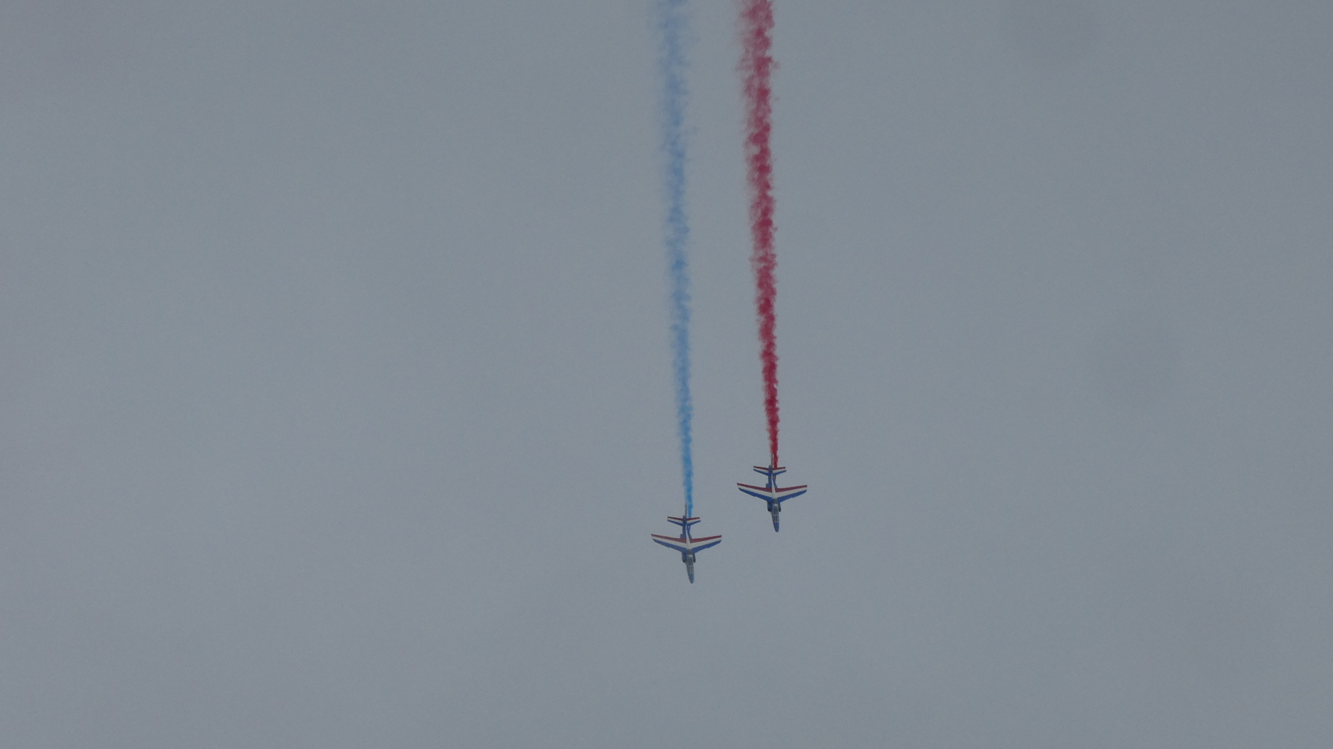 We were distracted by some repeated fly-bys of France's aeronautic jet team. They had red white and blue streamers, and at one point drew a heart with them. School kids, tourists, and us were really thrilled to see this, in front of the cathedral. We later learned that they were practicing for Charles III, who is visiting the country just now.