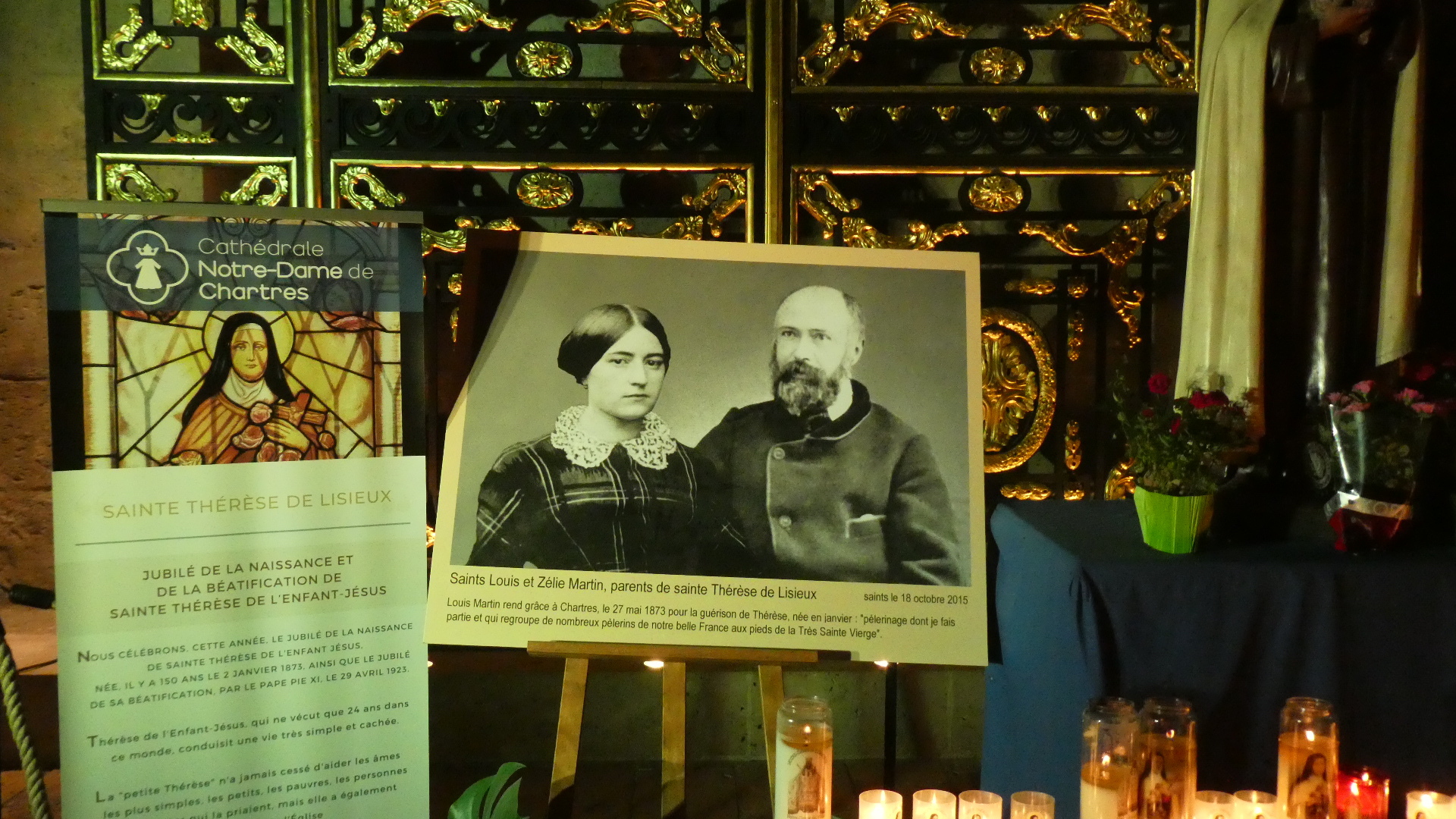 Saint Therese de Liseux is one of the most popular saints. She is even famous with us, mainly because of town of Ste Therese, near Montreal. Therese was born in 1873, making this her 150th birthday. In a chapel in the cathedral it is also her parents, Louis and Zelie Martin who come in for recognition. They made a pilgrimage to Chartres in 1873 to pray for the health of Therese.