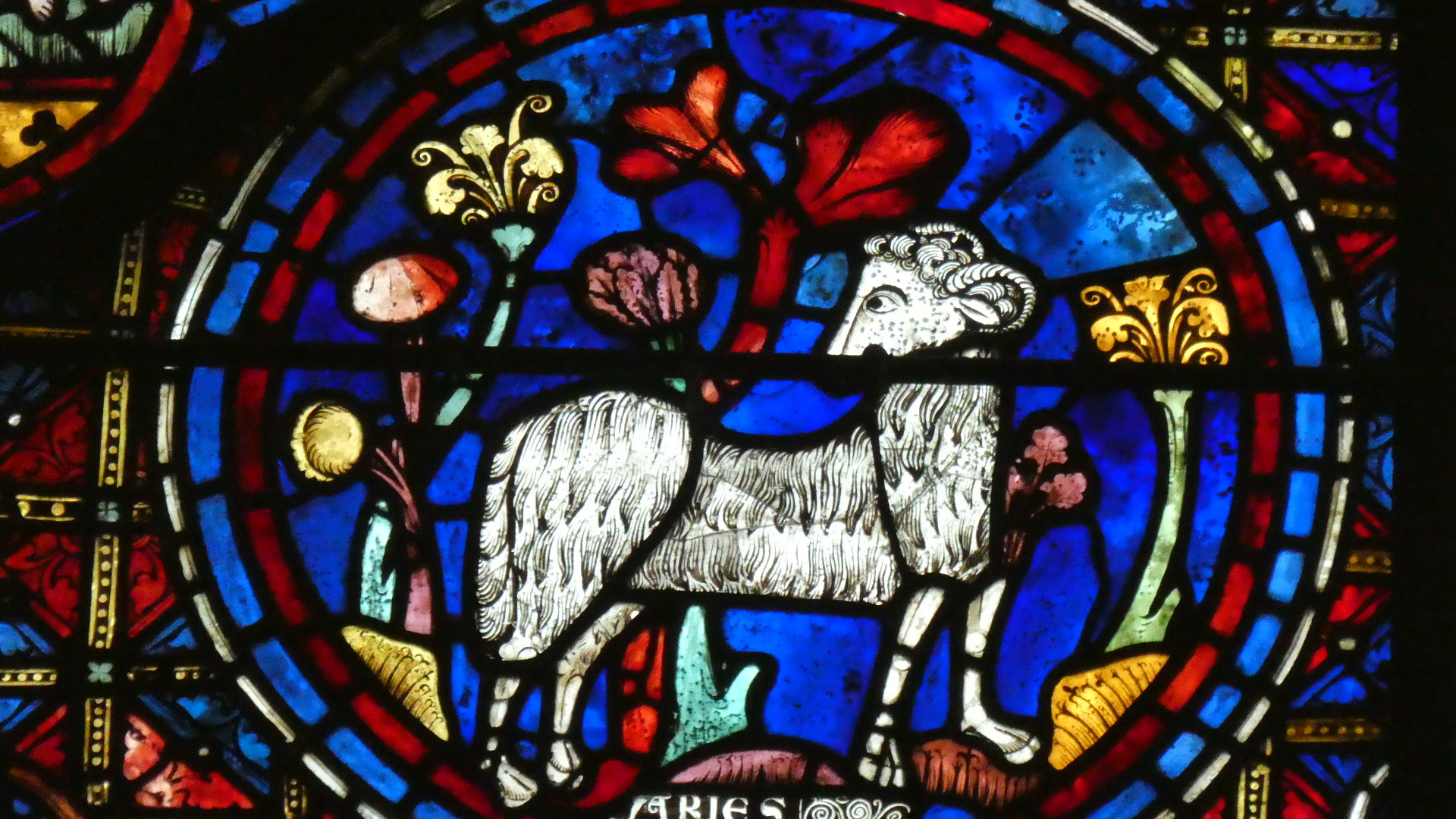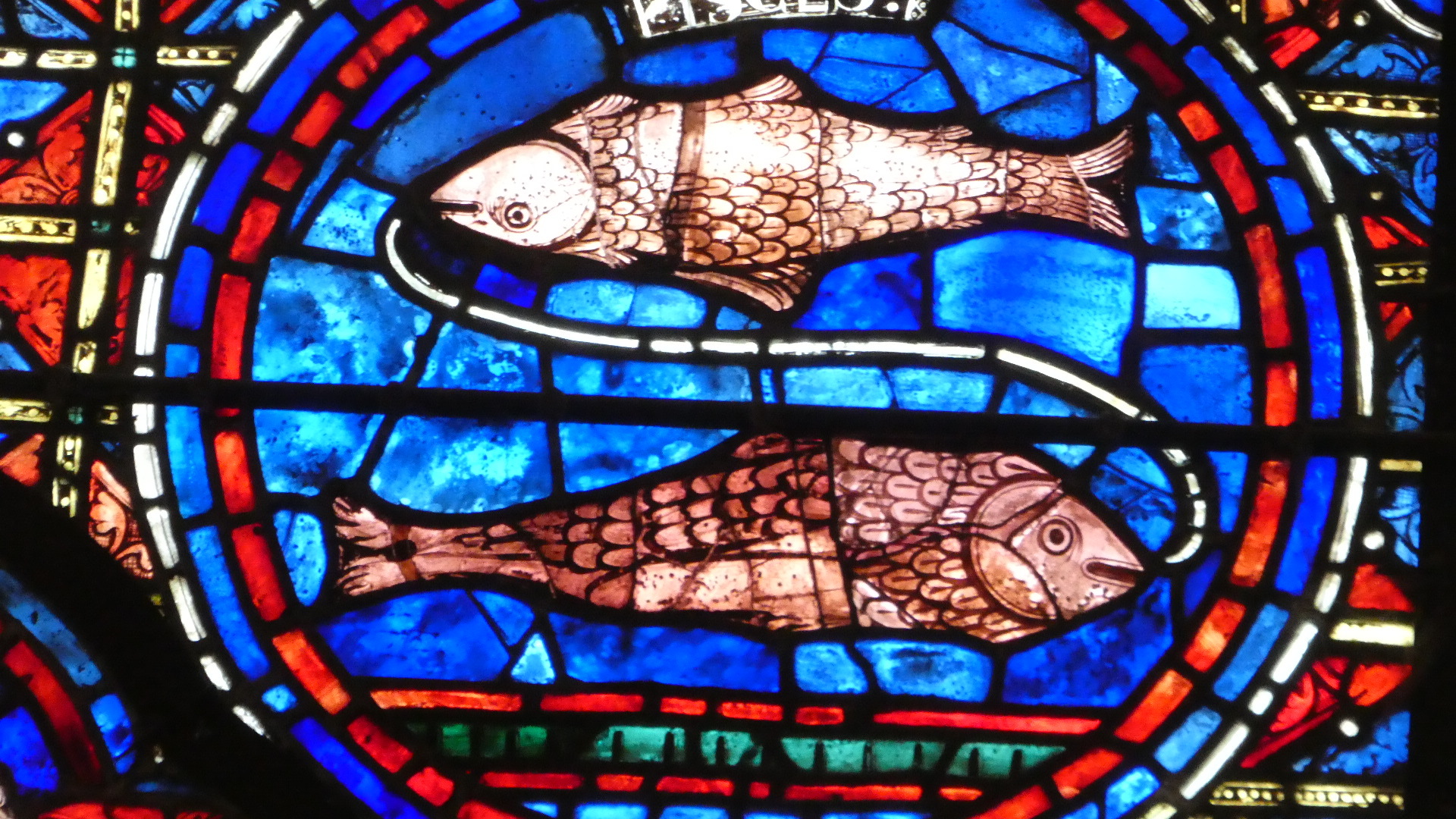 As you see, the clock reported which house of the Zodiac we were in. In the stained glass opposite the clock, the houses were portrayed.