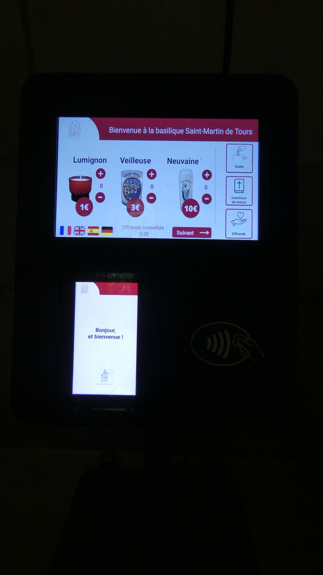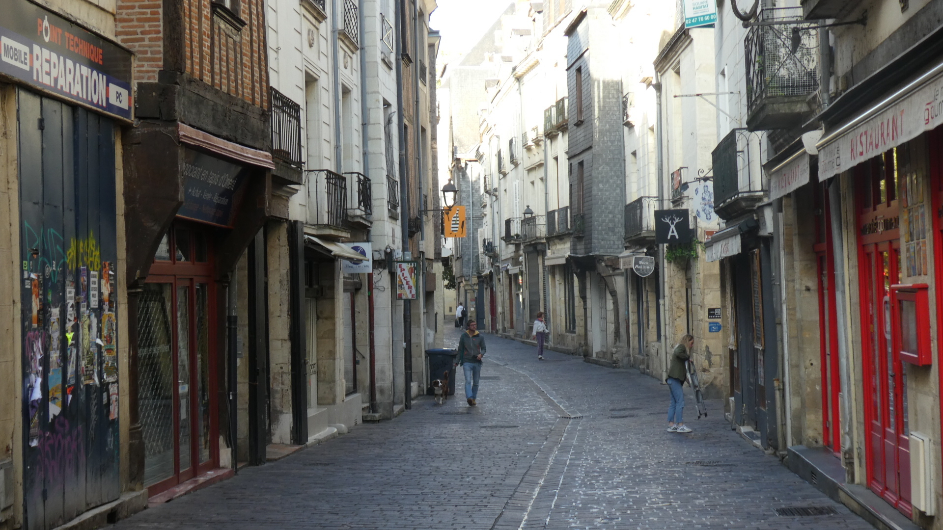 With the St. Martin Basilica itself, we first sent Dodie in while I stayed with the bikes. She came out and told of the St. Martin tomb in the crypt, the interesting ceiling, the statue of St Jacques, and sent me in. I went in, ignoring for the moment the beggar lady on the steps, walked around and saw nothing. Soon I was back out. "Ok, I've been around it and seen nothing but some postcards and some super St. Martin stickers, but tell me again where to look!" Dodie was hoping I would miss the stickers, but she sent me back in. This time I found more, but we would have to return that evening for me to finally see everything. Too bad Dodie is not good with the camera, because she is a super spotter! By the way, I got the stickers, and also some postcards from the beggar lady!