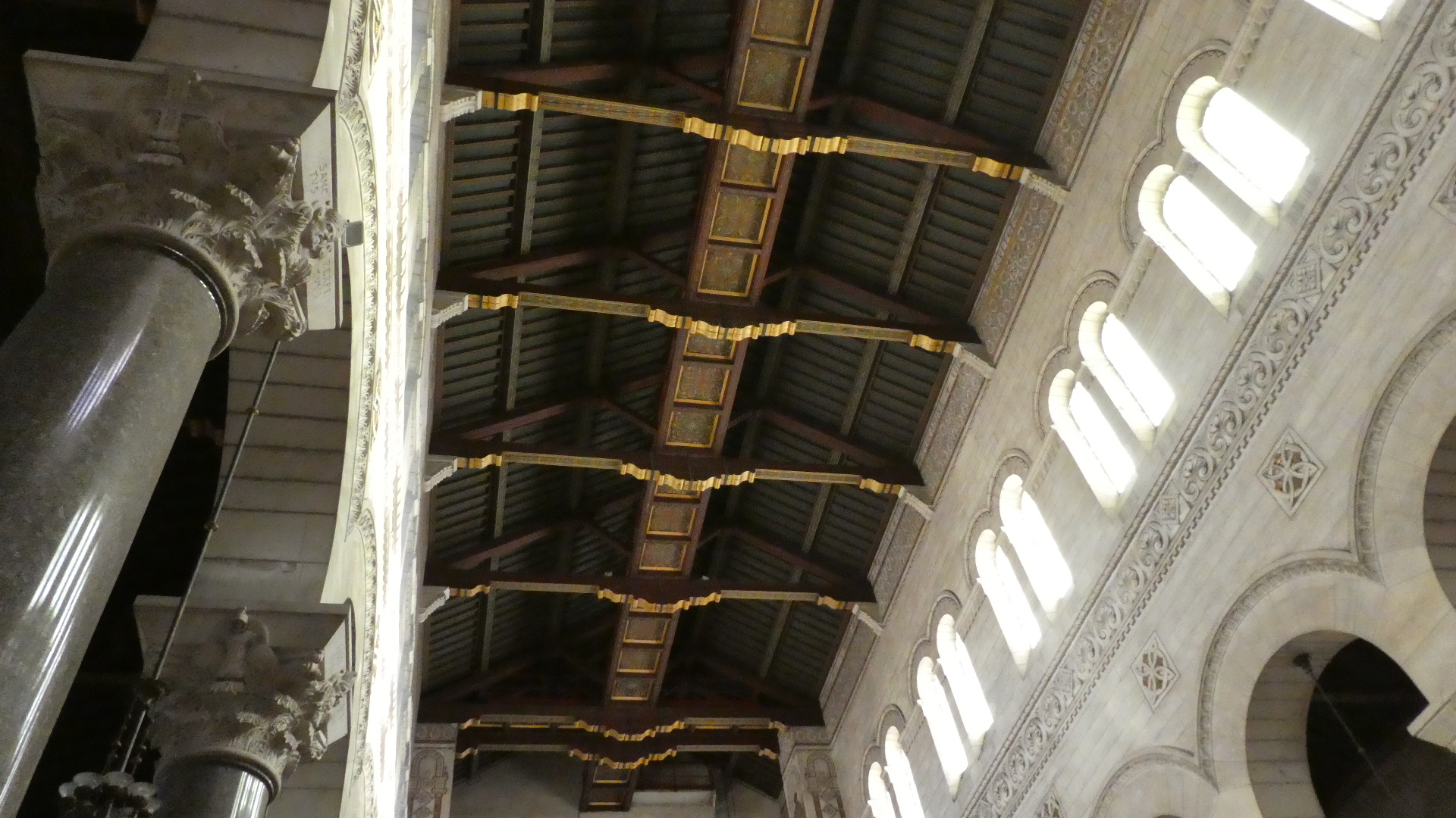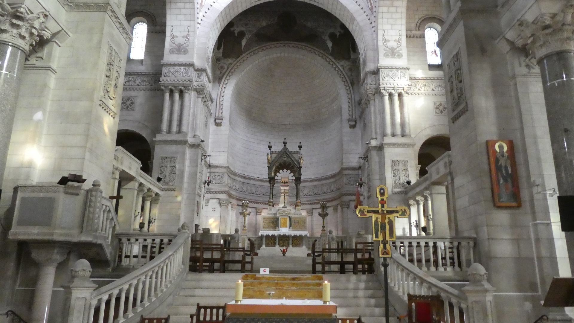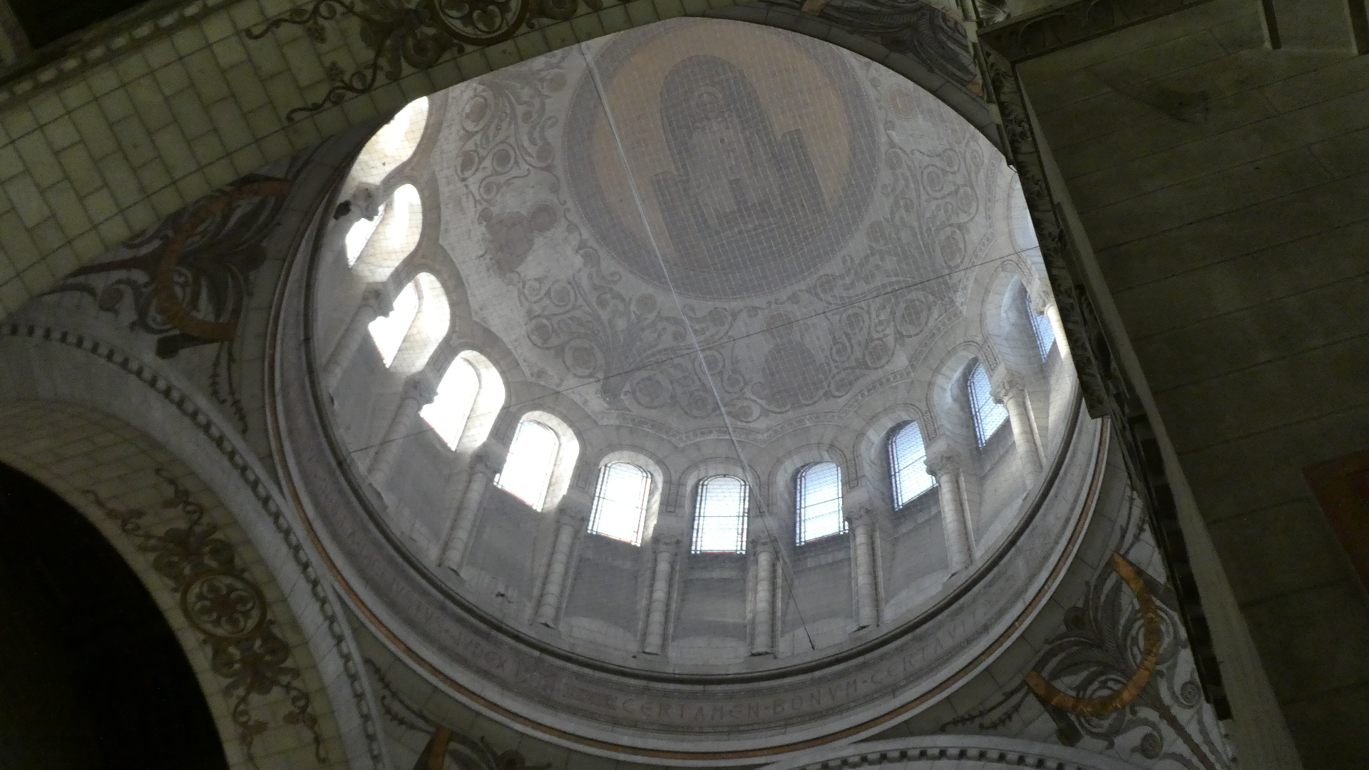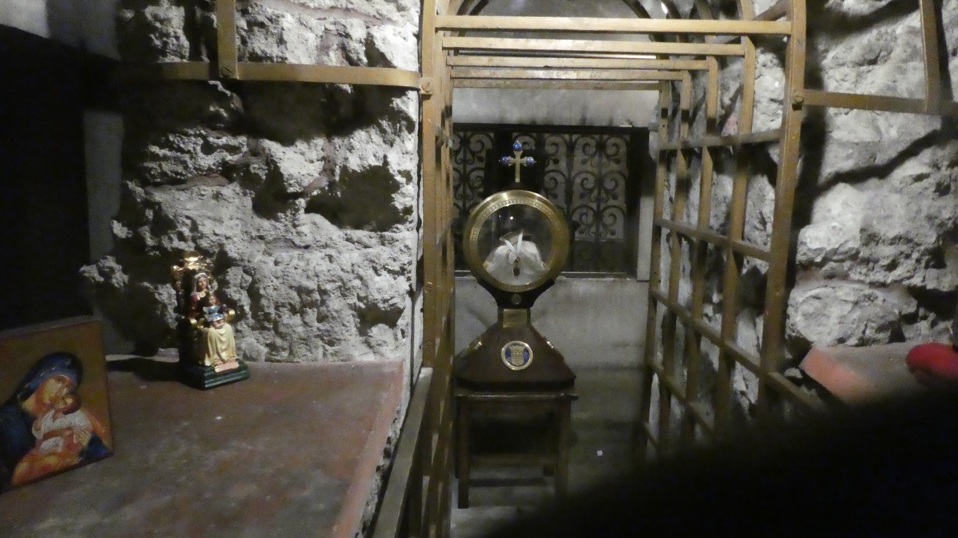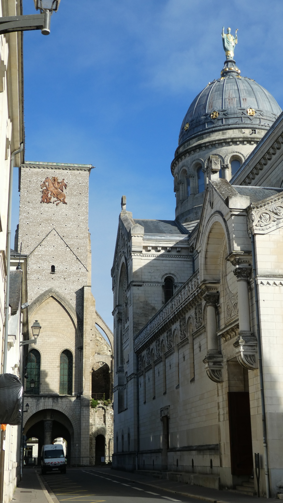 The key point is that before 1797 the church over the St. Martin tomb was huge - basically cathedral sized. Once destroyed, only two towers remained, quite widely separated. These today are the Charlemagne Tower and the Clock Tower, as visible from our hotel. Streets were put in over the intervening space, to help stamp out the cult of St. Martin. But in 1860 somebody bought the nearby land and discovered tomb under a house. In 1887 construction began on the present Romanesque basilica, and this now accounts for the third tower visible from our hotel.
