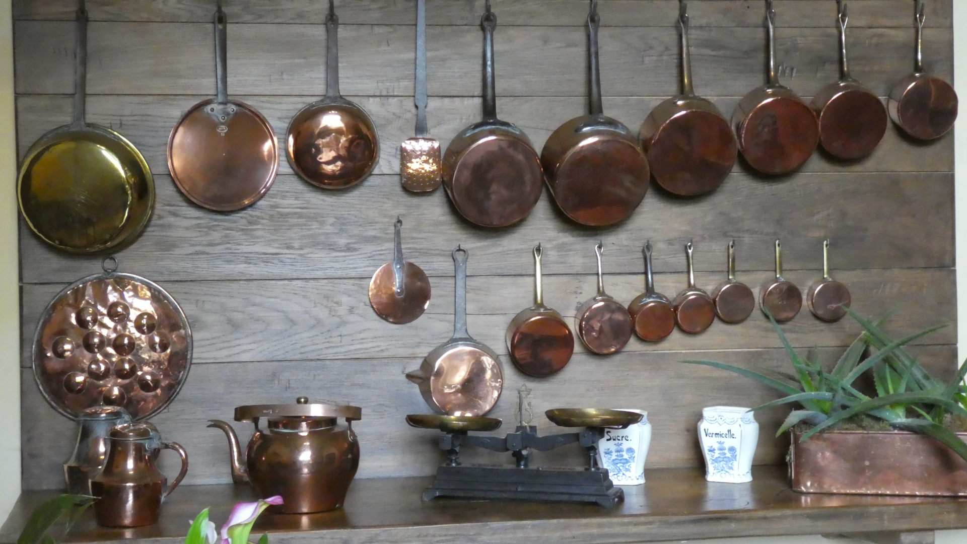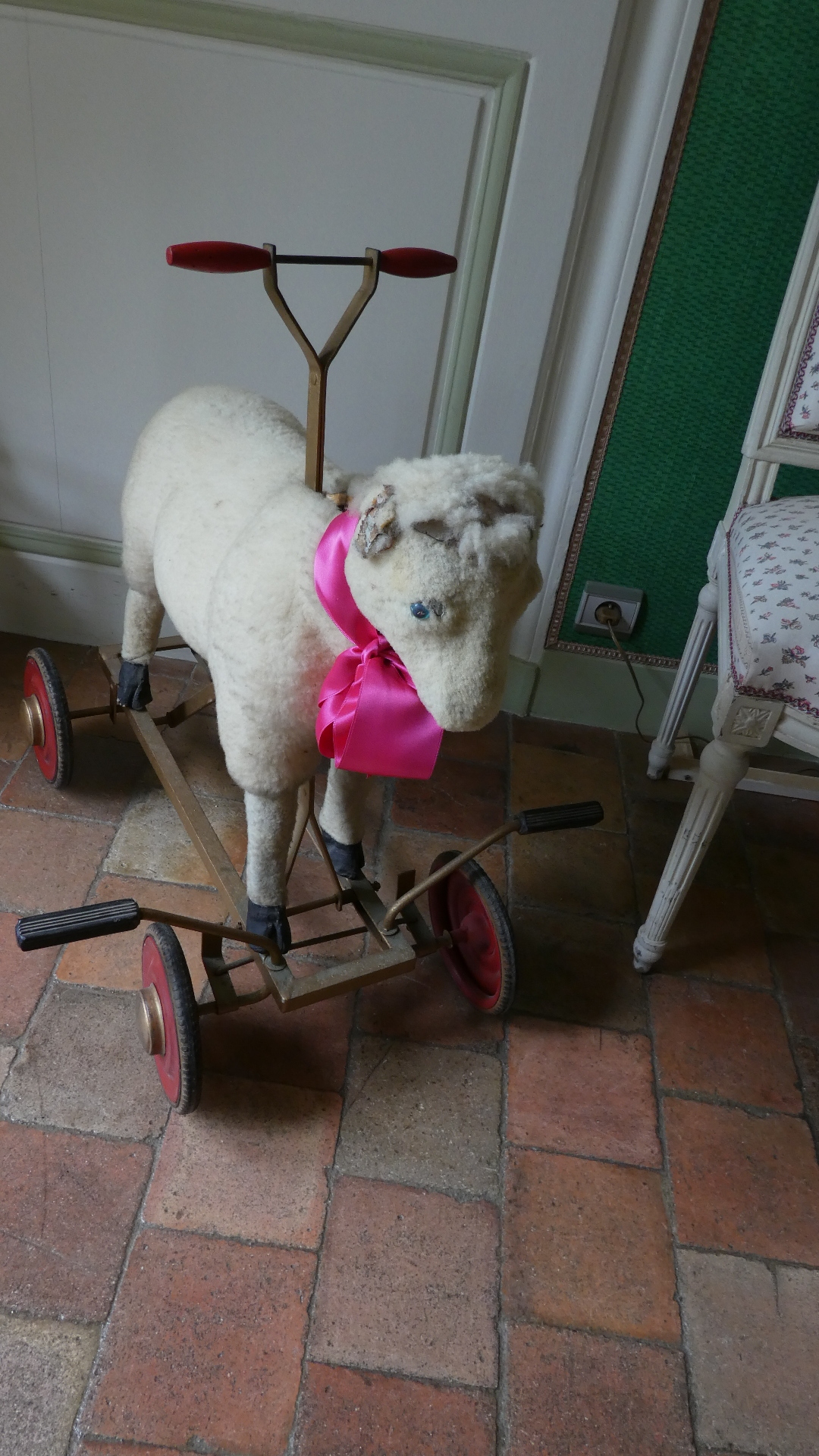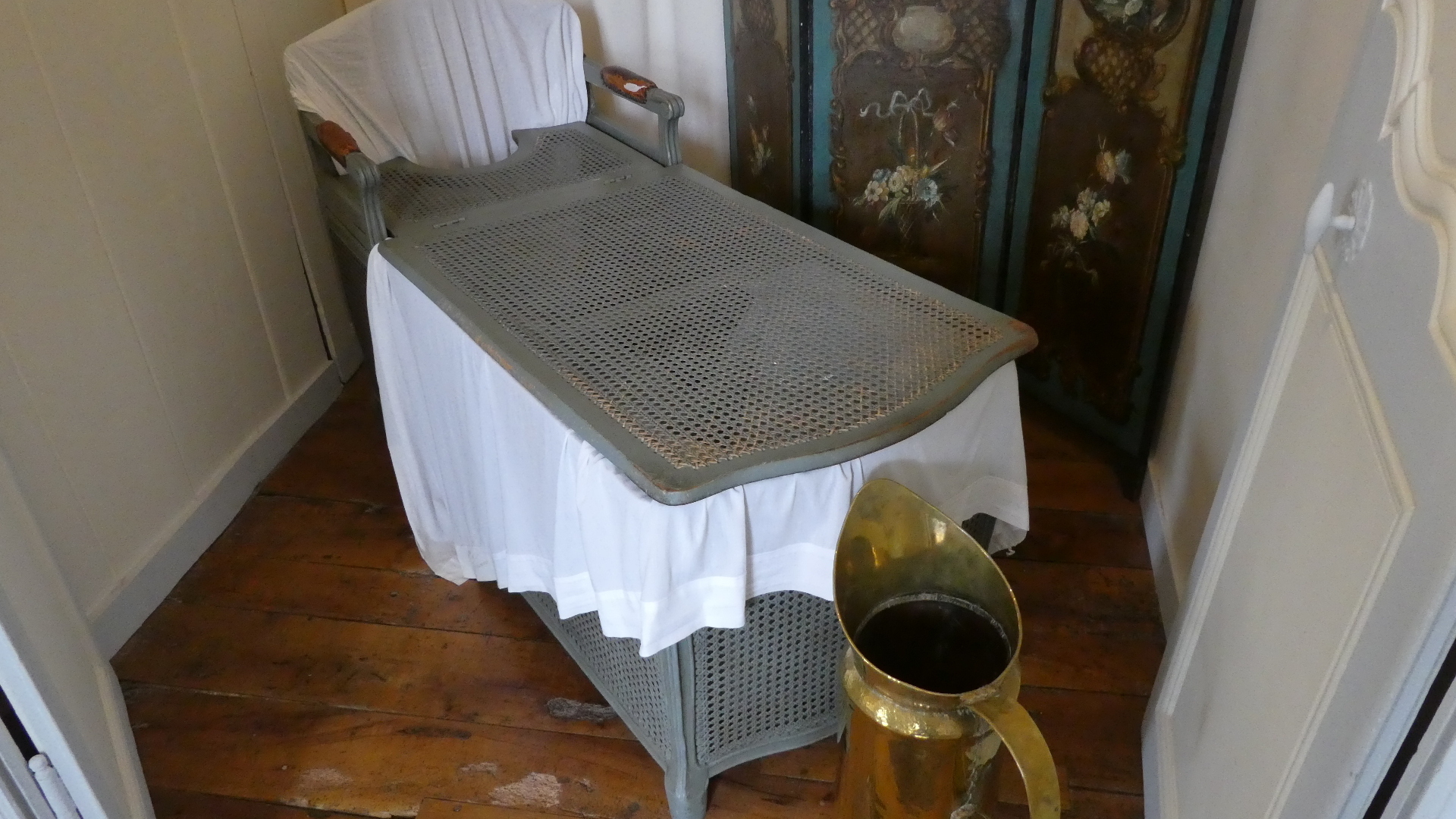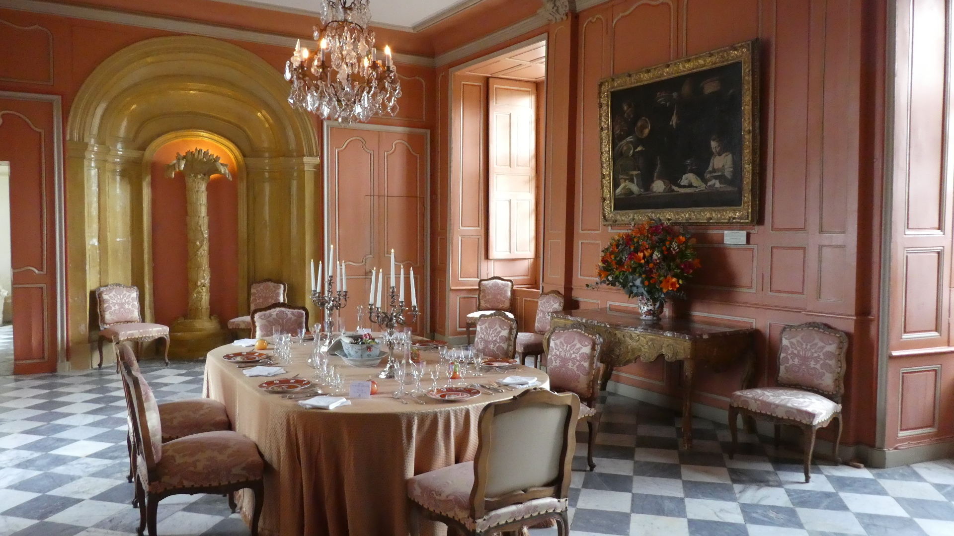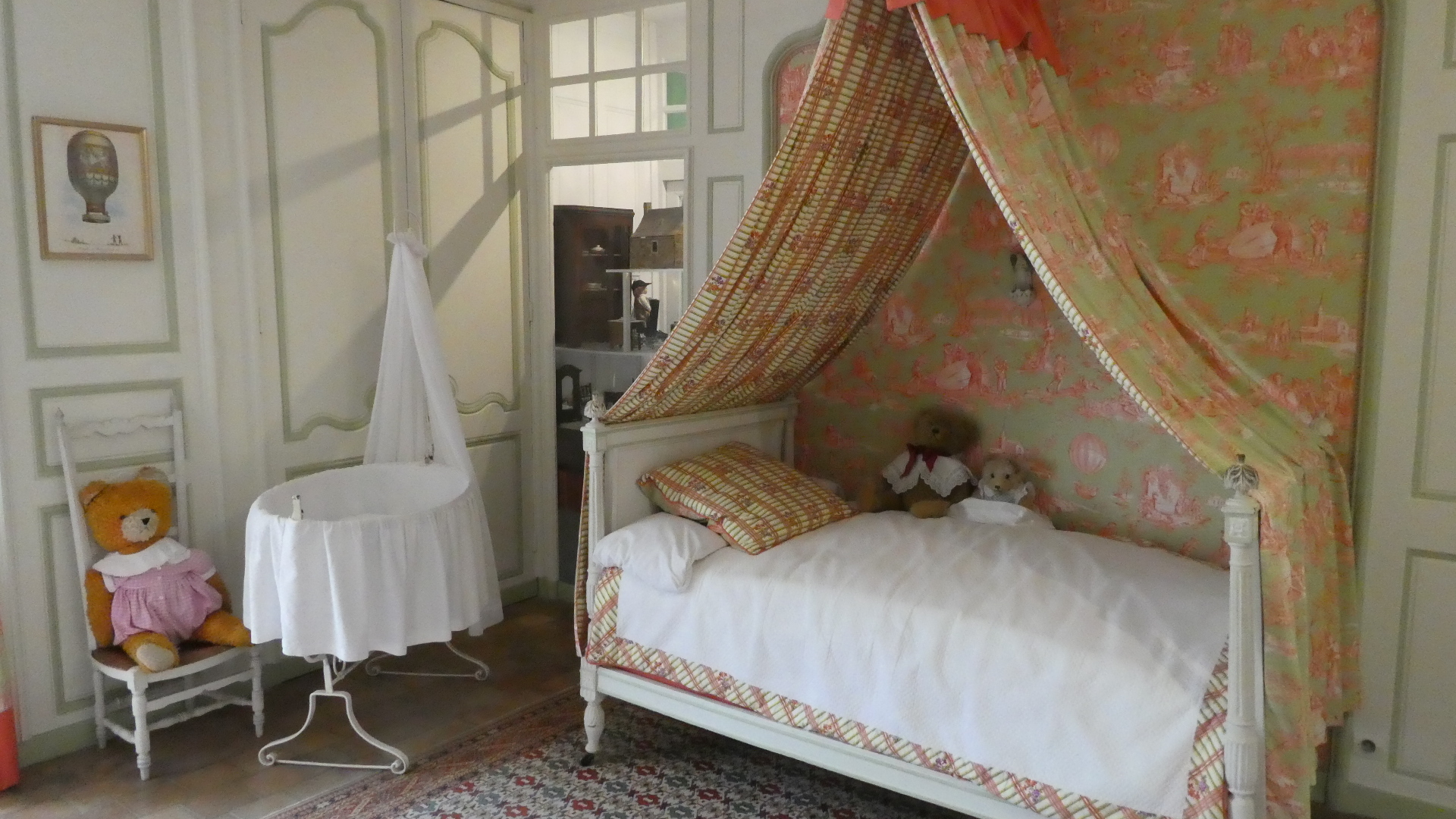 The tour of Villandry can be just the gardens or of the house as well as the gardens. We went for the full deal, which starts with the house. Our general impression is the same for all these older castles - they are not really comfortable, whether in layout, furnishings, or facilities. But some things are great - like parquet flooring, and "wallpaper" which is actually a silk embroidered hanging. There are lots of rooms, so going through can be tiresome, for us, as well as for someone looking at the pictures. Still, have a flip through. One thing you will see is that all the rooms have the advantage of looking out at the fabulous gardens. So as we go through and look out, so does our camera.