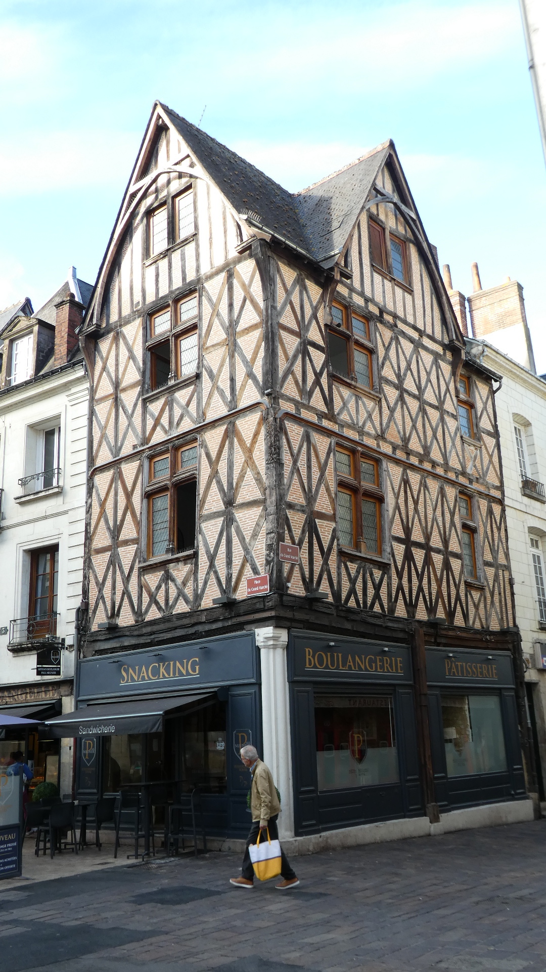 The area around the basilica is known as the Martinopole, or Chateauneuf area. This is the medieval section of town, the part of most interest to us. We began by looking at the super old half timbered buildings all around.