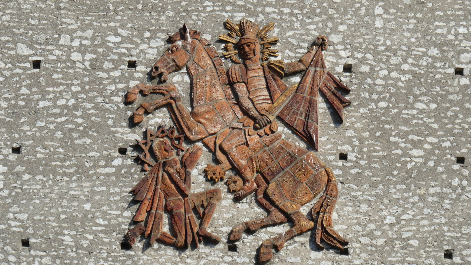 The Martin who became Saint Martin was born in 316 a.d. in present day Hungary. He got drafted into the Roman army and so started off as a soldier. There is a famous legend about him at this time, in which he encountered a poor man, freezing on a winter's day. Martin used his sword to cut his own cloak in half, and shared it with the man. Images of this act of charity now abound in representations of St. Martin.