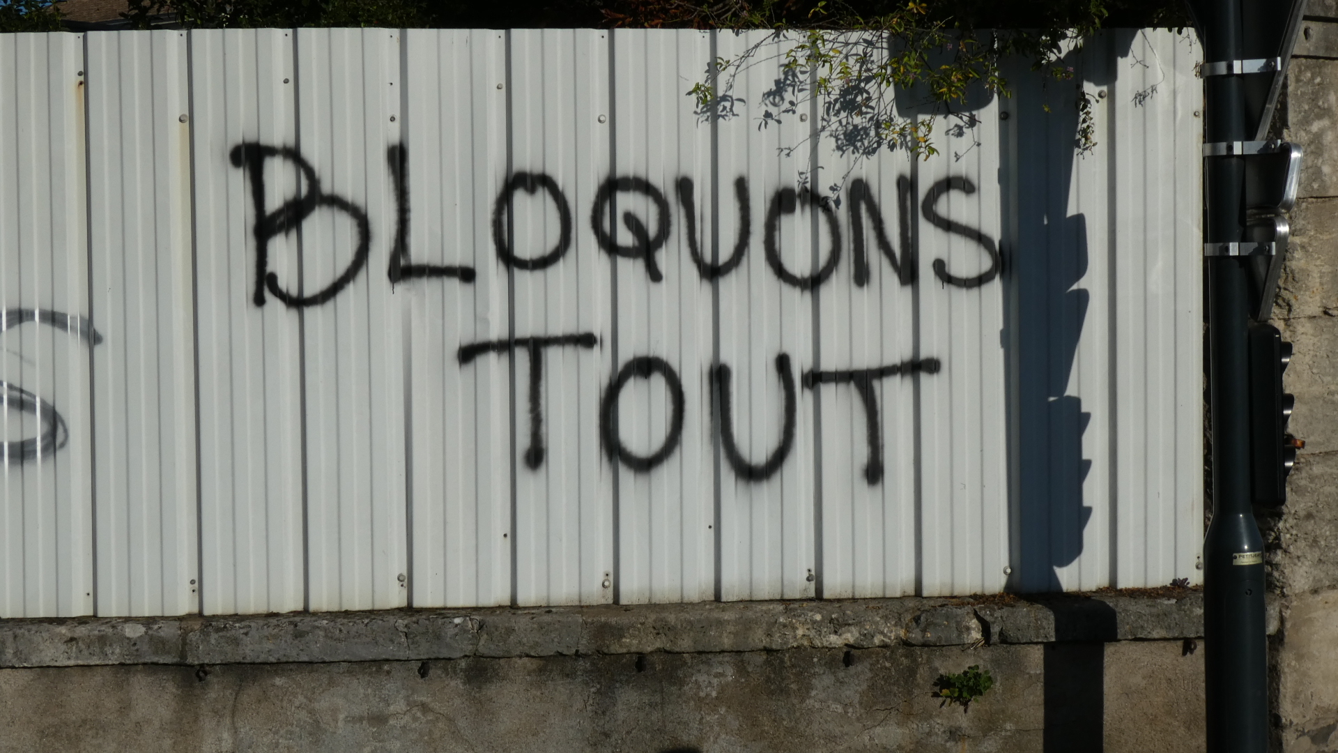 Just over the "backup" bridge which we were forced to find because of the blocked bike path, a piece of graffiti seemed very appropriate, with an expression that in modern France could replace "Liberté, égalité, fraternité"!