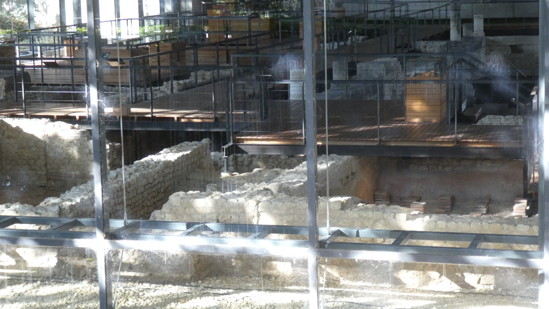 We quite quickly fell upon the Roman sites. In the tourist map these were circled with a thick red line, drawn on a greyed out background of the city streets. This gave the impression that the sites could be sitting in a sort of park, and that we would see them all sitting there. No such thing. Rather the sites were closely surrounded by the built up modern city, and in the case of one (the Roman gate) we were not even sure we were looking at the actual thing, vs a bunch of doctors' offices.