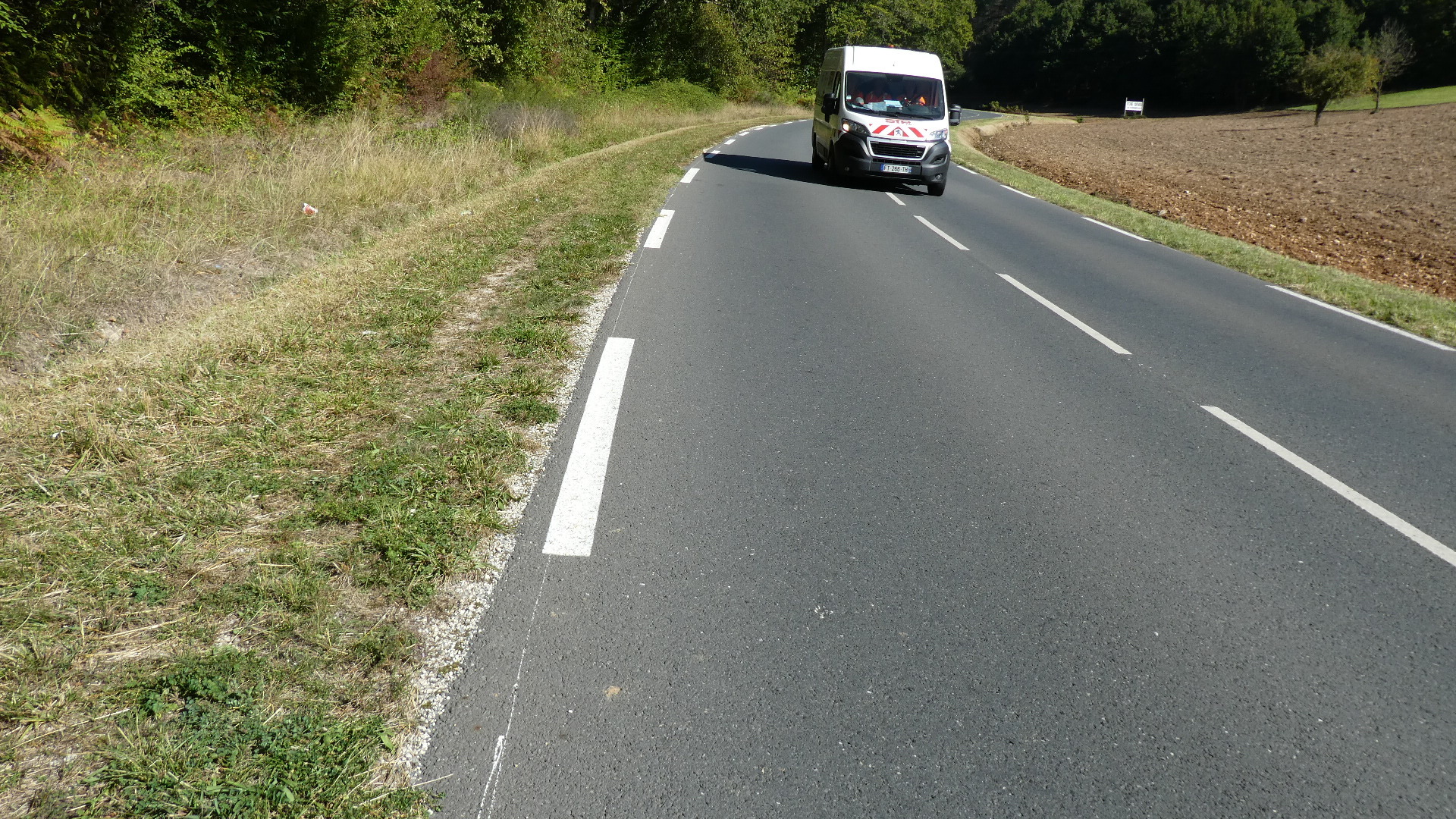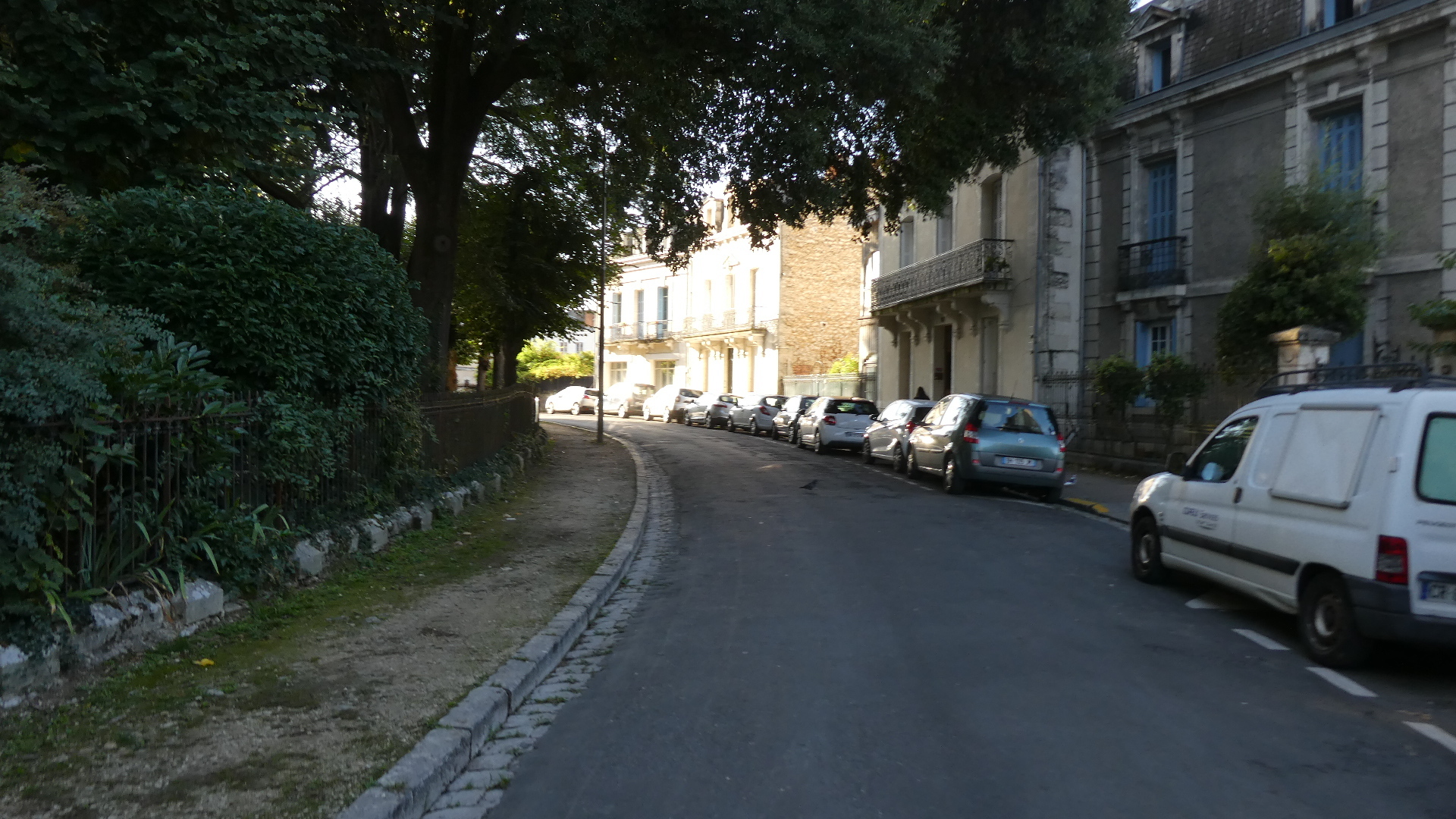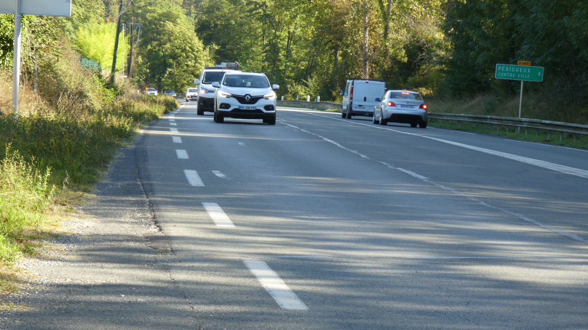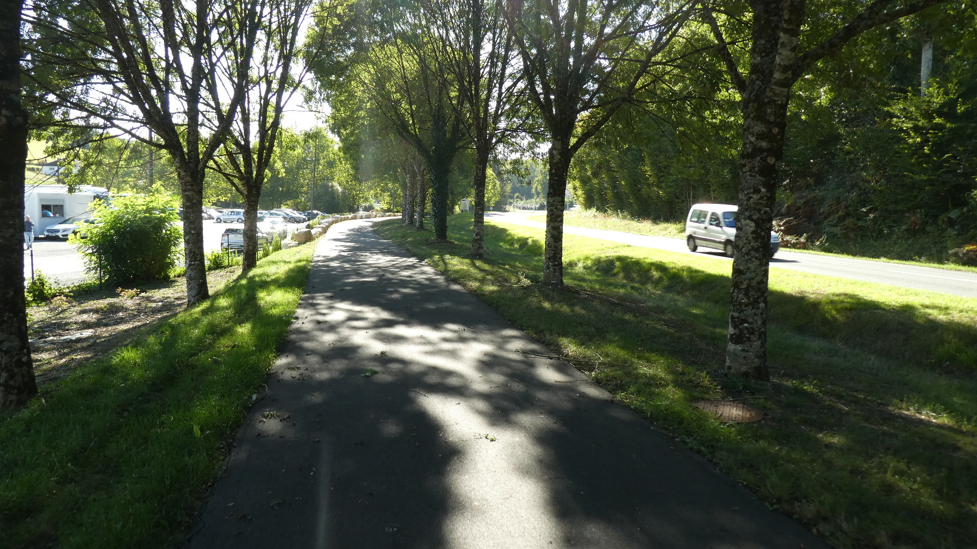 The first round of traffic fighting ended at Notre Dame de Sarilhac, where we finally came to a short bit of bikeway. We had just passed a nice Super U and a new housing development, so I surmised the bikeway was made to join the two. Based on that I did not expect the safe ride to last long, and I was right. Still, this did allow our blood pressures to drop a bit.