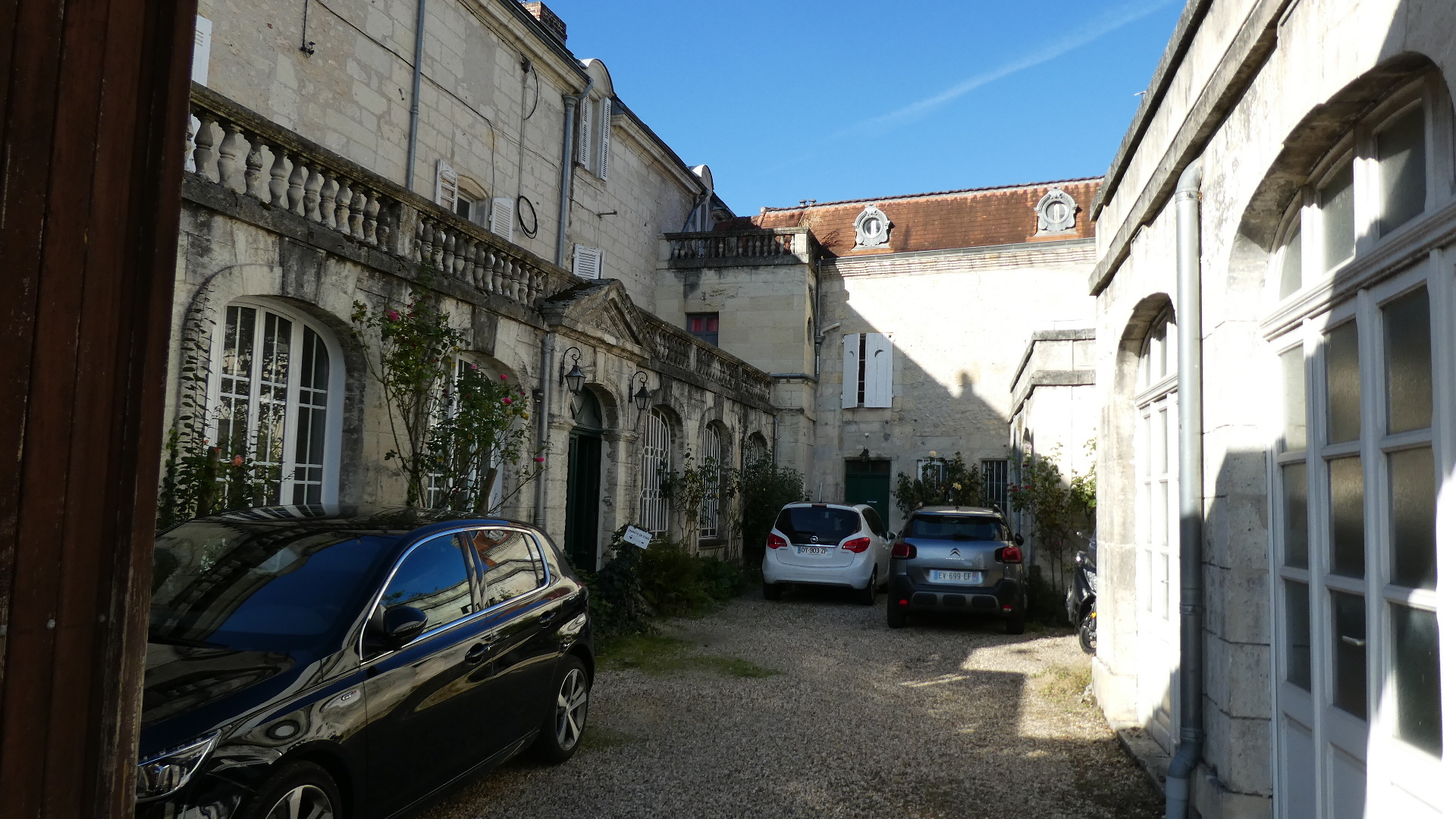 The Barriere house is a complex of at least two stately buildings, and it has parts that were built in the 12th century on a 4th century base. The whole thing was burned in 1577 by the Protestants in the Wars of Religion.