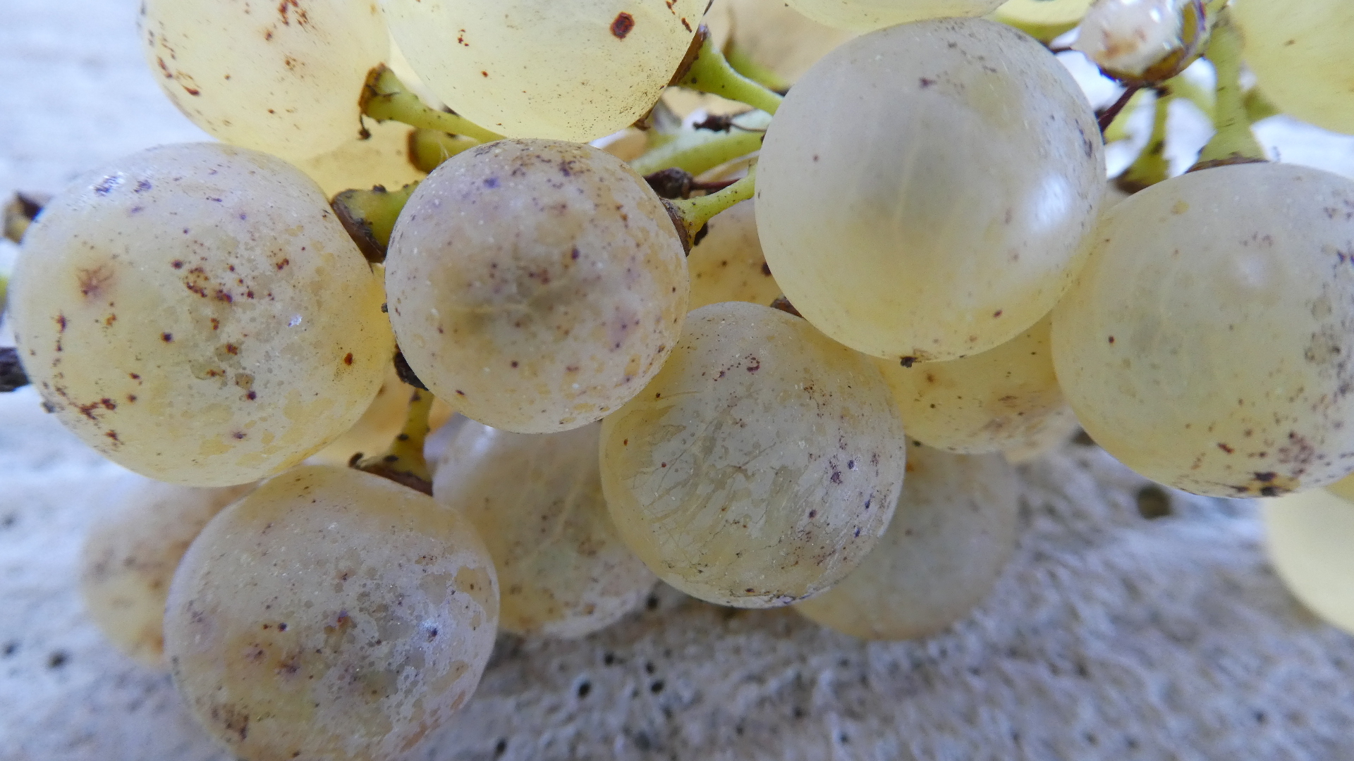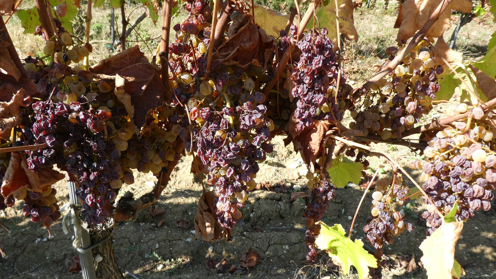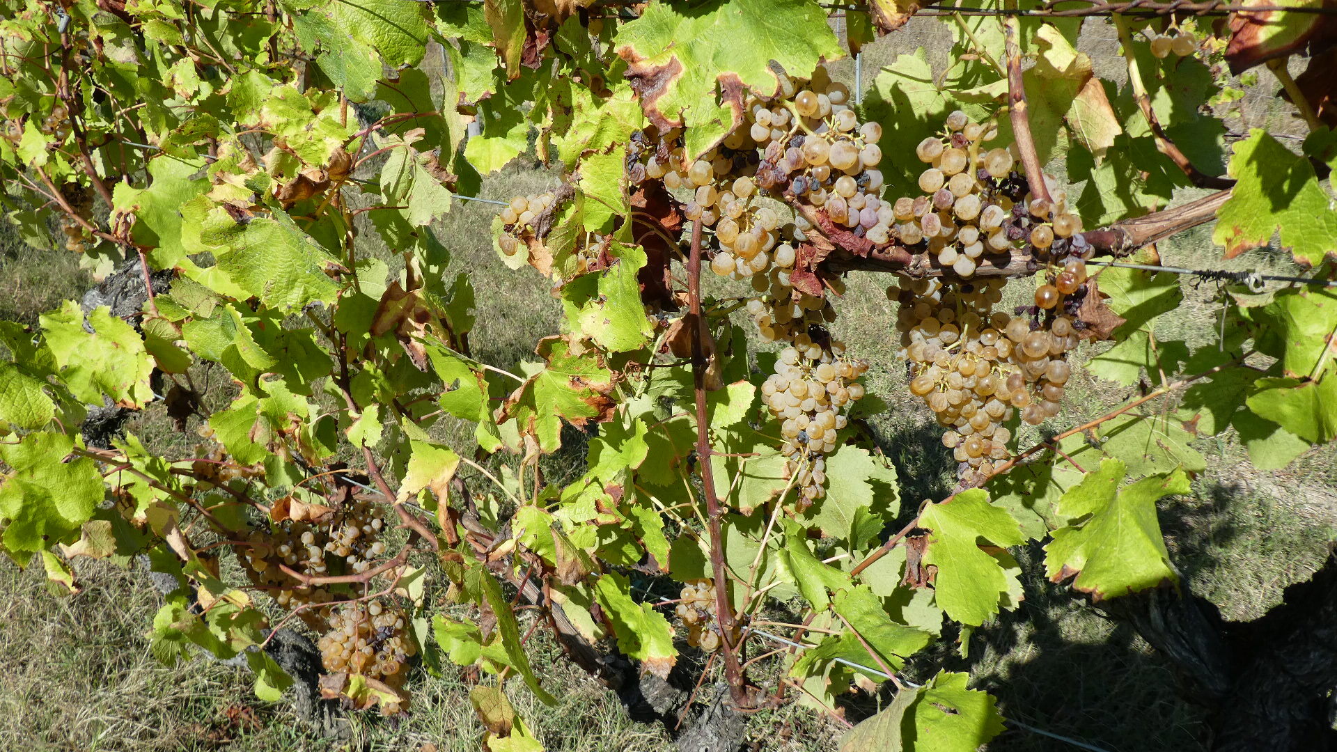 The variety could be sémillon, Sauvignon or mus a-t-elle, and they look good. Nice botrytis spots, should be ready to pick in a few days.