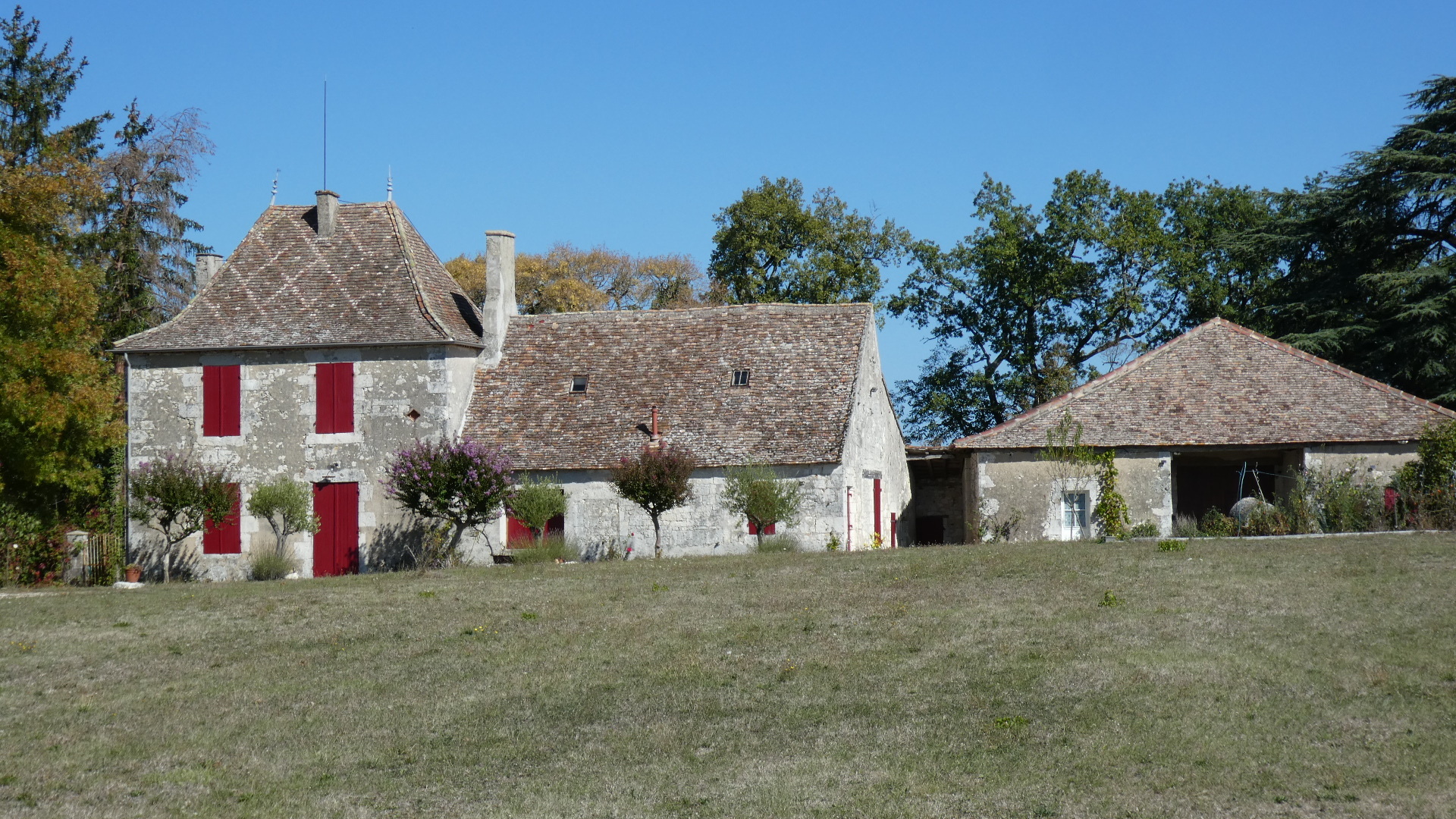 We left the chateau, and almost immediately the landscape had changed. Now the vines were gone, though there was this lovely farm house: