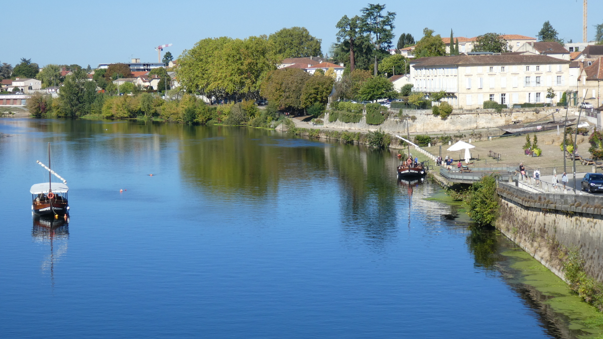 We finally reached the river, through all the interesting and lovely stuff. The riverfront was nice, but not as exciting as the other districts. we did however have the characteristic river boats. As we understood the story from Phillippe, the boats brought wood from up river and offloaded at Bergerac, there they loaded up with wine and took it to Bordeaux. At Bordeaux the boats would be abandoned - disassembled for their wood content - and the sailors would walk back upriver to begin the process again. The round trip took a year.