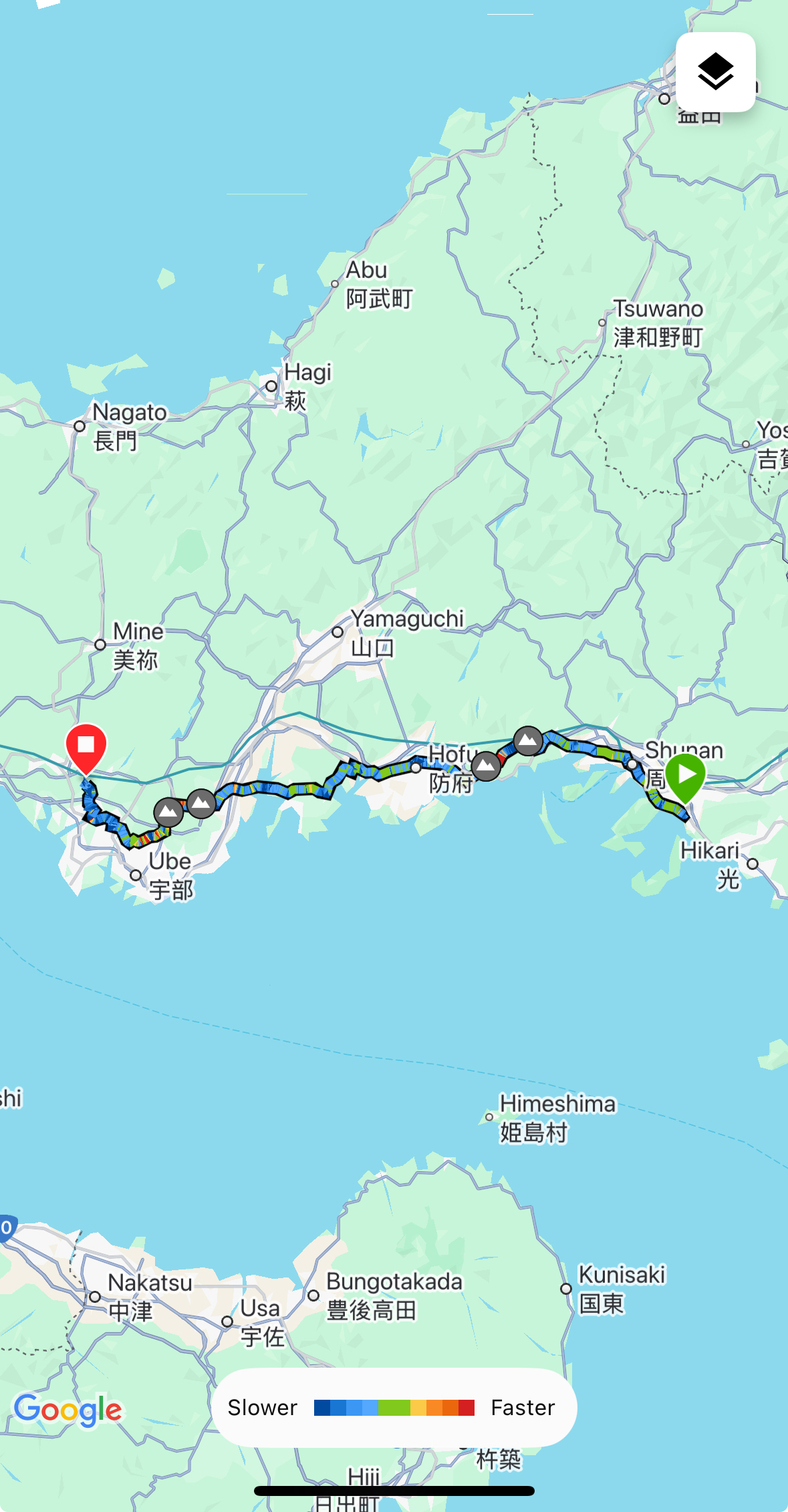 Cons: long distance to cover, mostly through an industrial hinterland between cities, fairly substantial elevation gain, busy highways, frequent long irritating stops at traffic lights, lots of trucks, highway shoulders that appear and disappear unpredictably, tunnels with no sidewalks or shoulders… I could go on, but you get the picture.
