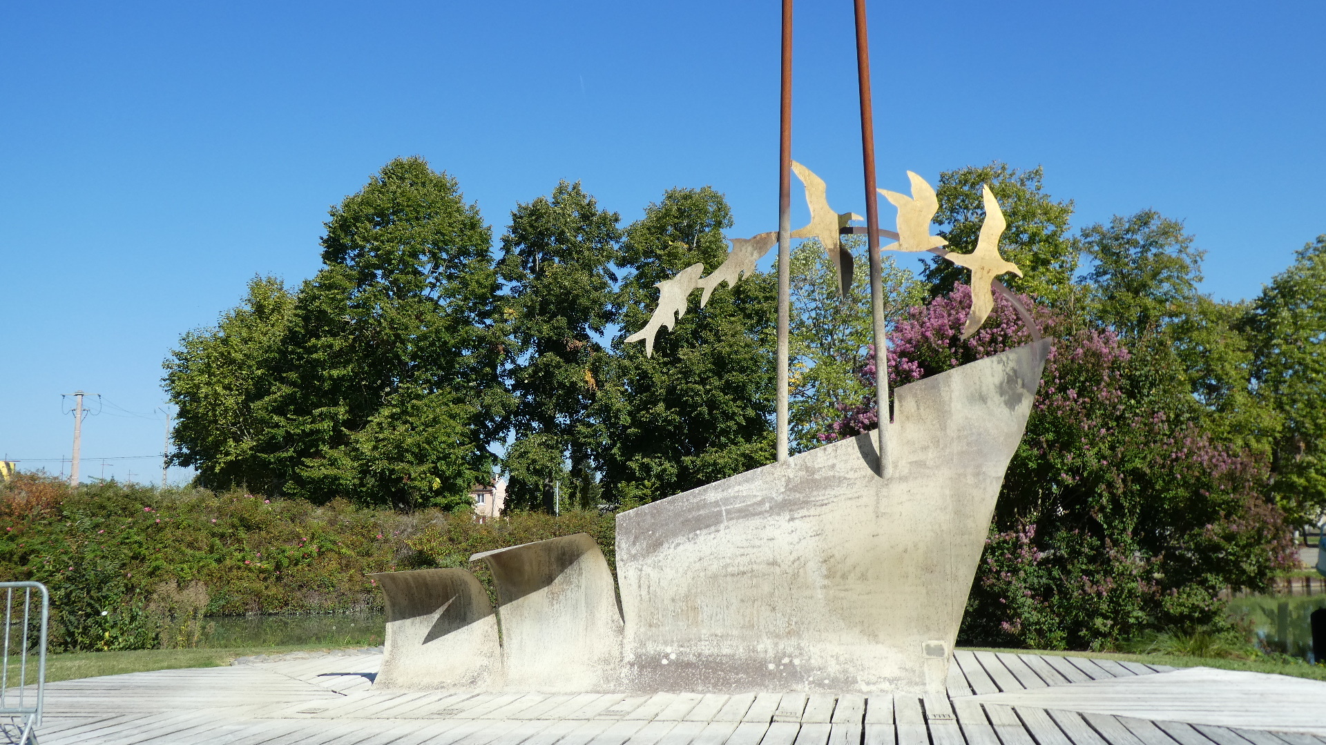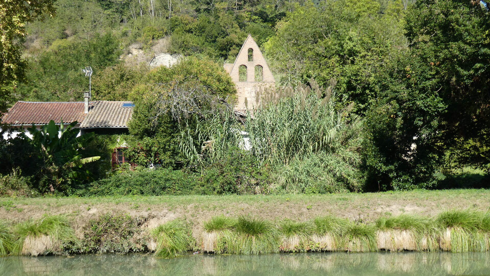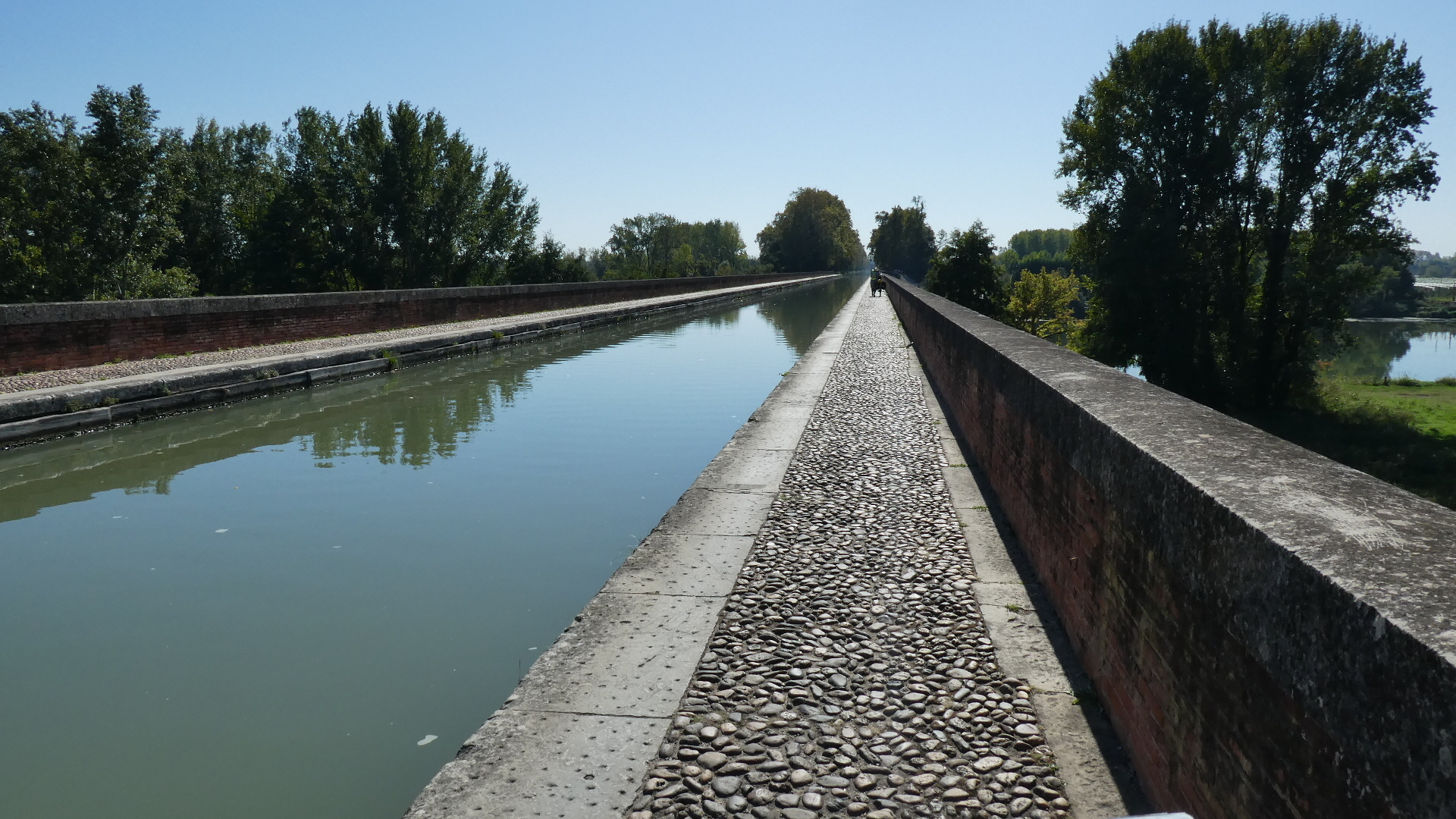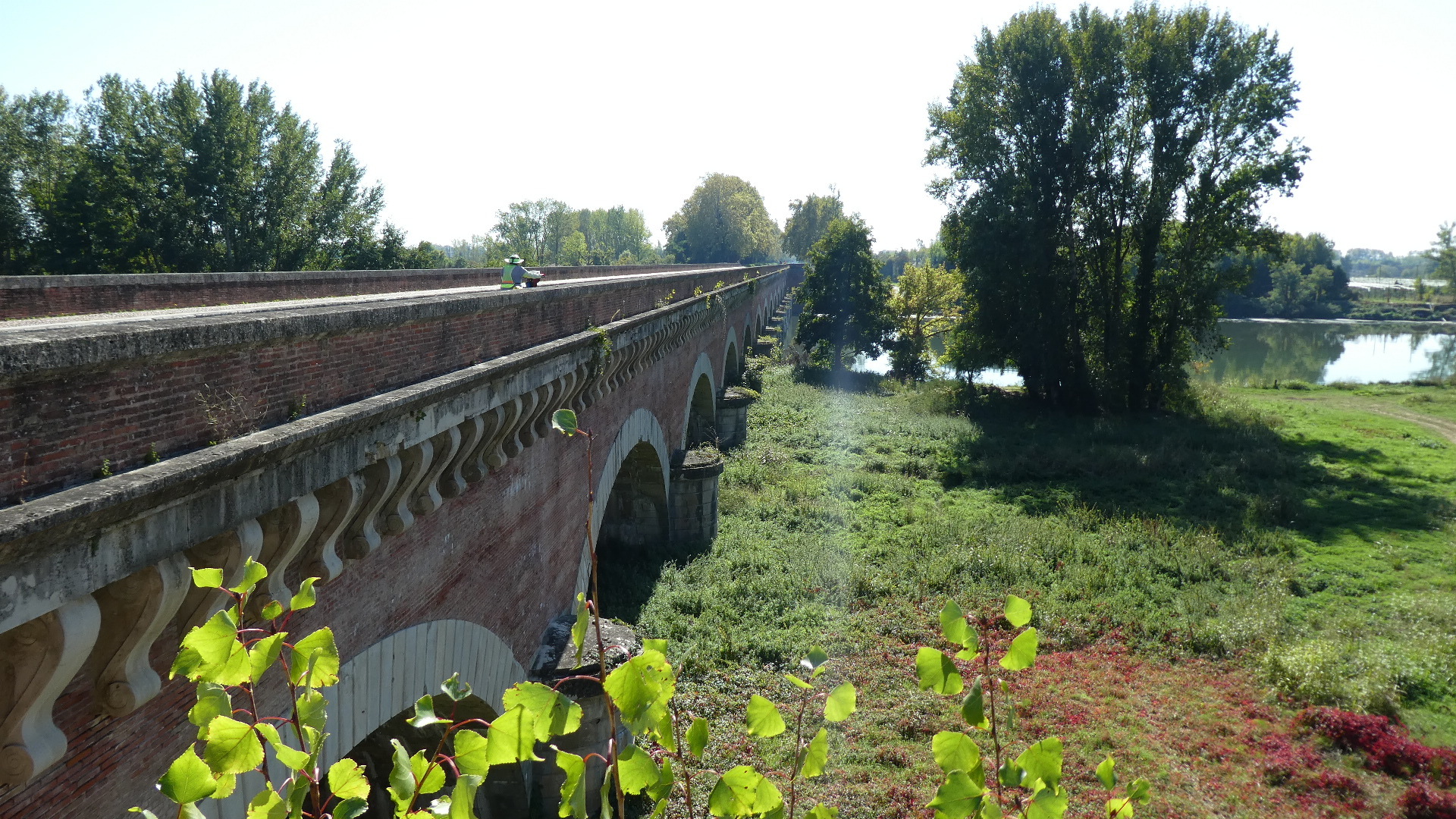 The Tarn, coming down from Albi and those Classens, joins the Garonne near Moissac. We crossed the Tarn on a pont-canal a bit up river, but first there was also the Napoleon Bridge, closer to Moissac. There had been a bridge in this area, but it was ruined in the 14th century. It took a visit from Napoleon I to kick start construction of the present structure.
