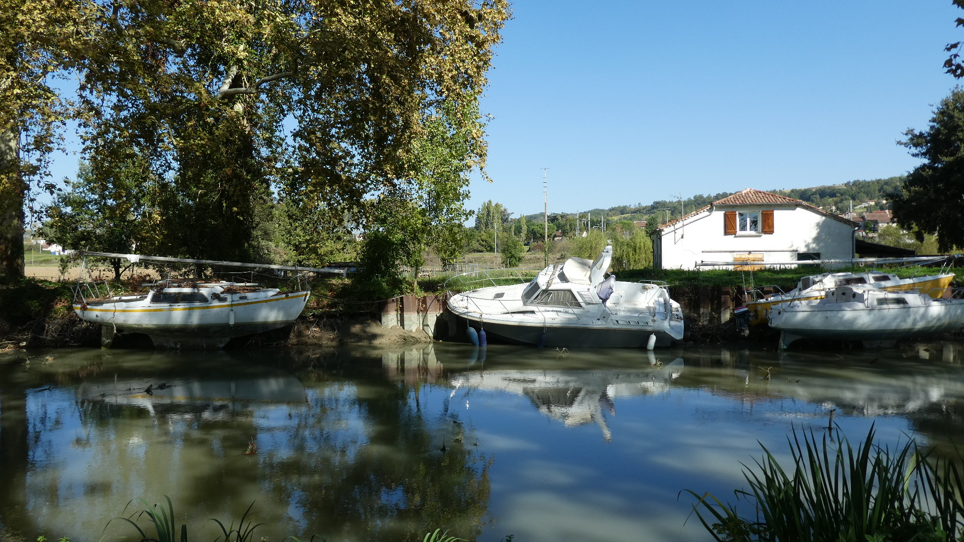 In all my canal path riding, I’ve never seen boats grounded like this. Usually when the VNF wants to lower the water level to do maintenance, they give plenty of notice. Maintenance season is 1st November to 1st April, at least around here, so this is doubly puzzling. Damage to a lock gate? Something for small minds to ponder.