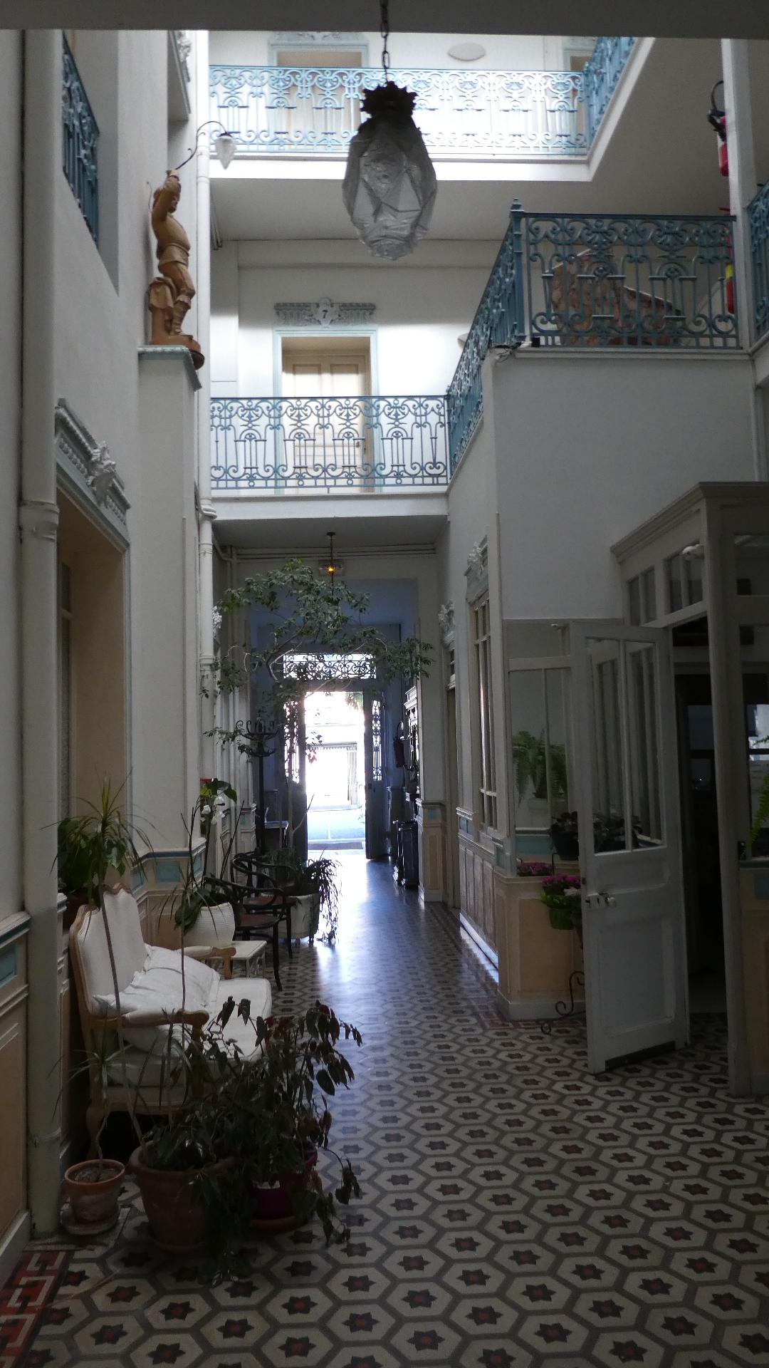 Our place in Castelsarrasin is the Marceillac Hotel. According to a plaque outside this was built in Art Nouveau style in 1912 by Pierre Marceillac, and his descendants are still running it.