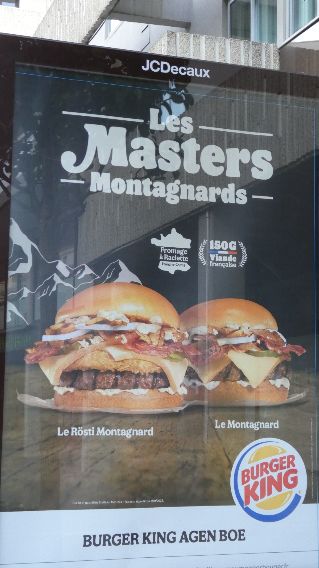 Out in the street we noticed another phenomenon. The (American) multinational showing quite a bit of local adaptability. So instead of the Whopper, Burger King is offering whatever these things pictured are. And they take care to specify that they are made from French meat and cheese.