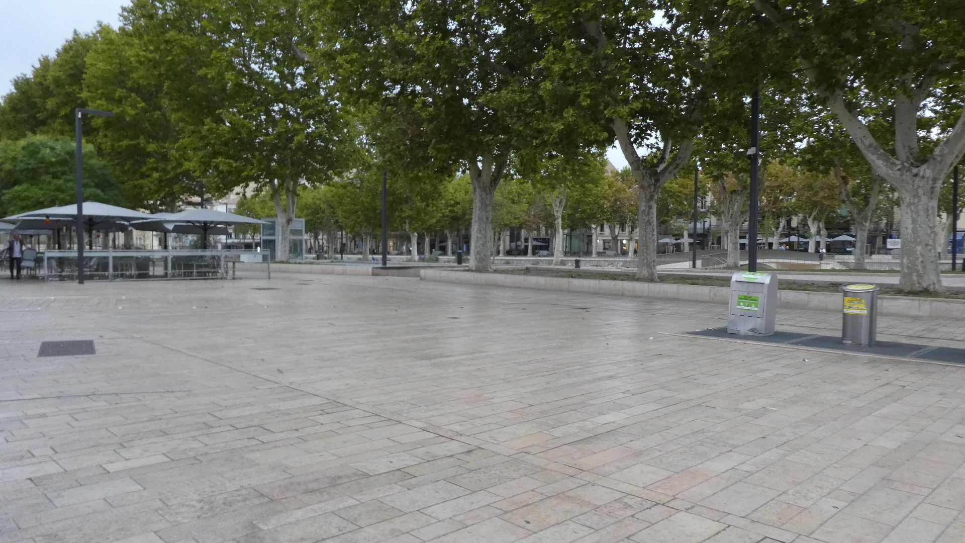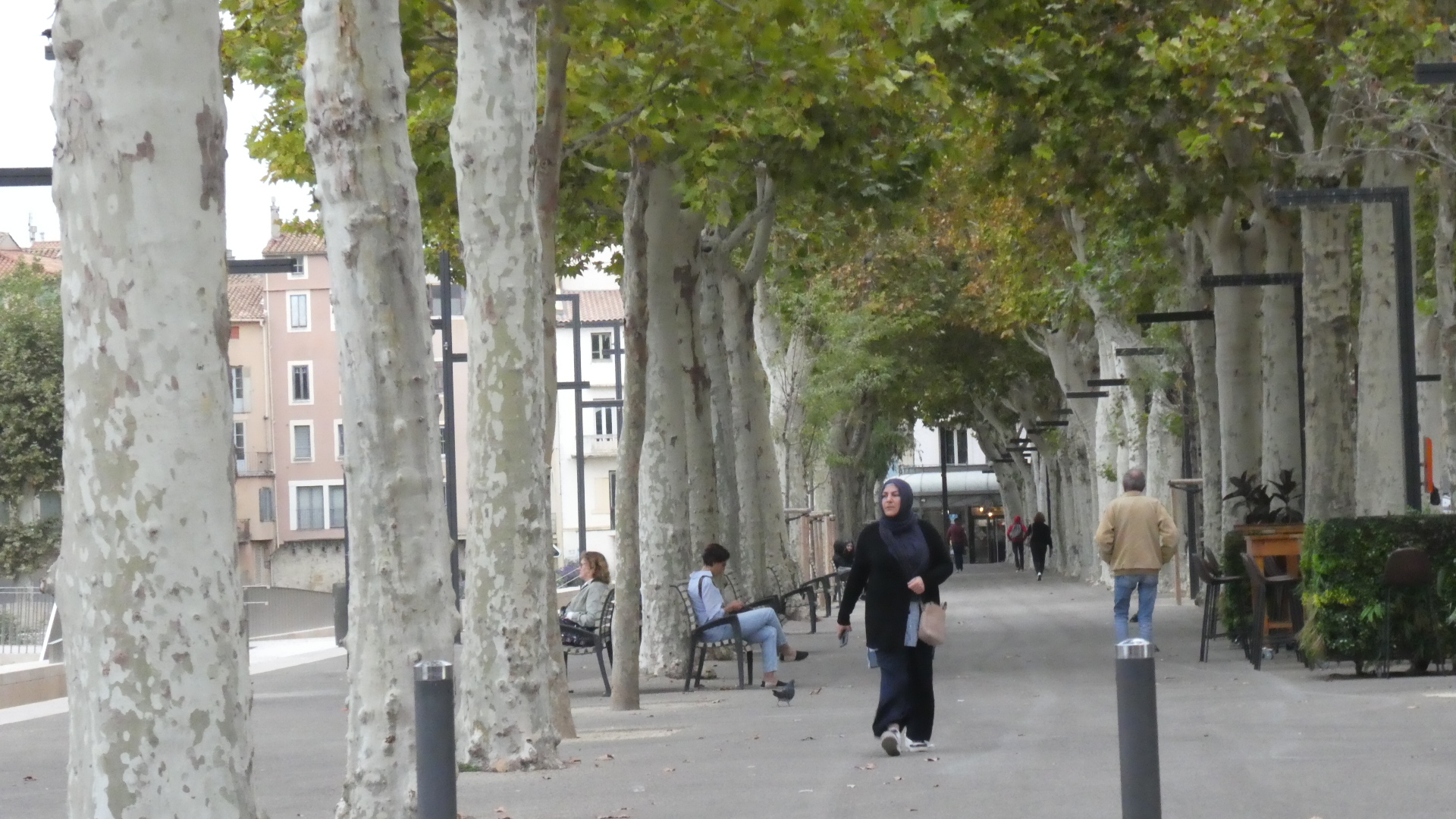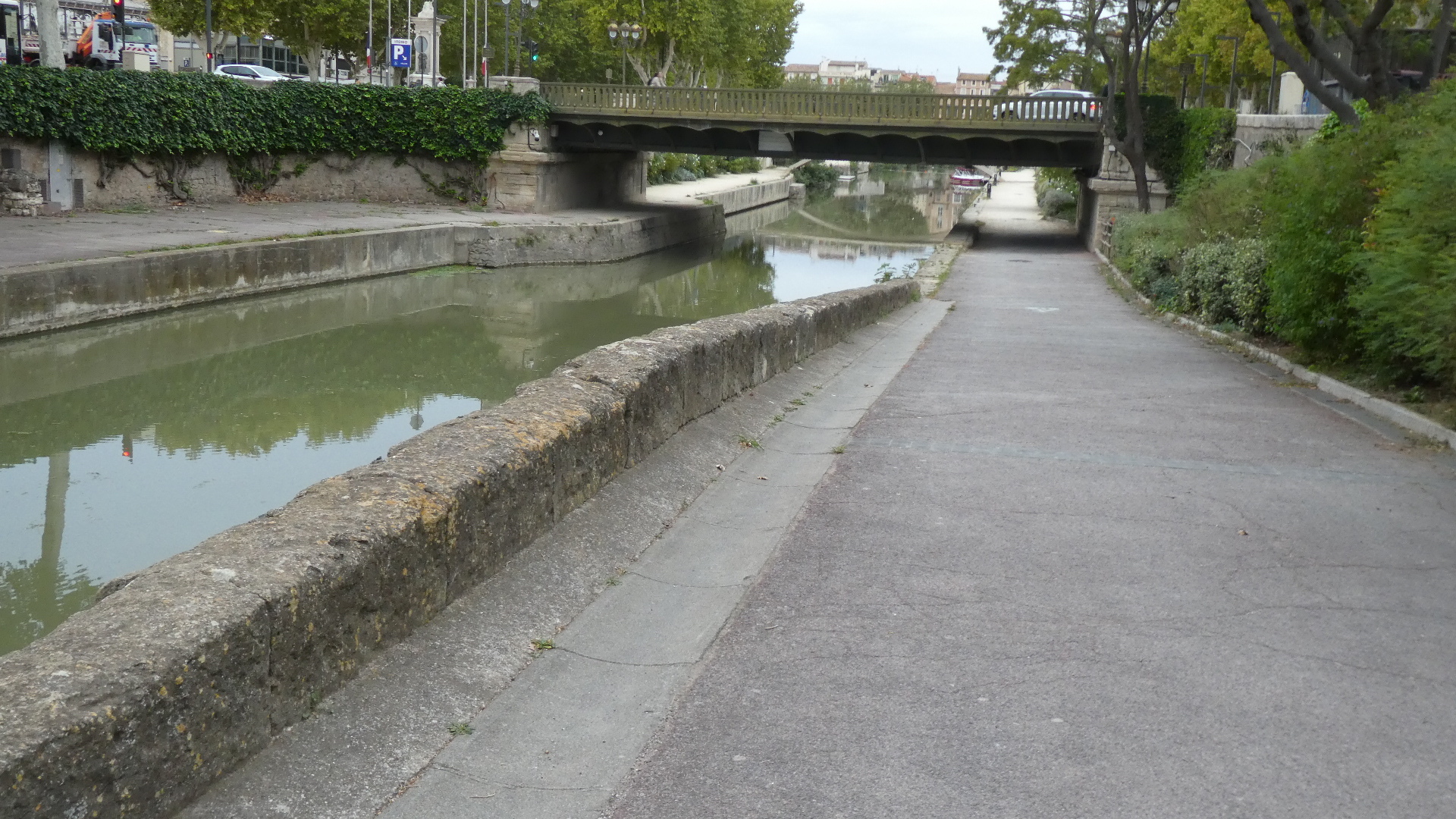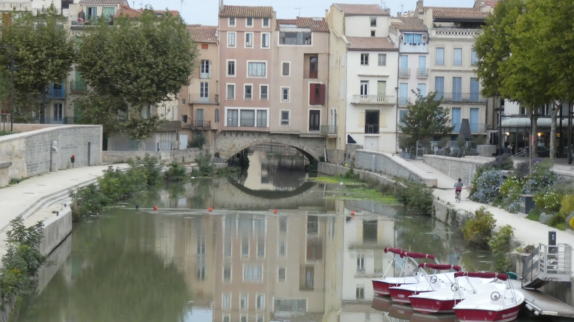 Though Narbonne has some narrow streets and quite an extensive old city, the impression we had came from the central thoroughfare, which surrounds the Canal de la Robine, which bisects the town. That impression was of expansive openness.