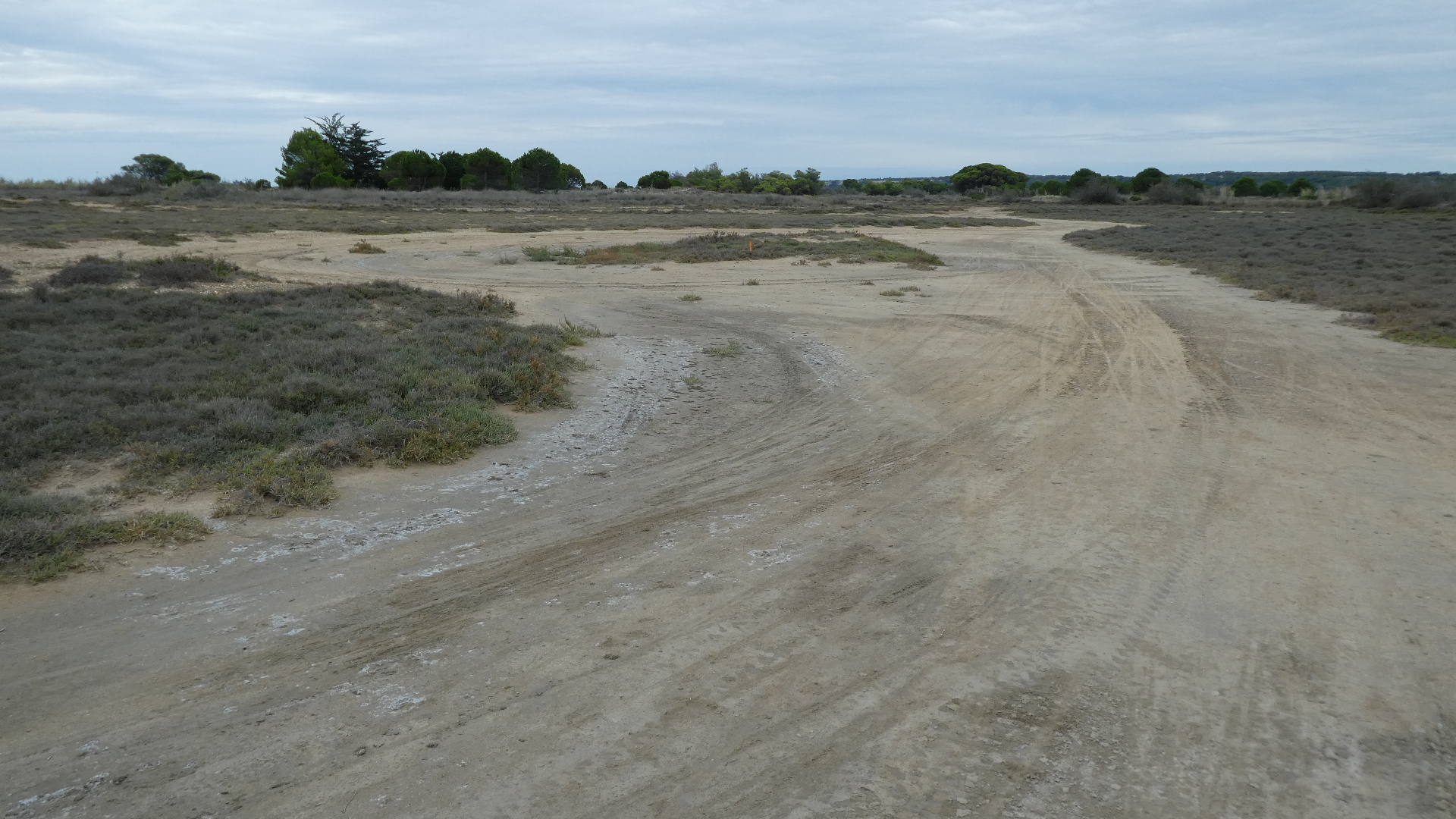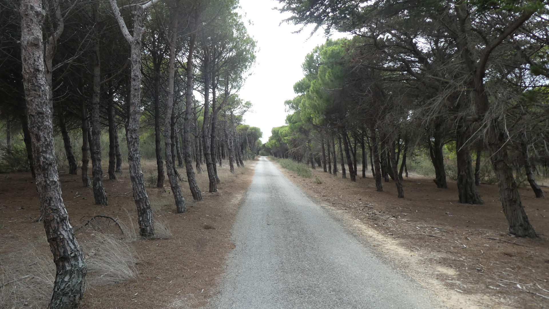 The track went down the middle of a spit now, producing a nice trail lined by pines.
