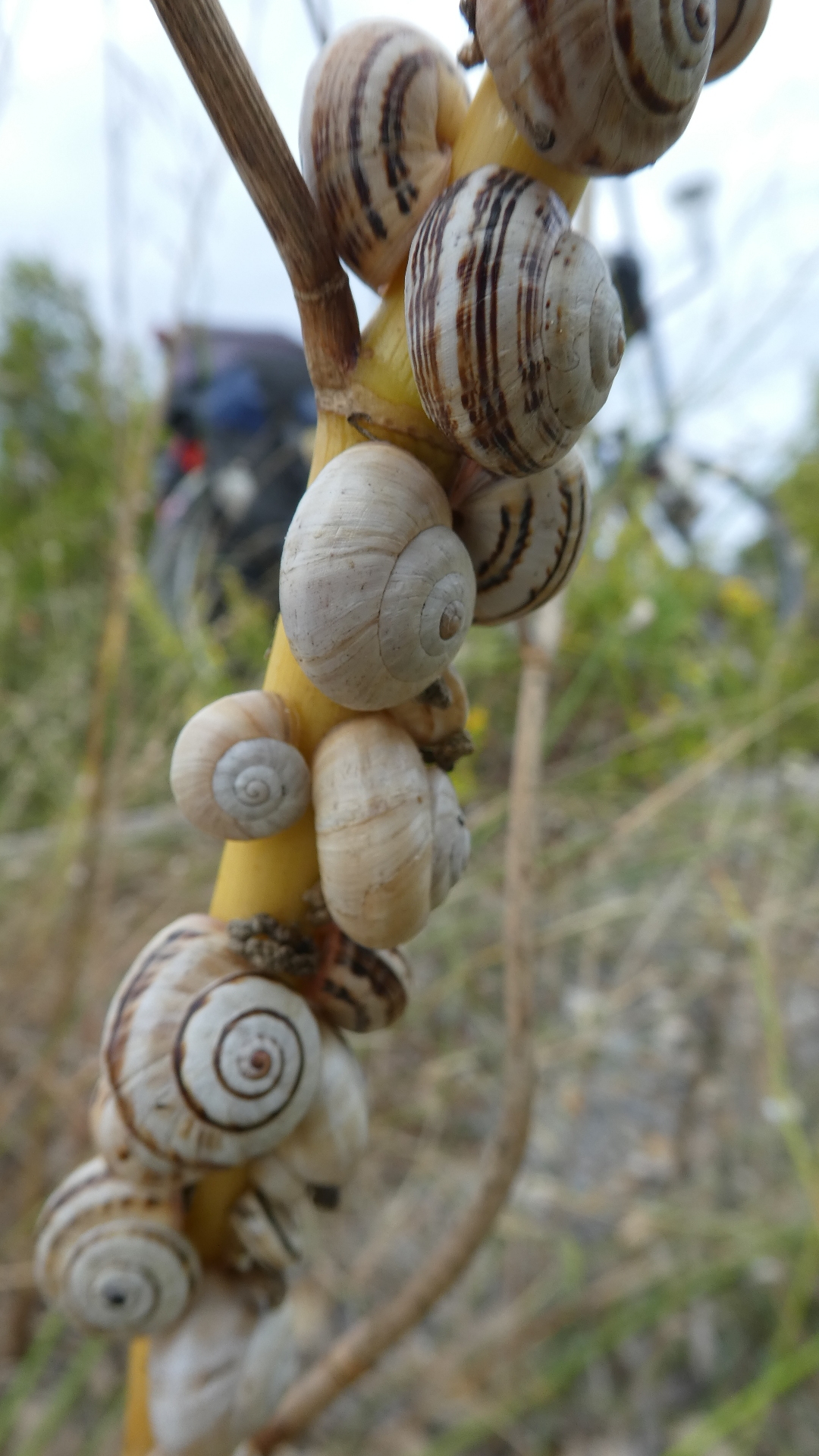 We had continued to see a lot of dill by the roadside, but now the dill featured those snails from yesterday, that had been using aluminum poles. checking the internet, climbing snails are a common thing. These are probably Mediterranean Sand Snails.