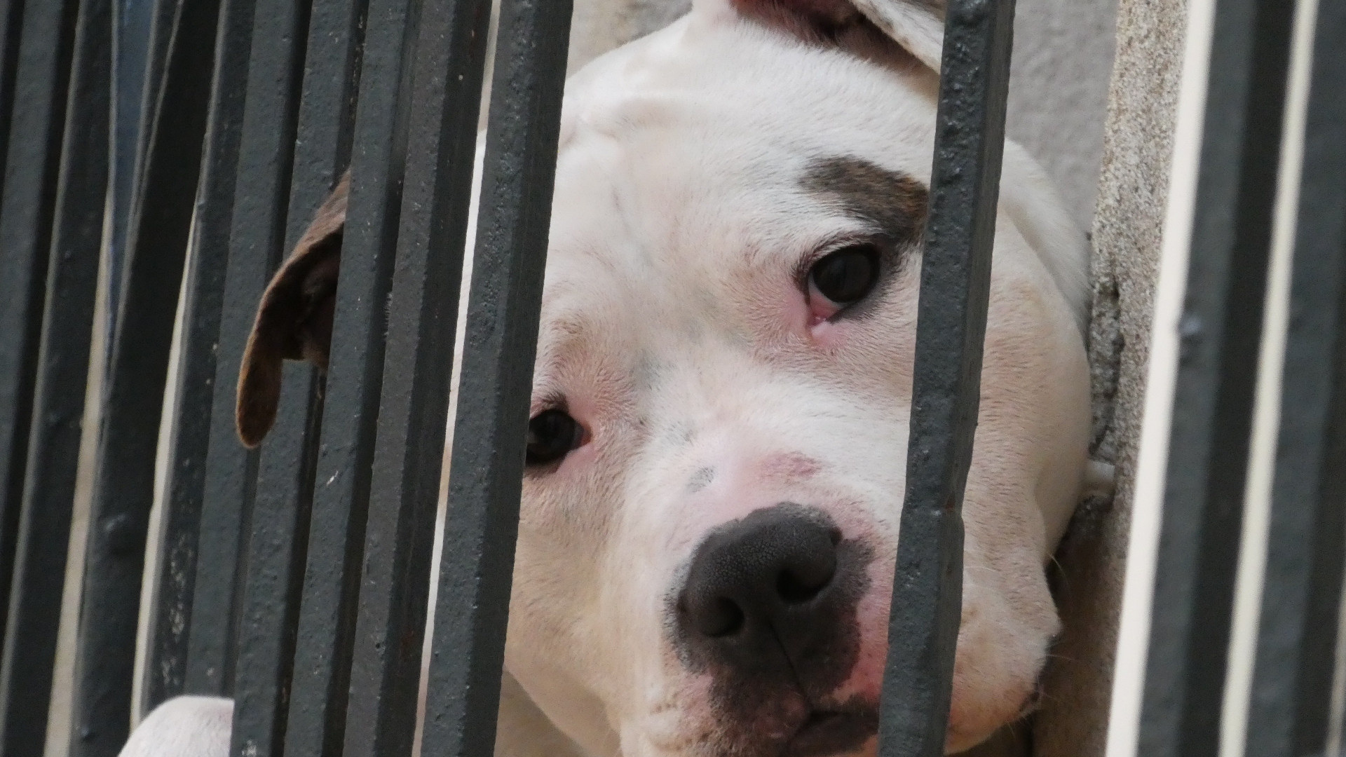 Back at the hotel, Dodie had asked for a quiet back room, having listened to the noise of D900 all last night. We did get a room with a little balcony looking out back, and on a nearby balcony we had a nice dog neighbour.