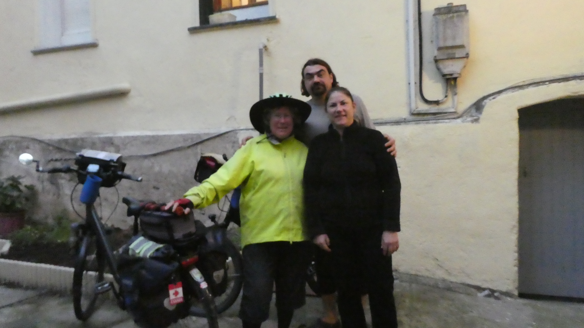 Our place last night, Auberge du Chene - near to Maureillas- was a "chambre d'hote" type of arrangement, where you are sharing the place with the proprietor. In this case, Greg, the proprietor, did his part perfectly - making us feel welcome, making sure we had everything we needed, and then leaving us alone, including at breakfast. In the everything we needed department, we asked for two giant extension cords, to help with charging the batteries but mainly to keep our phones charged as they played us stories through the night. Greg and his Mrs. went and dug out whatever we wanted, failing to make up any rules about what could be plugged in where.