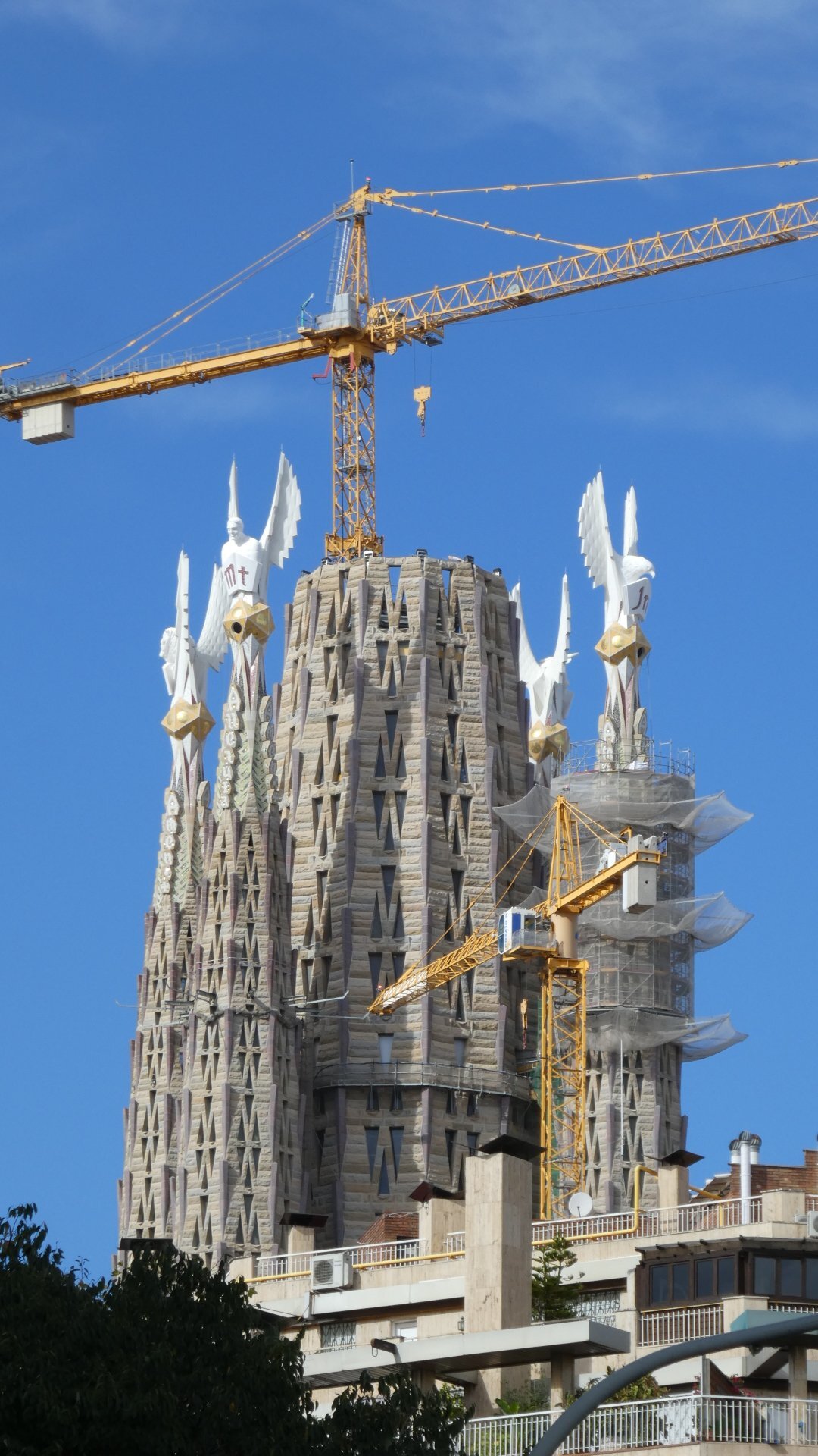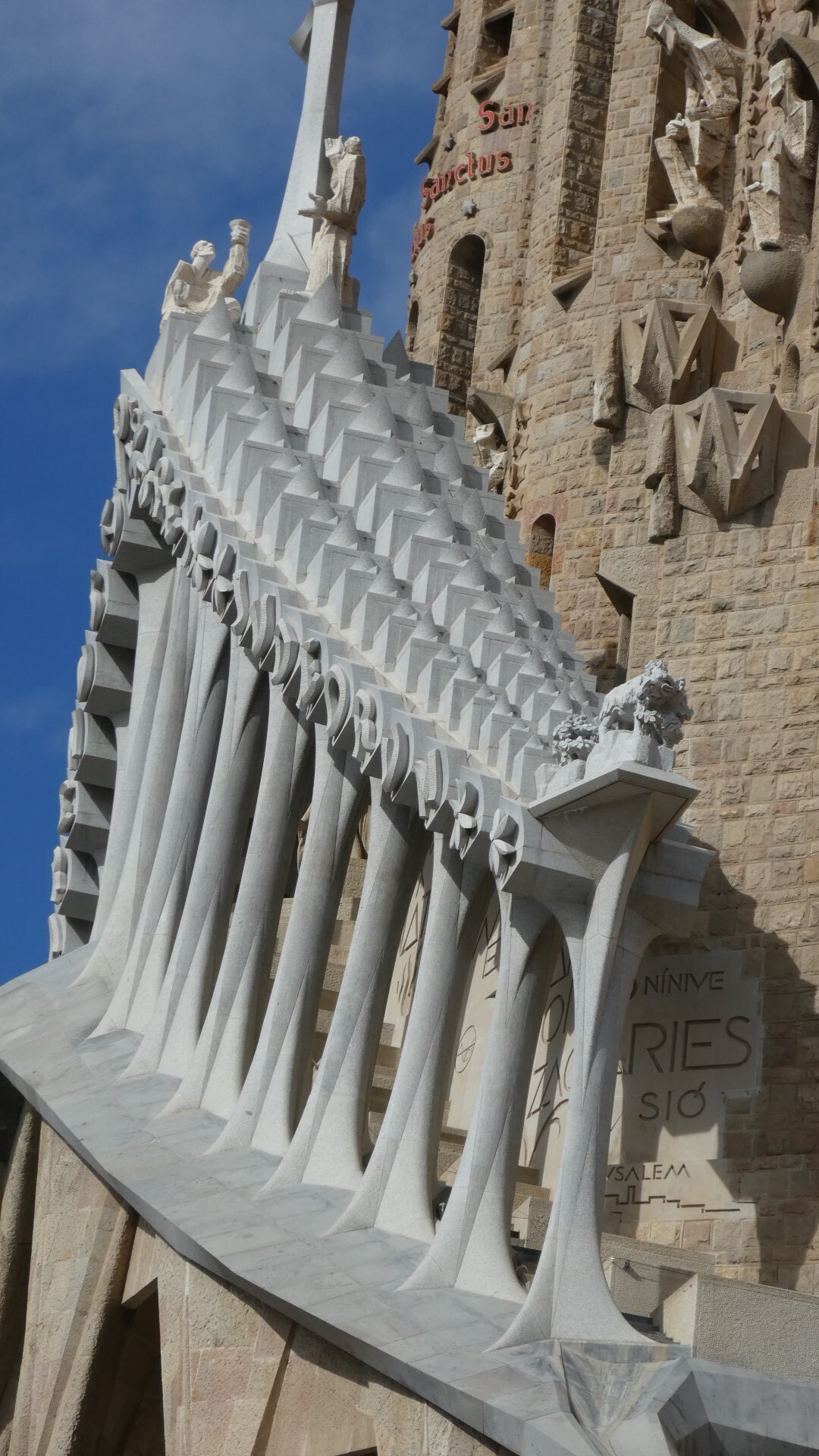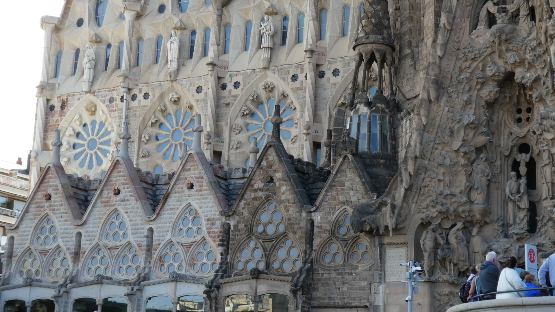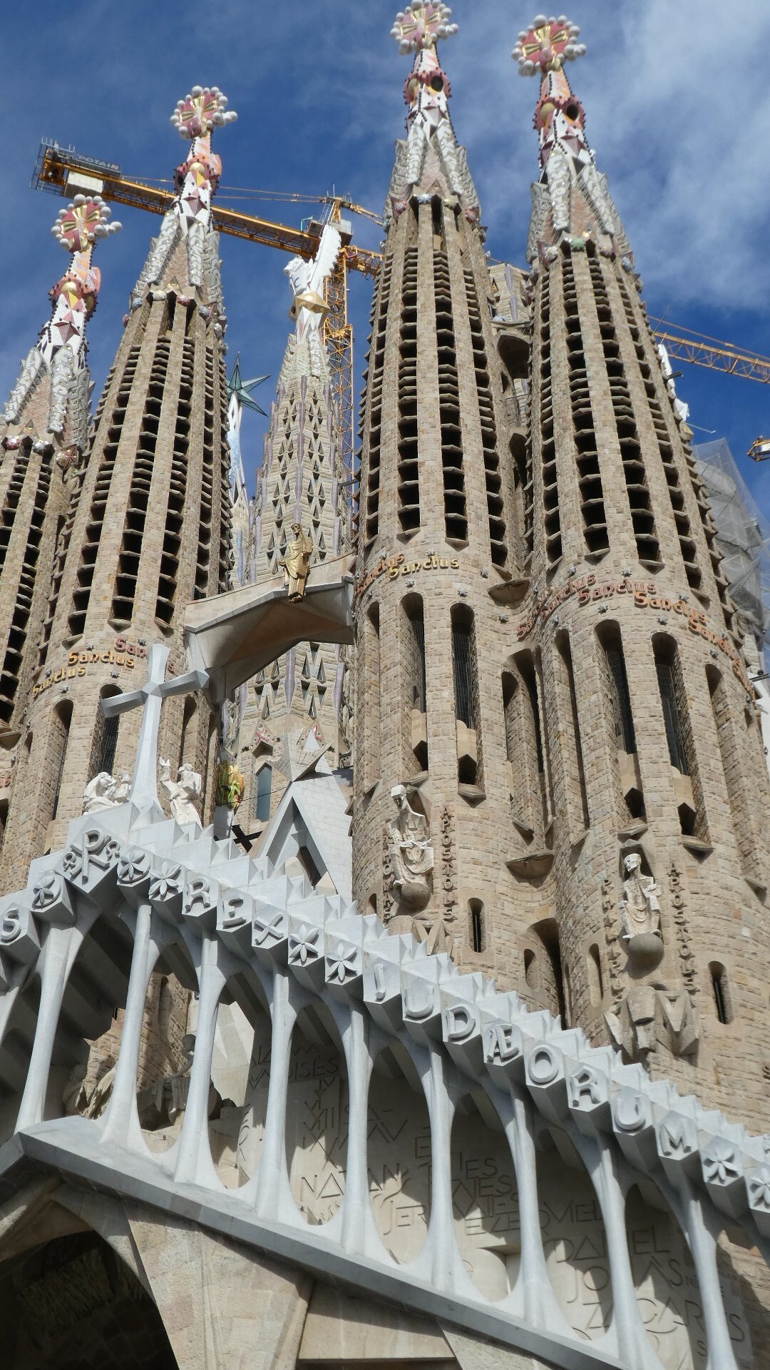 After dropping our bikes and gear, we decided to walk first to the Segrada Familia. We have all day in town tomorrow, and we will use that to look up some of the other sites. Segrada Familia, the church dedicated to the holy family and started by Antoni Gaudi in 1883 is probably the premier tourist attraction in Spain. It has a fascinating history and a lot to be said about its design and execution. Even the Wiki article on it is much fun to read. Lots of Cycleblaze writers have covered the Segrada Familia admirably. One good one is the Bartlett's from 2018. That is worth checking out, especially for a look inside.