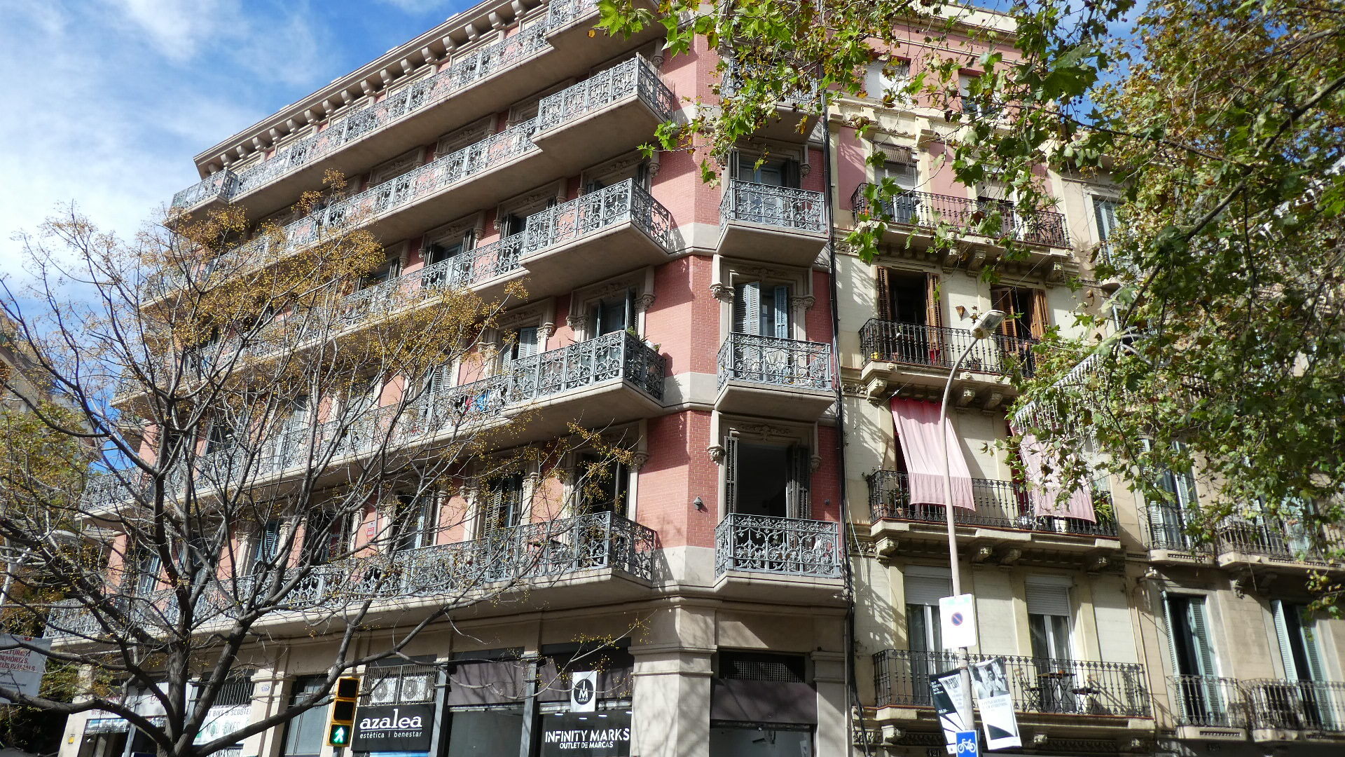We walked in the Segrada Familia's direction, again not yet noting any narrow stone streets or the like, though there were some pretty buildings, like the one below.