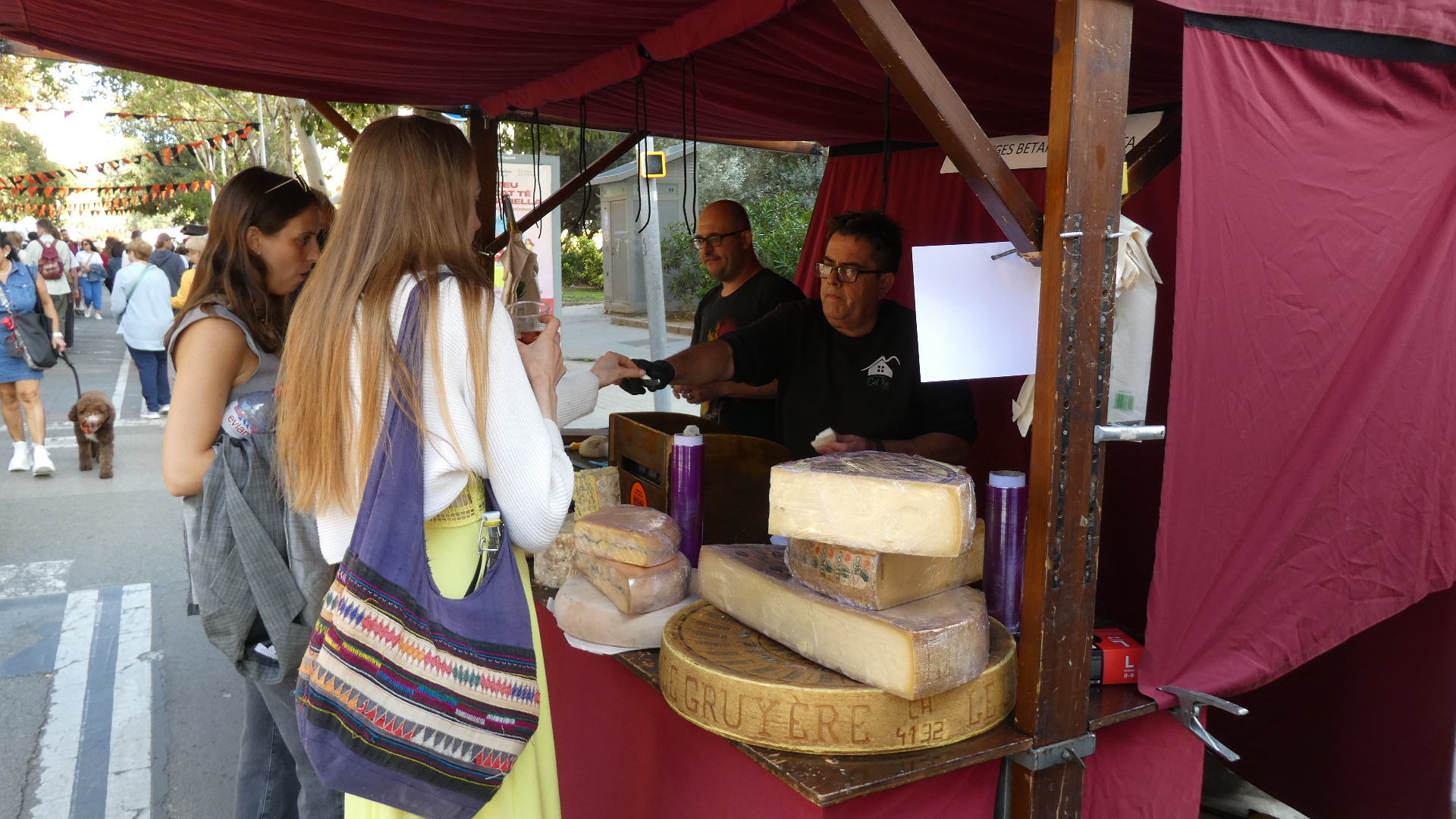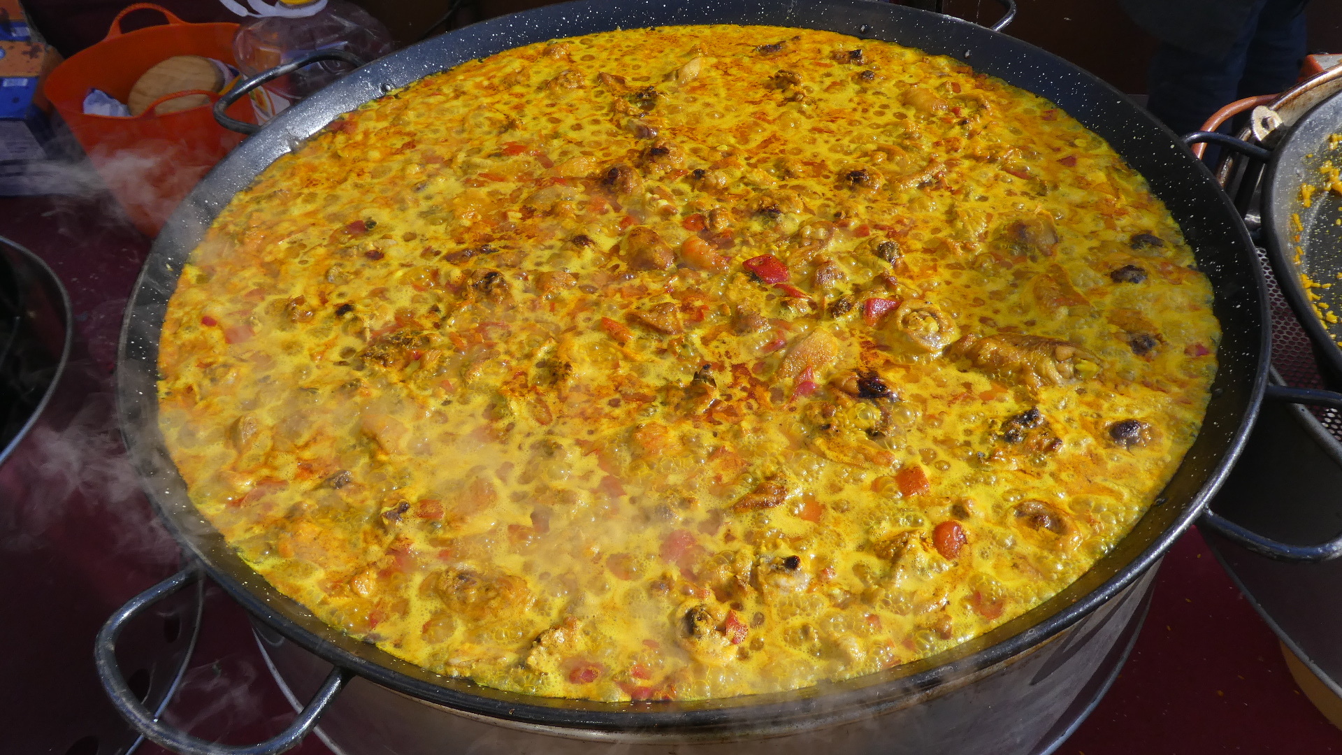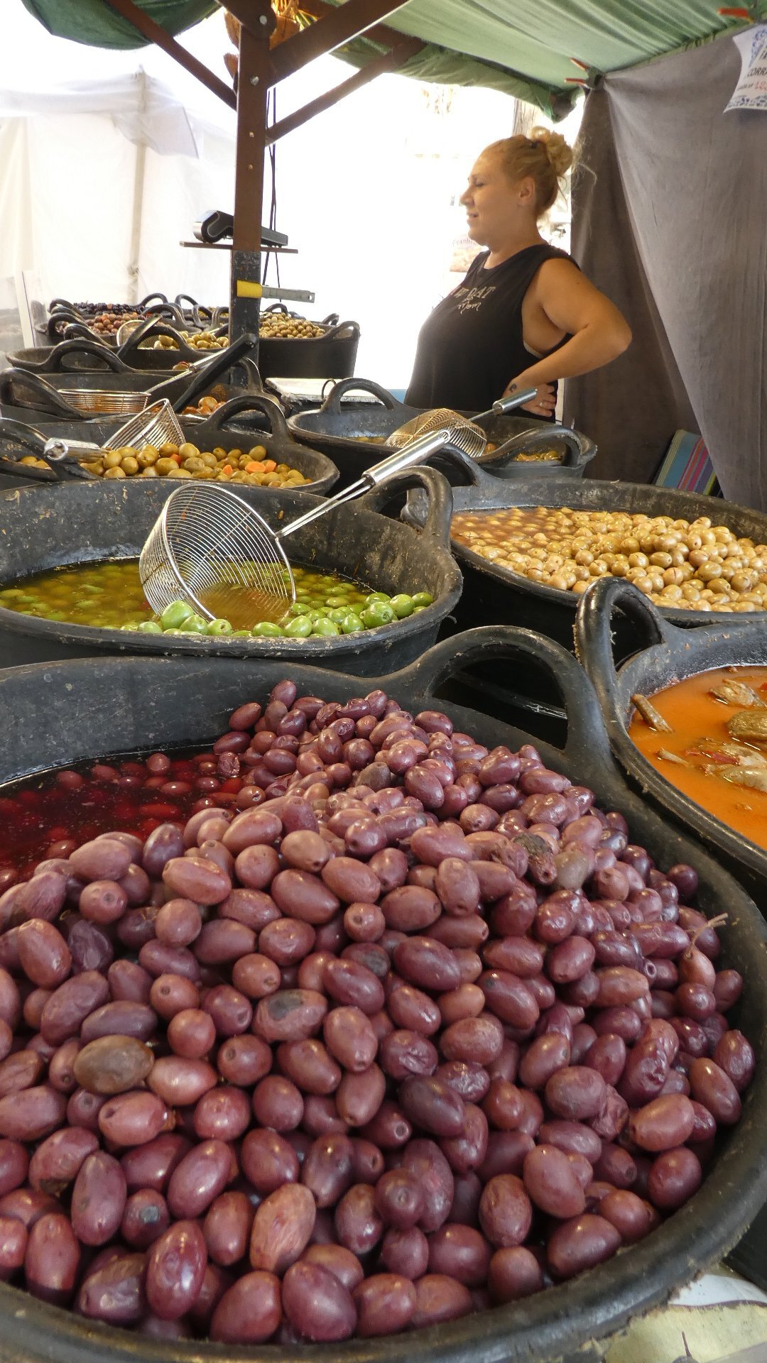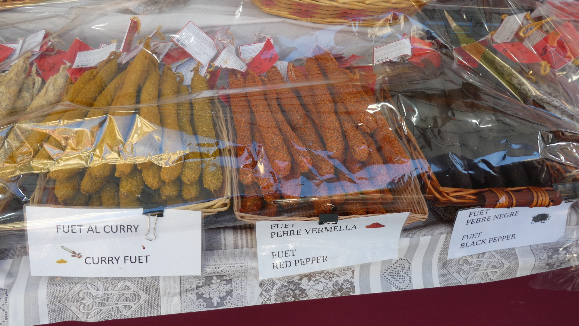 The stalls did not have fish or vegetables, but favoured street food, cheese, dry sausage, dried fruit, cooked sausage, and even paella, plus many craft items. This is so terrific, and we had just happened to hit it!