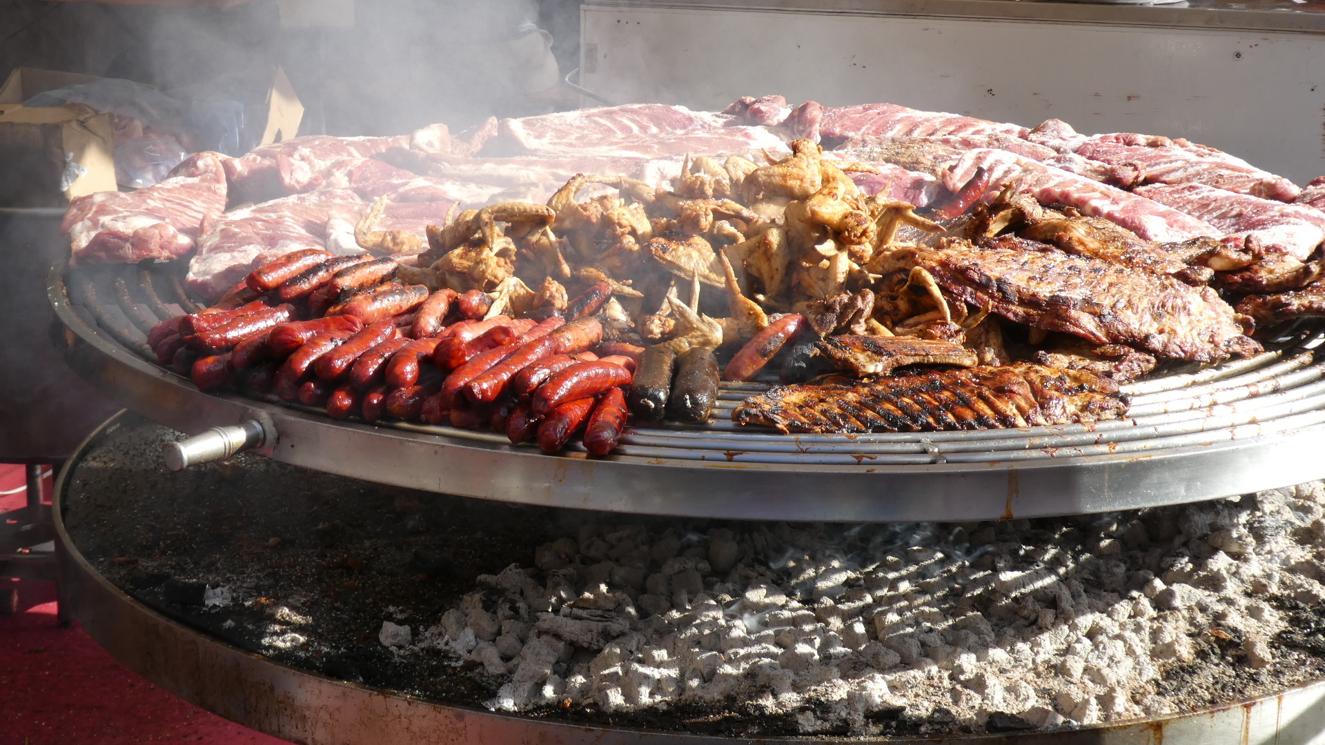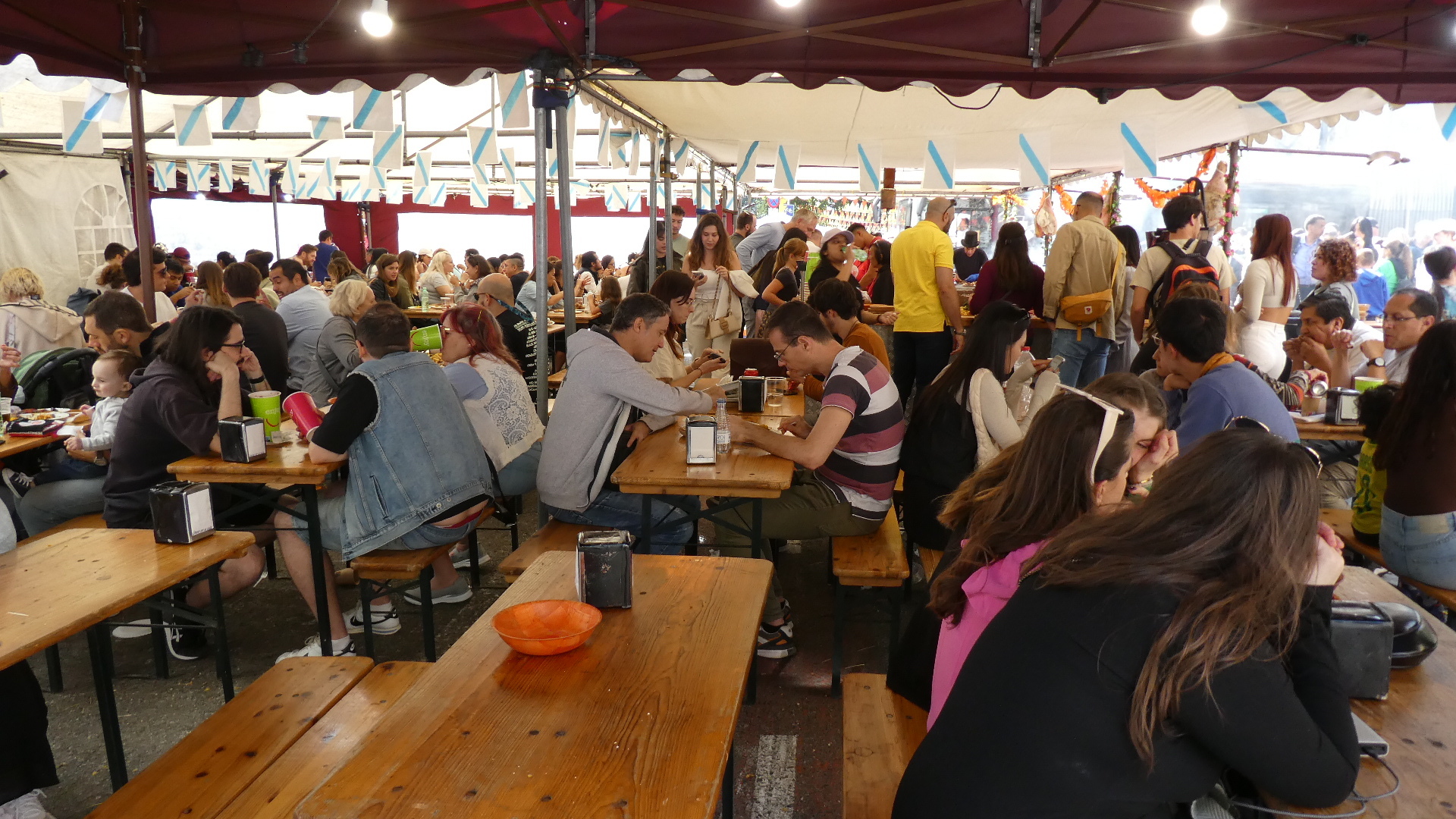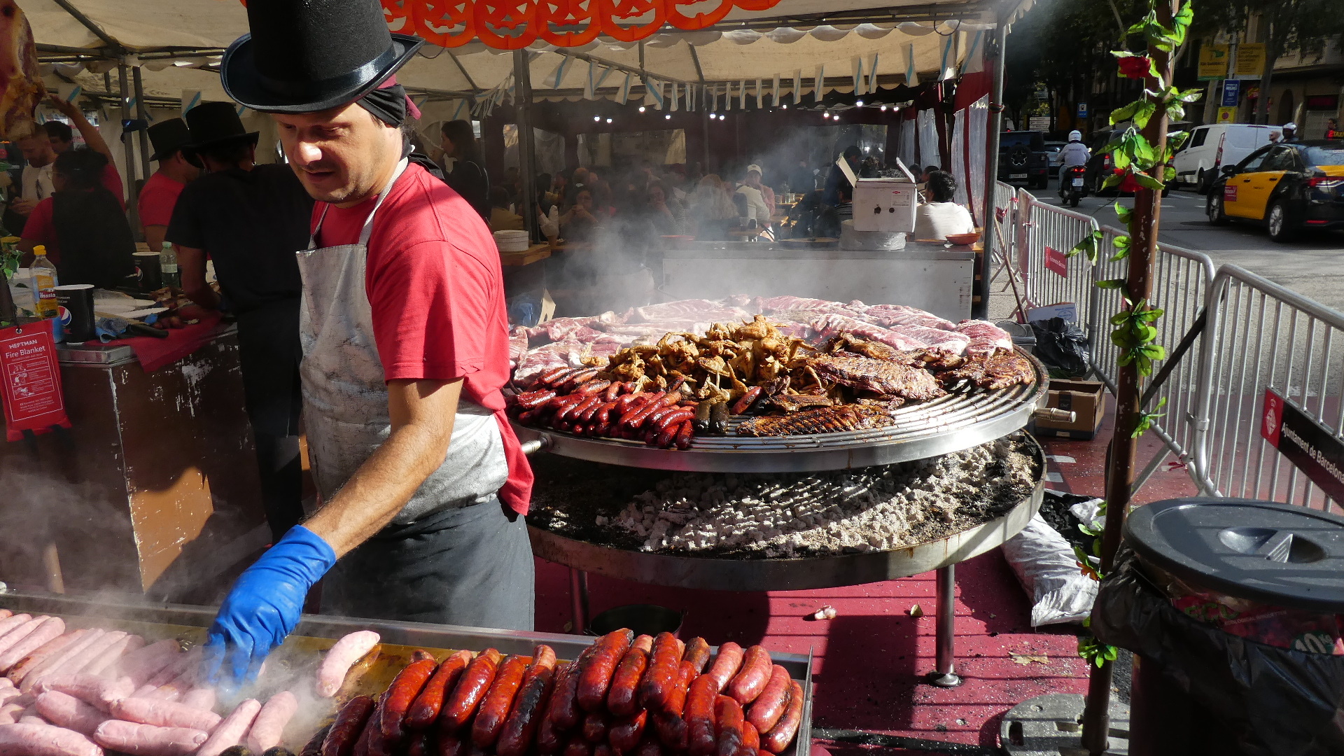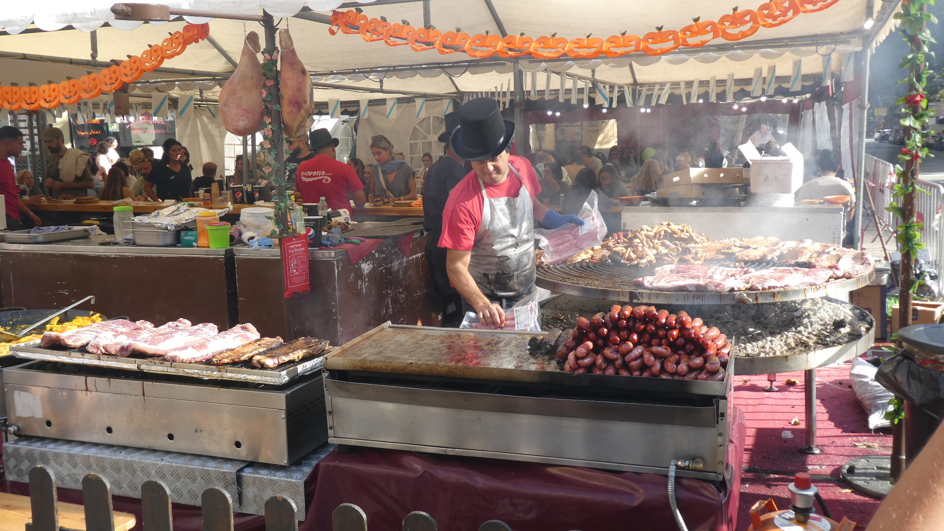 The stalls did not have fish or vegetables, but favoured street food, cheese, dry sausage, dried fruit, cooked sausage, and even paella, plus many craft items. This is so terrific, and we had just happened to hit it!