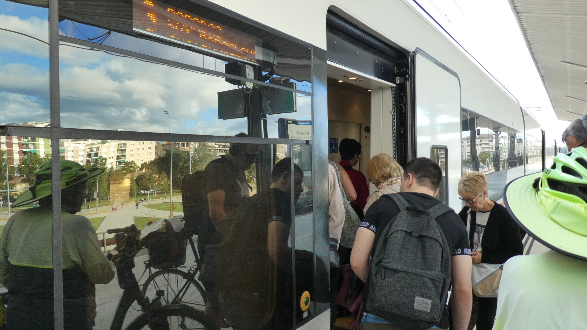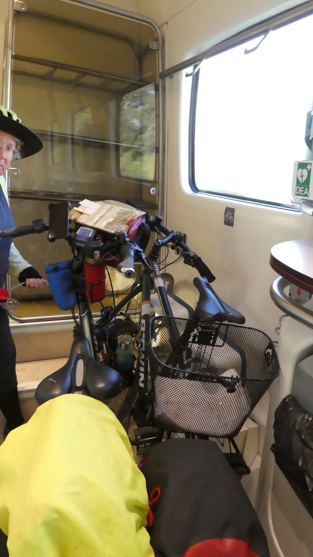It's never all that great taking a train with bikes, and certainly we did have to speed down the platform to reach a car with the bike symbol, contend with people and other cyclists trying to get in, and find an only half satisfactory place to lean the bikes for the trip. And of course we had to stand with the bikes, to keep them from flying when the train would lurch.