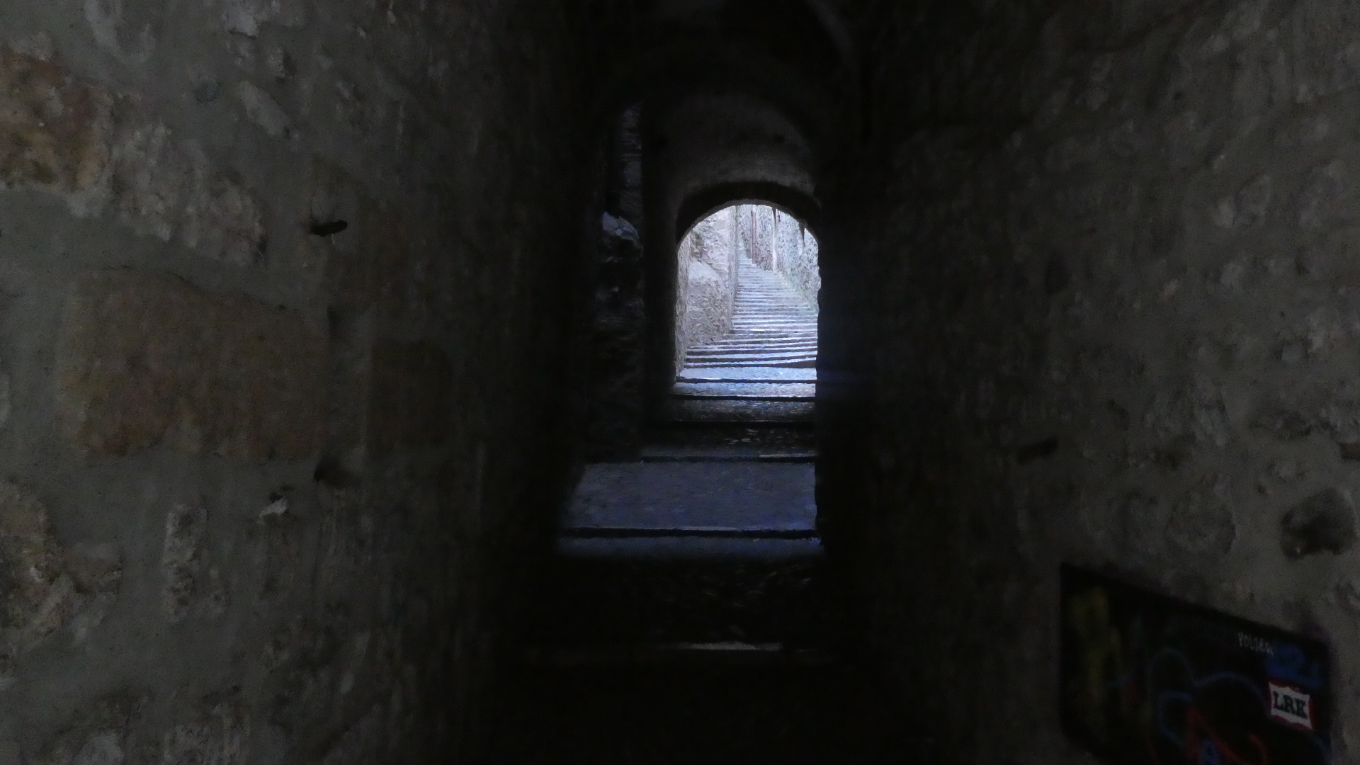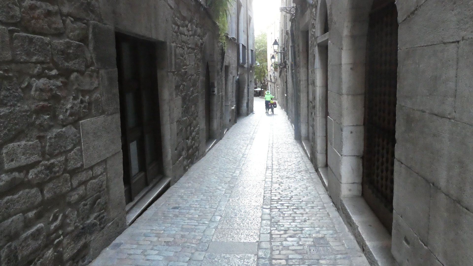 We had to carry the bikes over steps to the nearest laneway, but we had loved our spot for the night, with the stone walls and high ceiling. It was then easy to make our way to the train station, to carry out our plan of not having to cycle through any outskirts of Barcelona.