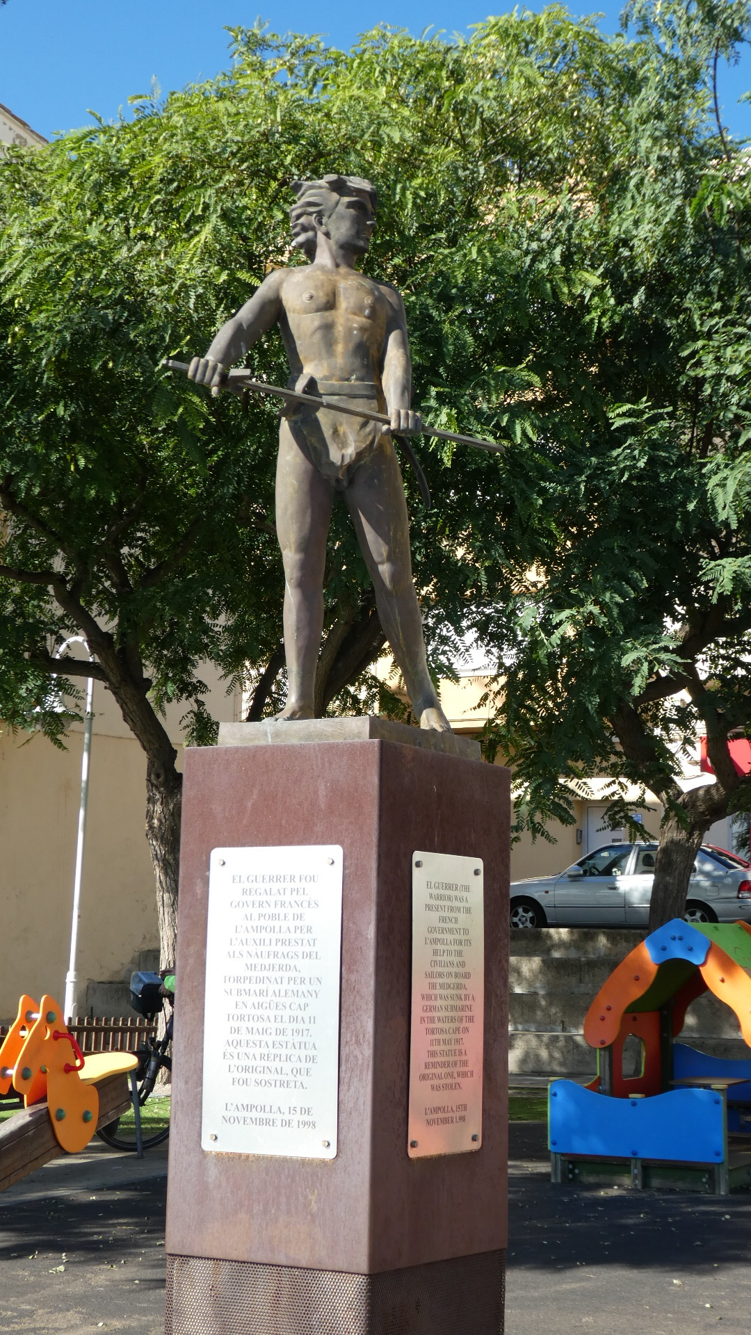 We stopped for lunch in a park at L'Ampolla. The park had a statue called The Warrior. It was given to the town by the French government in recognition of help for a ship that was sunk nearby in 1917 by a German submarine. Interestingly the original statue was stolen, and was replaced with this replica in 1998.