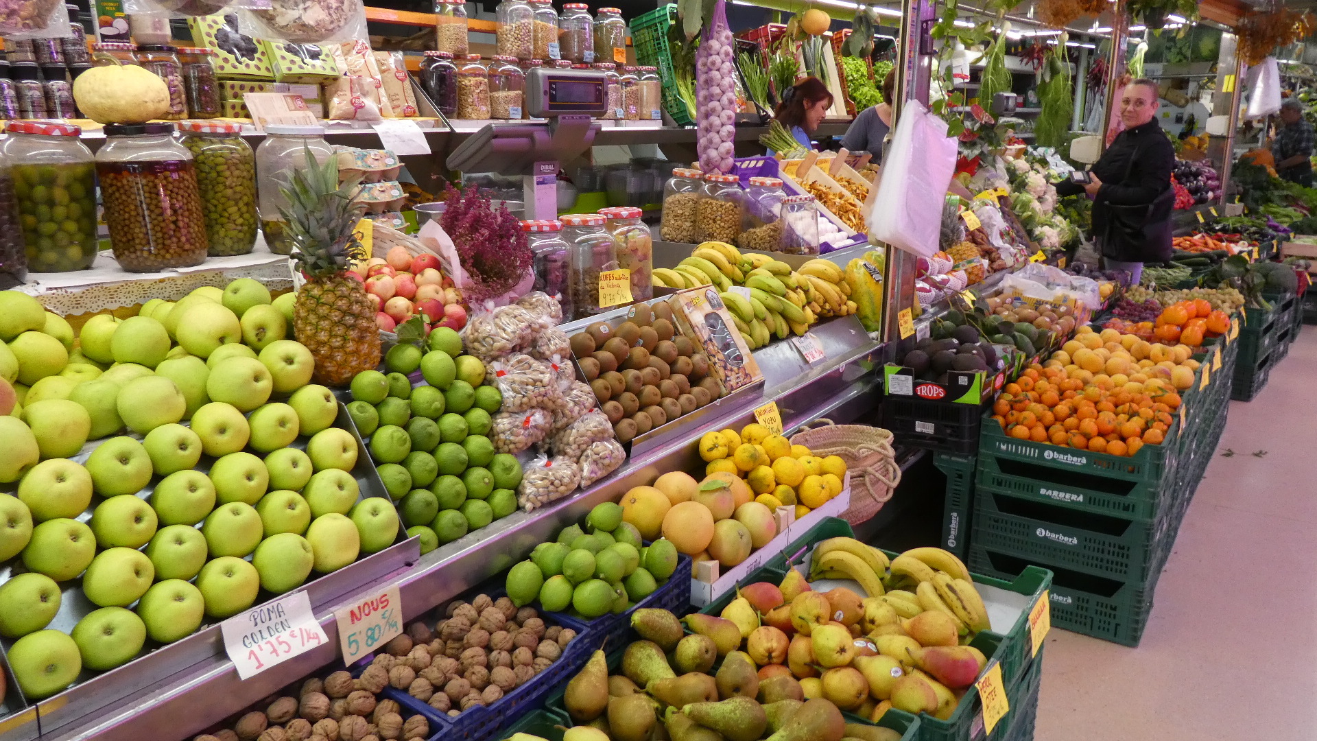 We found the covered market, which was small but which did have a selection of quality fruits and vegetables. I paid 6o euro cents for two plums, and thought that a bit much. A very soon to be stale baguette was also 1.30.