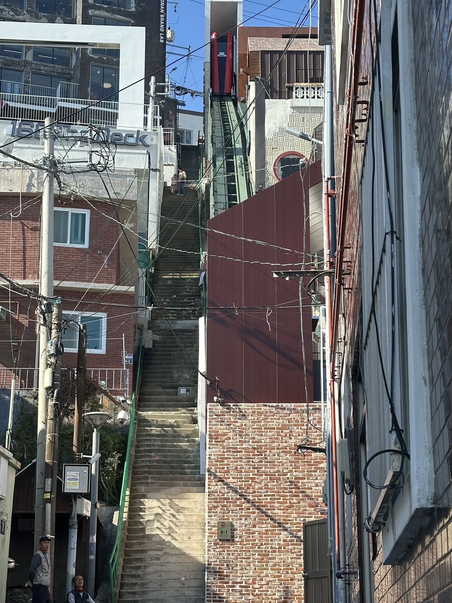 Then it was on to some serious city exploration: with less than 48 hours in Busan, we wanted to see as much as we could. We rambled around the streets of Chinatown, which seemed to be transforming into Russia town, with many restaurants and stores advertising themselves in Cyrillic characters. Then we roamed further into the streets beyond, which quickly took us uphill, climbing from street to street on the staircases that are threaded everywhere through the neighborhoods.