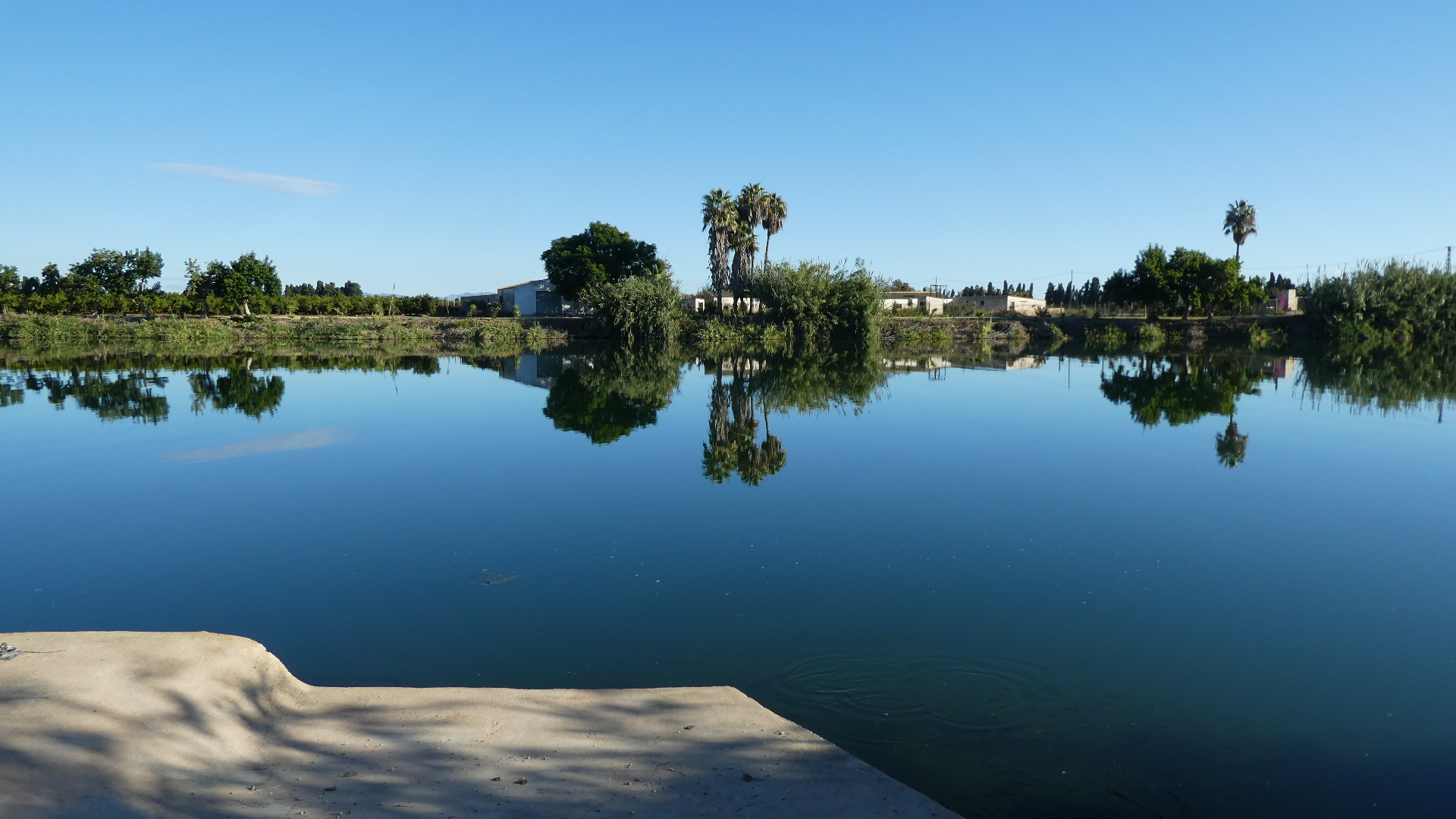 The delta is criss crossed by irrigaton canals, and one runs right by our hotel. It earned a snapshot because Dodie liked the railing.