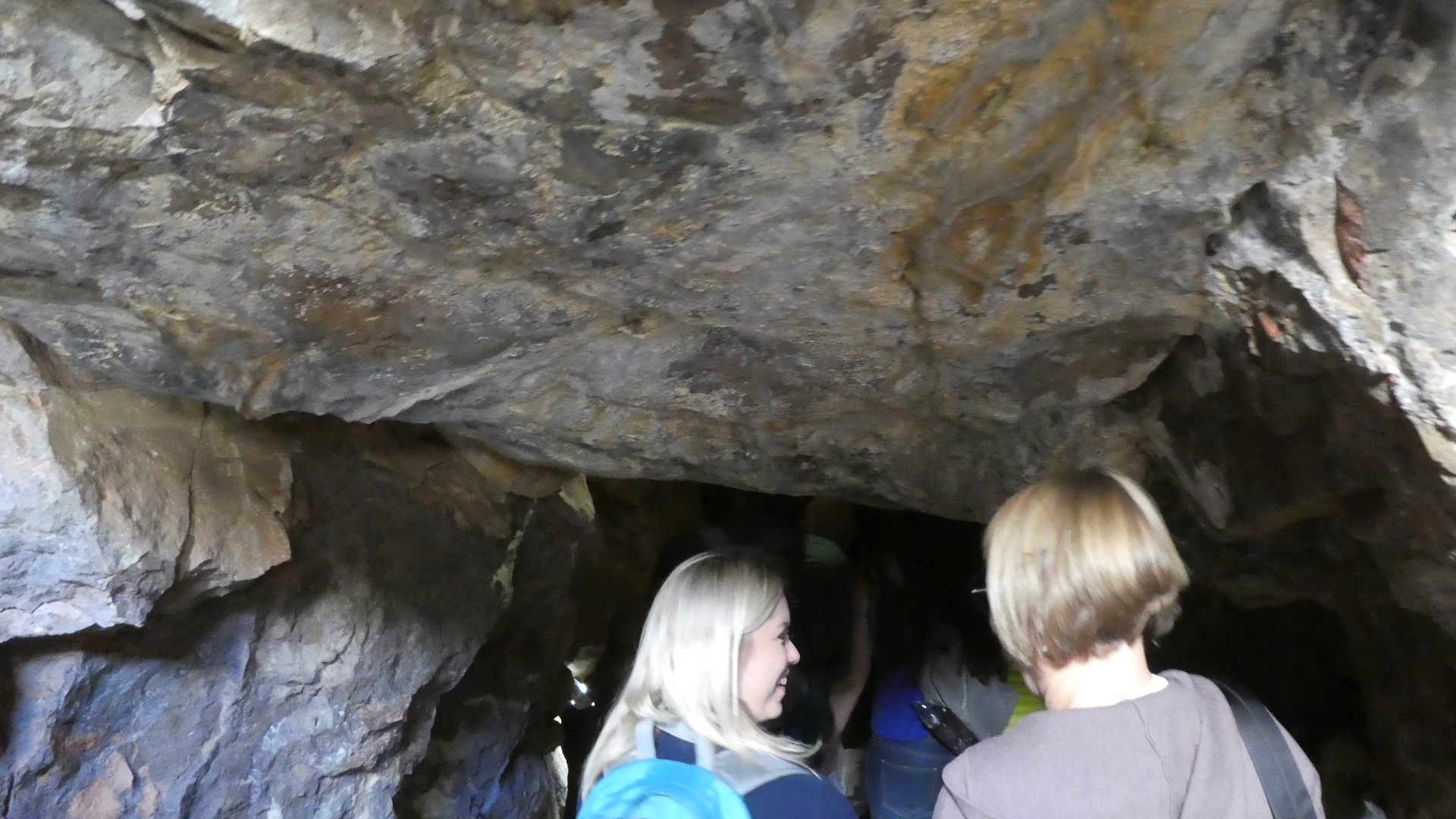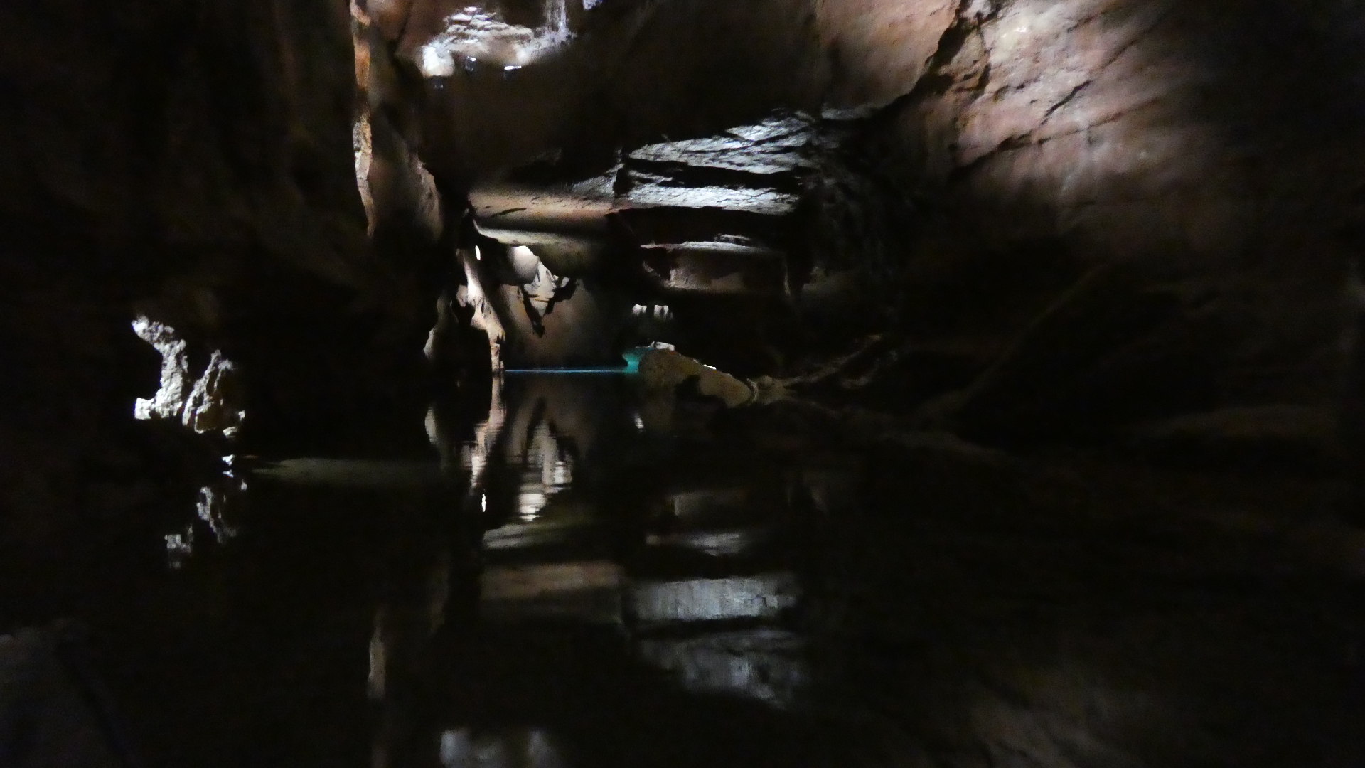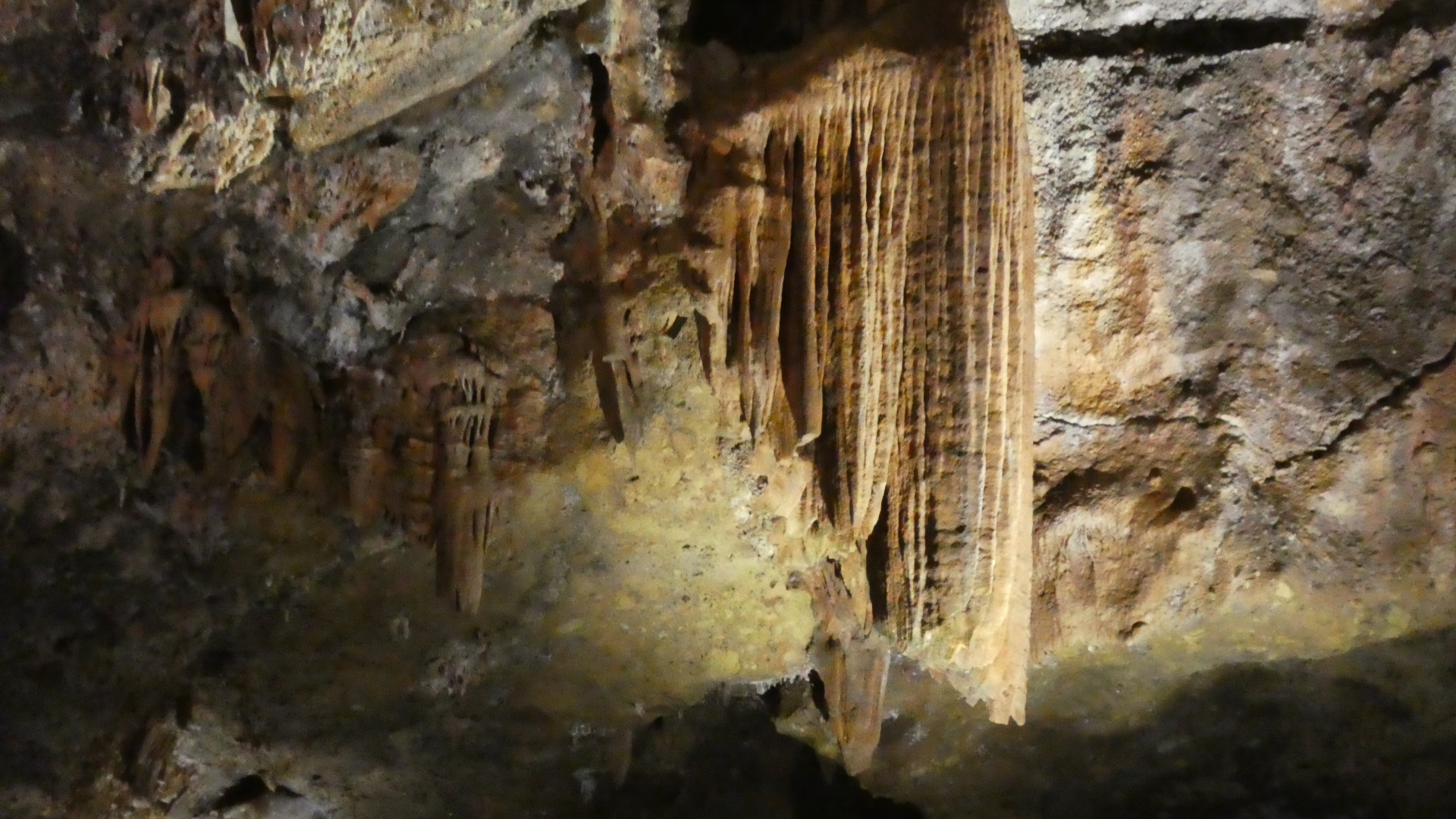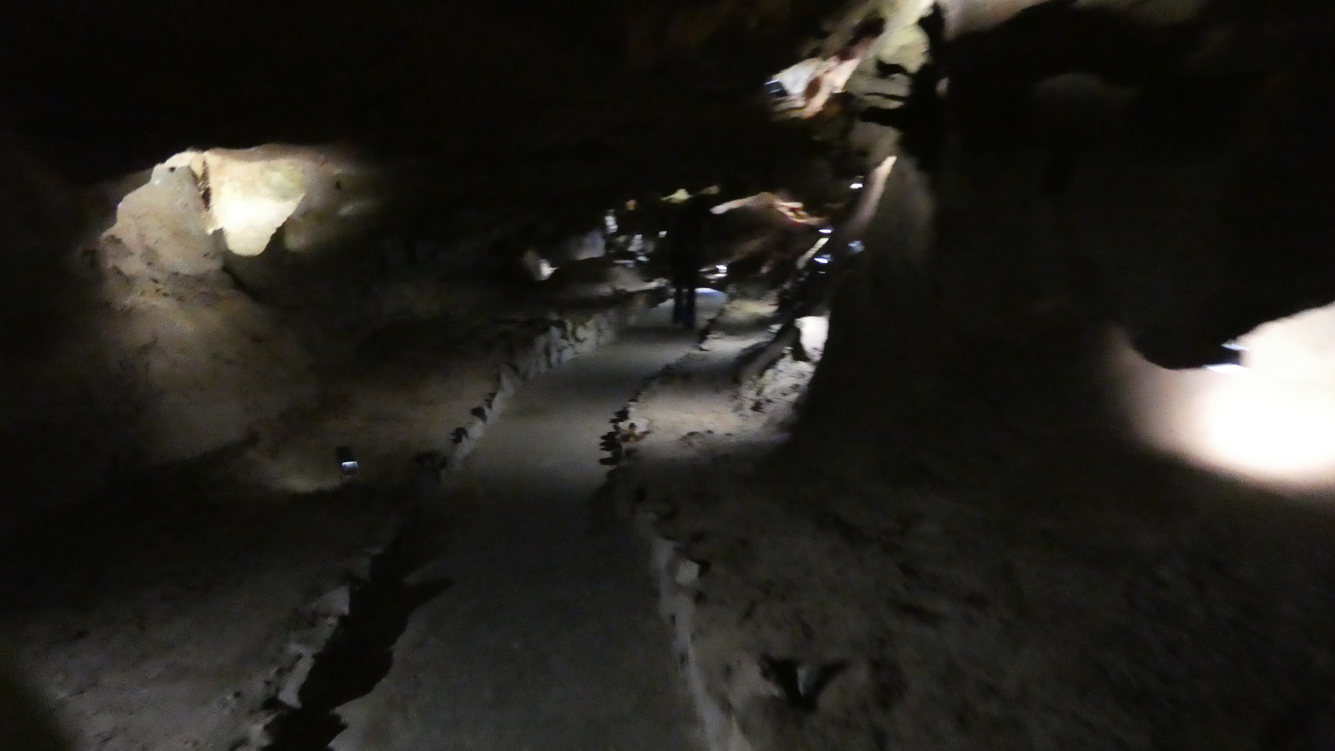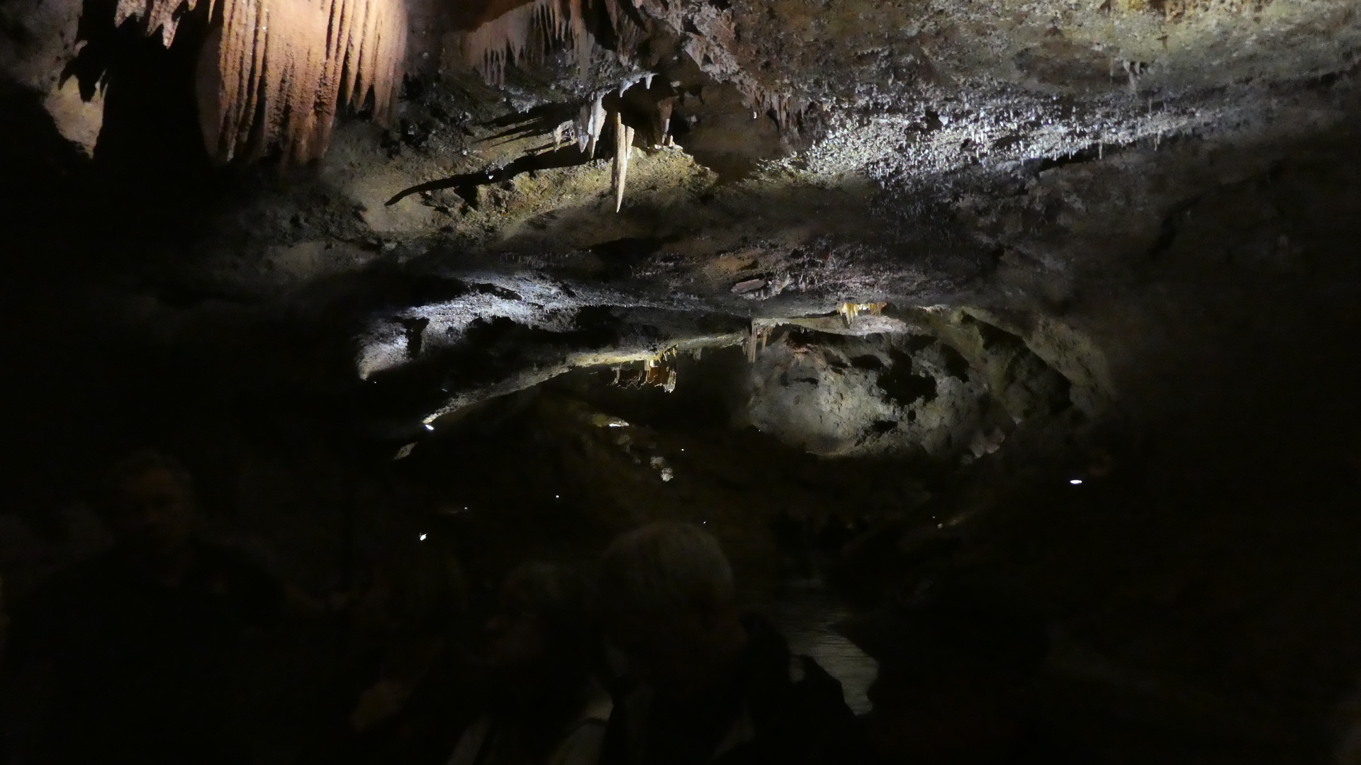 As is commonly found in caves, there are coloured mineral deposits and strange shapes. Photography is hard, not only because it's not allowed (and flash would be a bit of a giveaway) but because it's hard to give context and perspective to a shot.