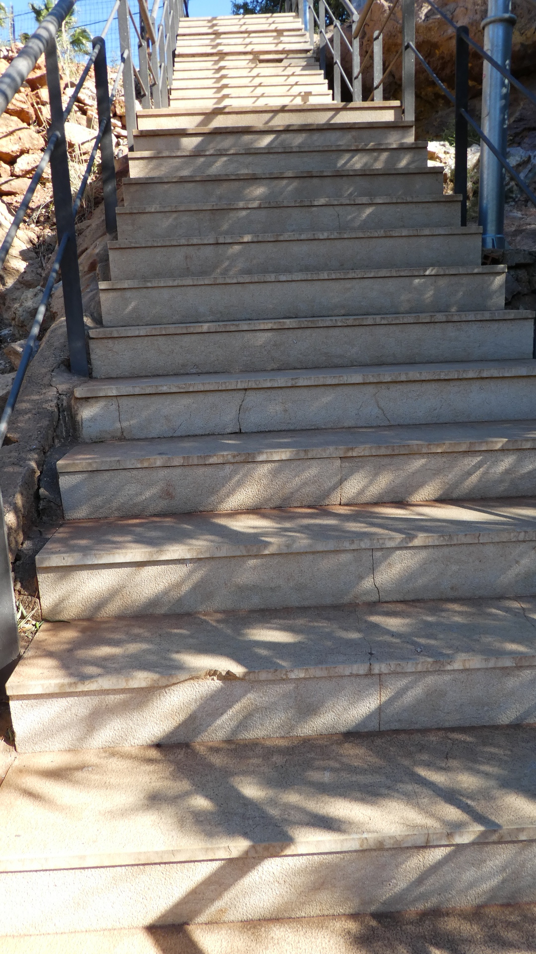 Just beside the cave entrance, some steps (that turned out to be longer and higher than I expected) led up to a church, an archeological dig, and a view out to the valley and the sea beyond.