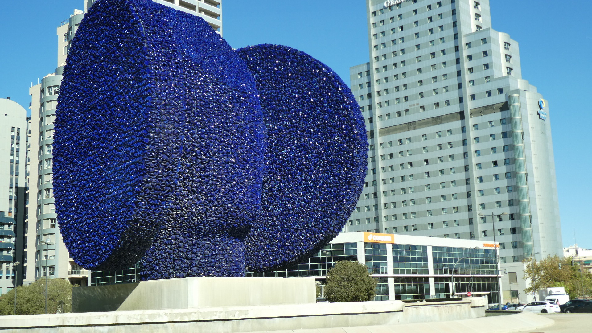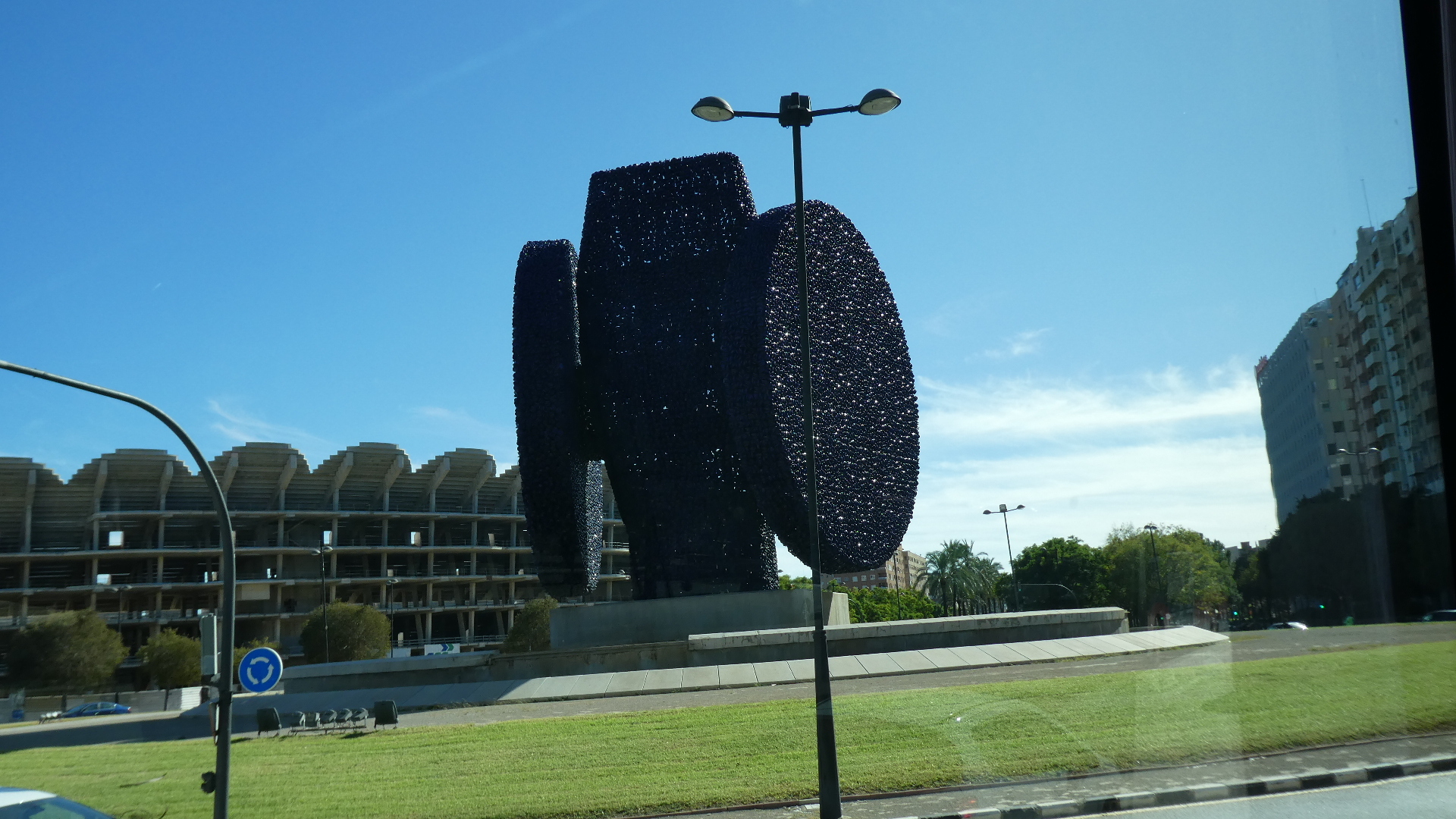 A we cruised back into Valencia, our route was slightly different and we got to see two things new to us. The first was a statue in a roundabout, called the Iberian Lady. It is apparently composed of thousands of statuettes of the Iberian lady (if I have this right). I guess you have to jump off the bus and go look.