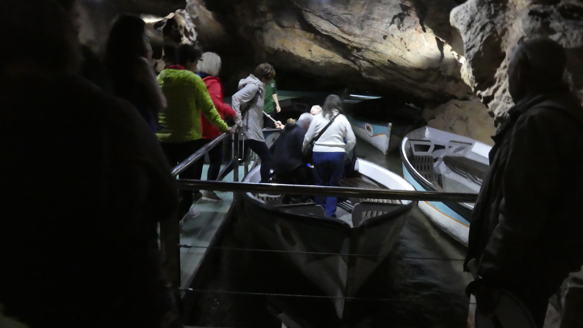 As we arrived at the Caves, we got a serious lecture from our guide about the need to not take photos, except in one designated time and place, and also about the procedure for getting into and out of the boats (taking seats on the left and then right, moving along the length of the boat). At first all this made no sense, but once we saw the conditions directly, it was clear.