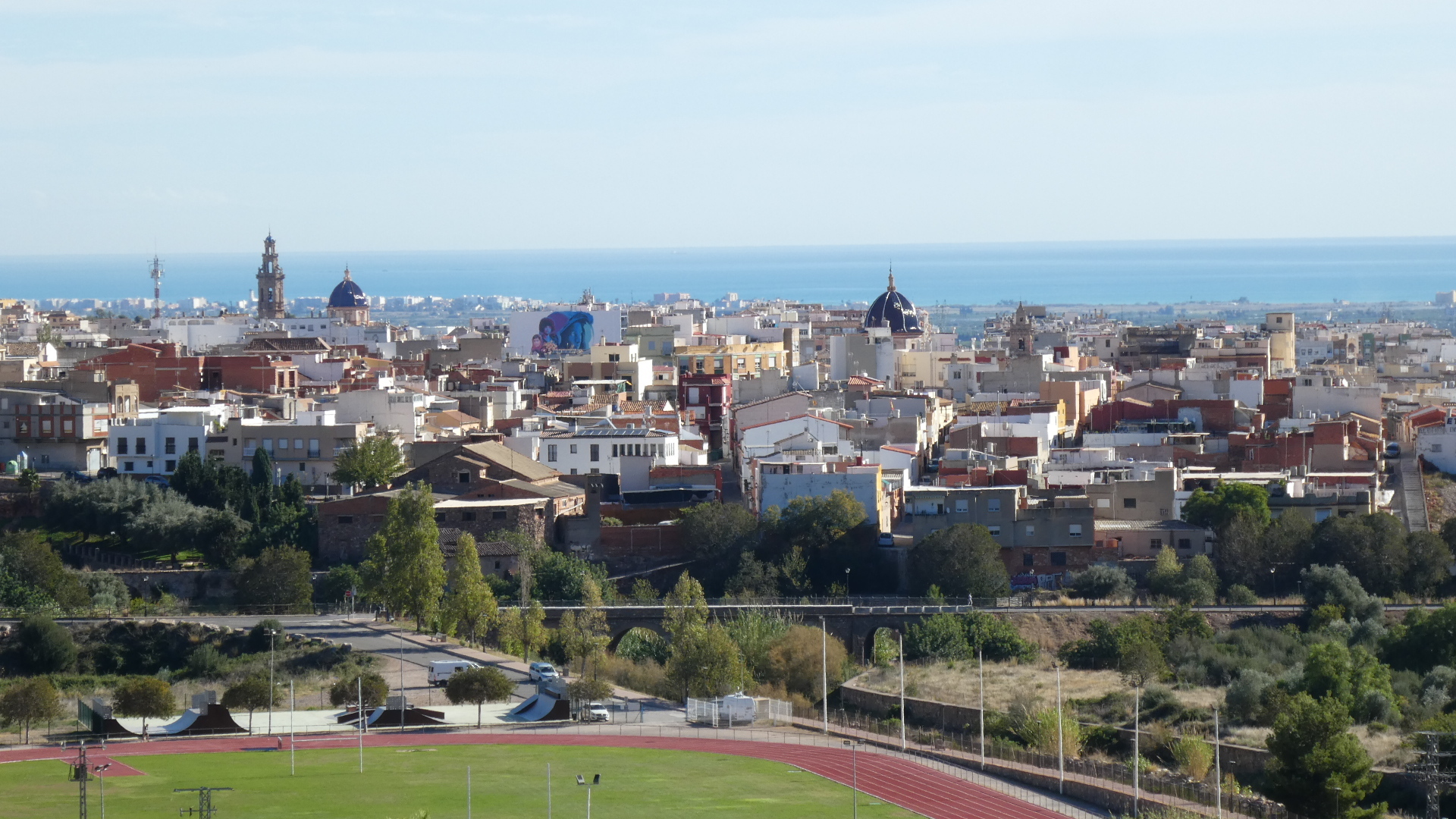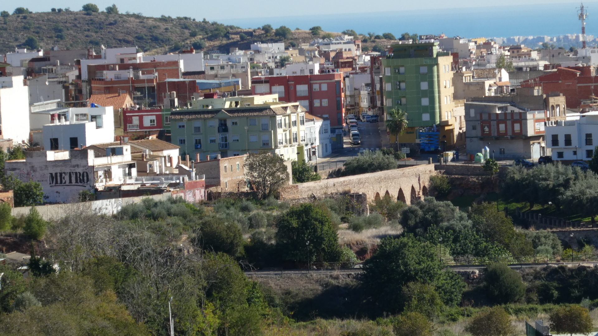 Looking toward the sea, we see Moncofa and development in its general vicinity. There are also several churches and an aqueduct down there.