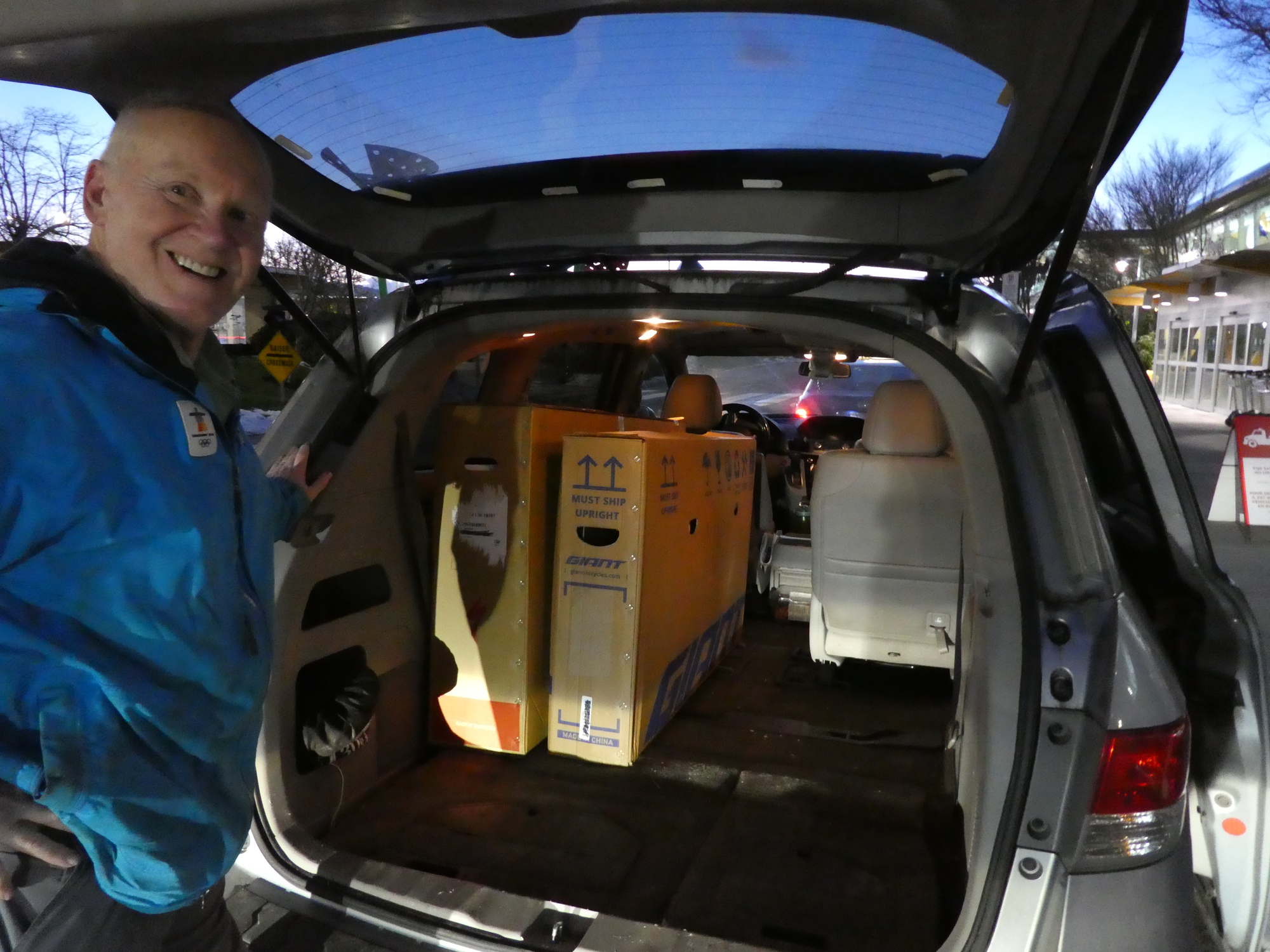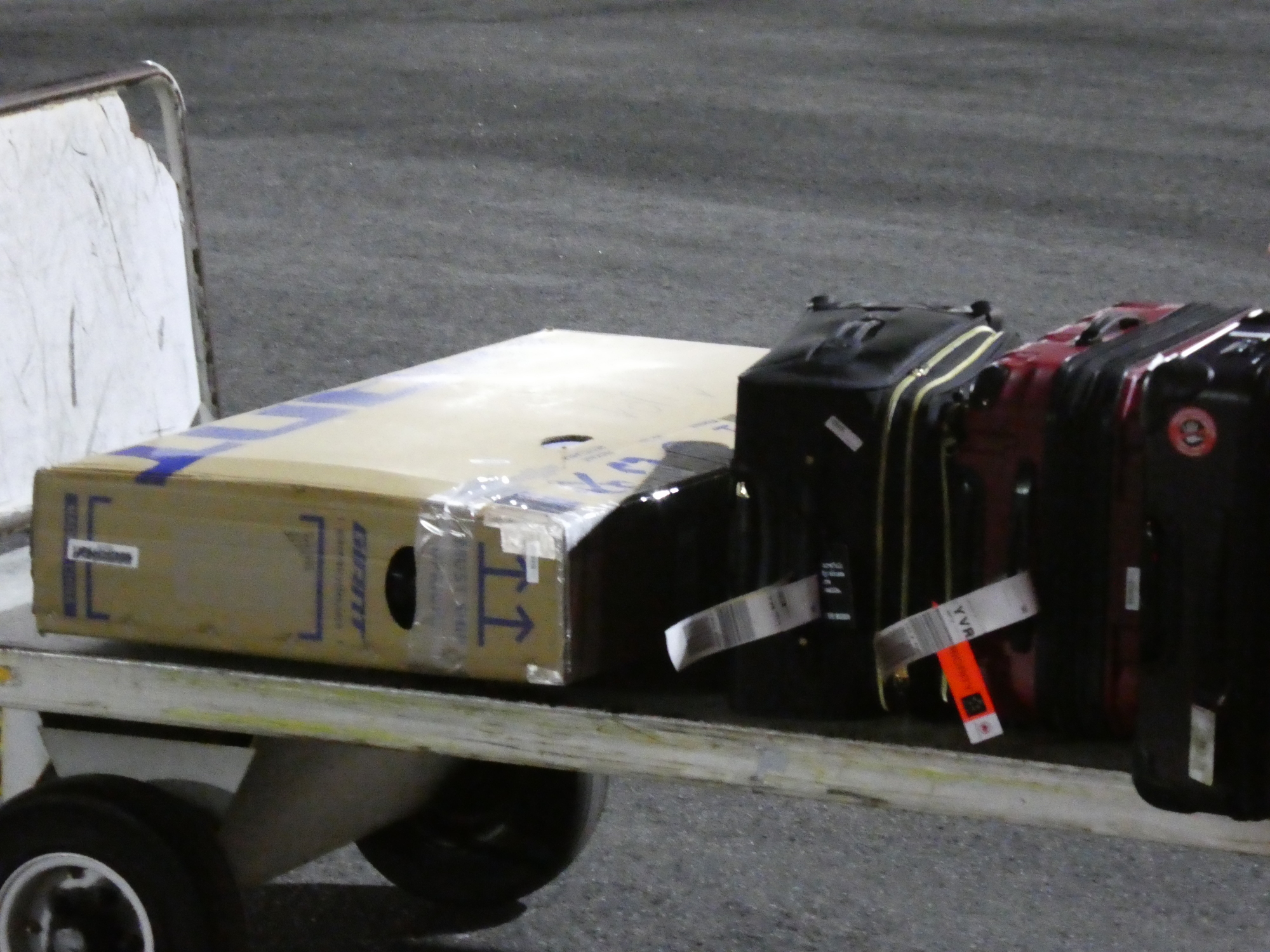 Victoria airport is as calm as an airport can be. The helpful oversized luggage people checked our boxes and helped to tape the tops. The handle cutout had ripped the moment we pulled on it, so we taped that as well. We are optimistic that the boxes will be ok, but they have a lot of travelling still to do.