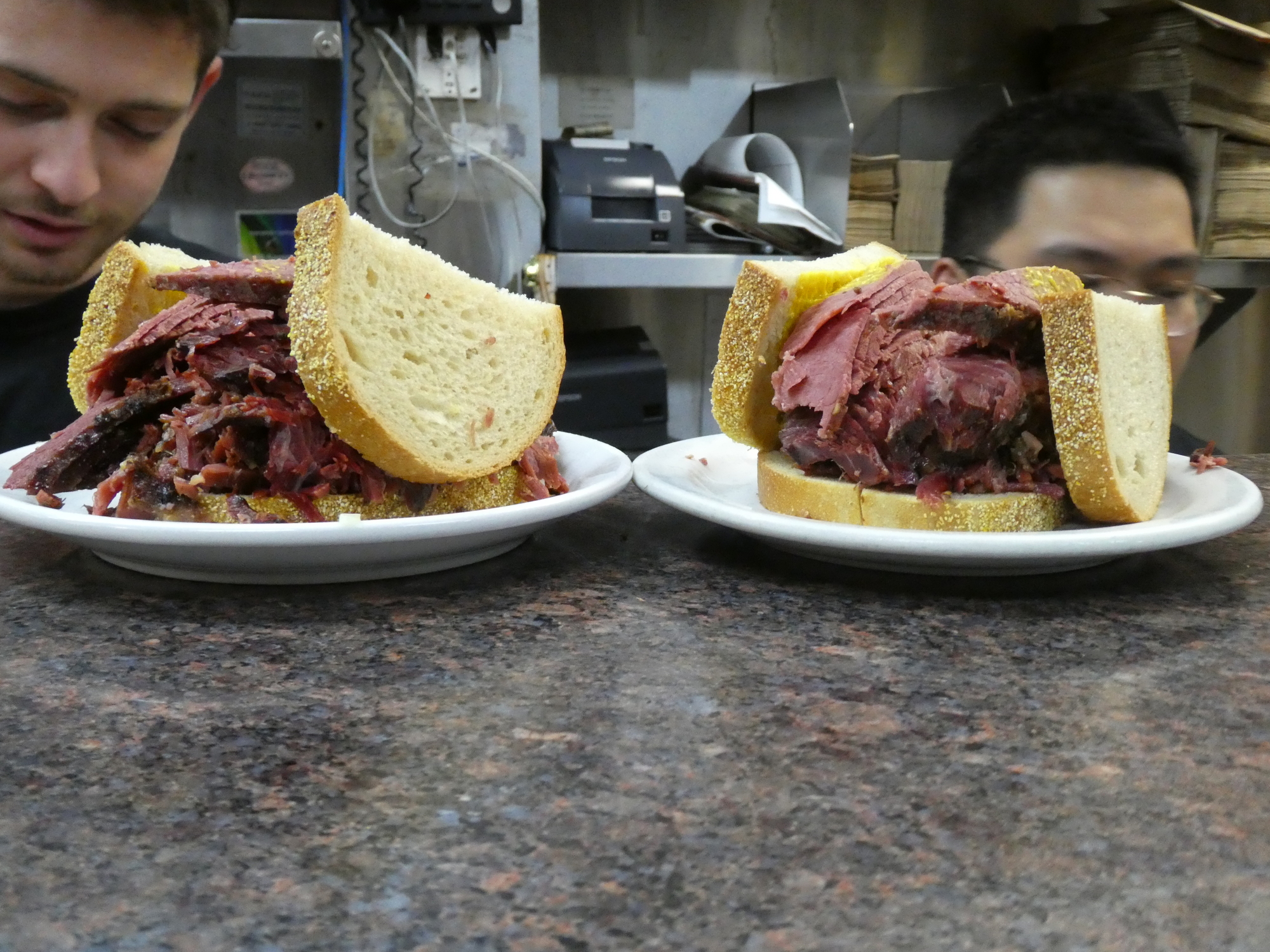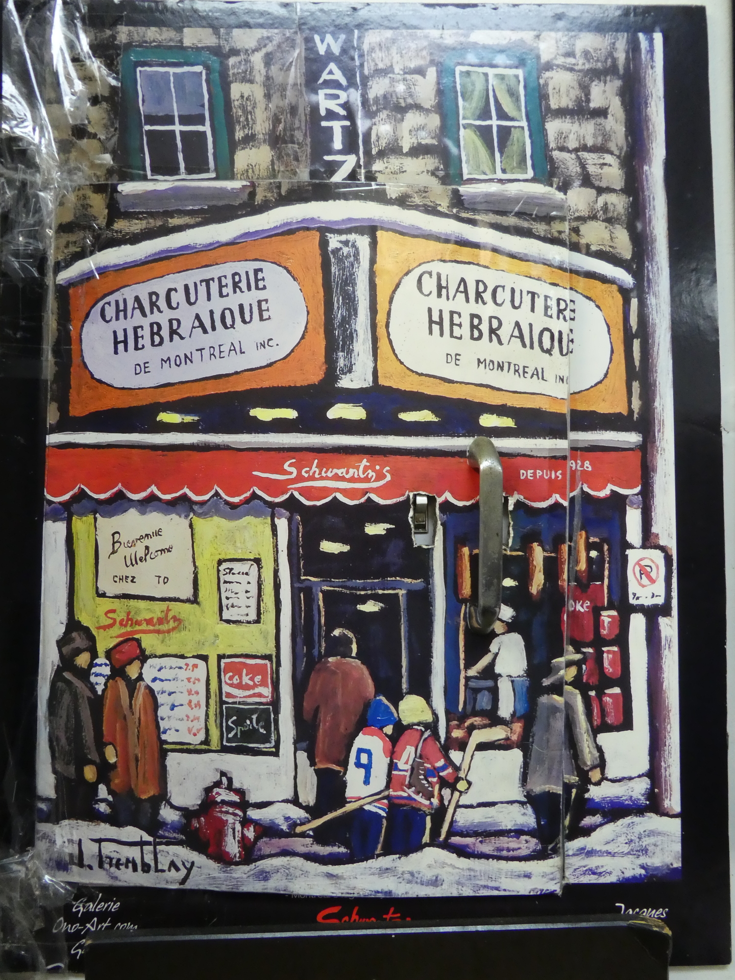 At the smoked meat place we had better luck, because it really was 100.0% unchanged. The men still stood behind the counter slicing the meat for tall sandwiches, and the one female employee was the cashier. There is no reason for this gender division of jobs, and we are critical of other "backward" cultures with gender stereotypes, but you will never see a female slicer at Schwartz's, and you will never see a male cashier. Waiters, to, are only men. We don't know why this is, but it's well documented in books about delis.
